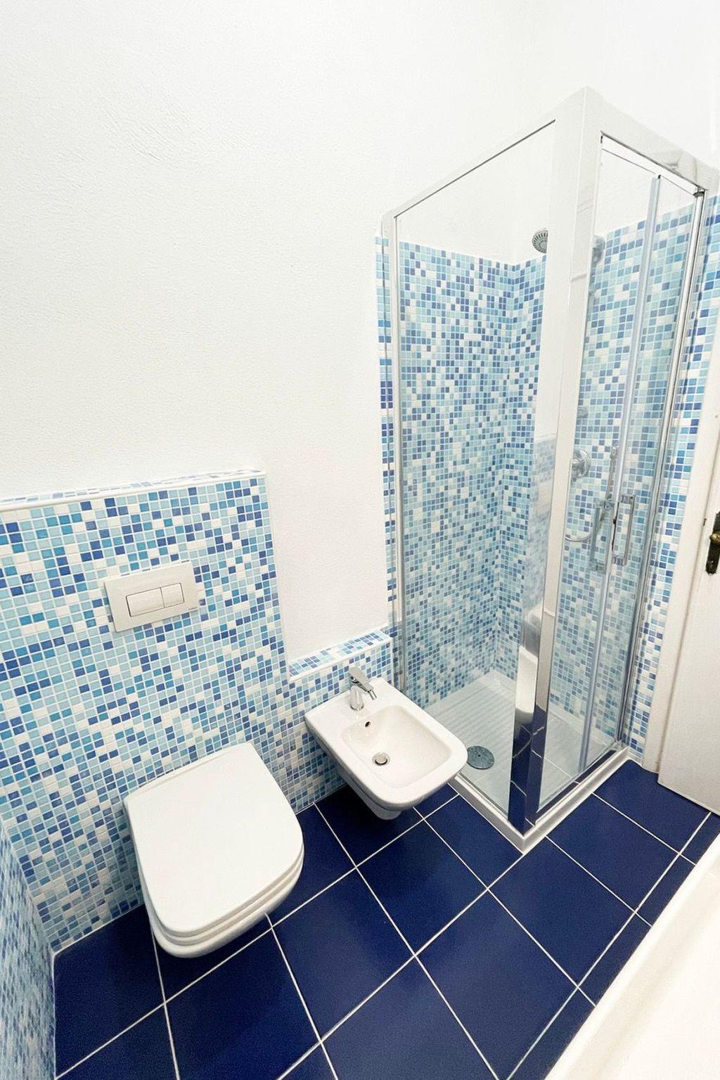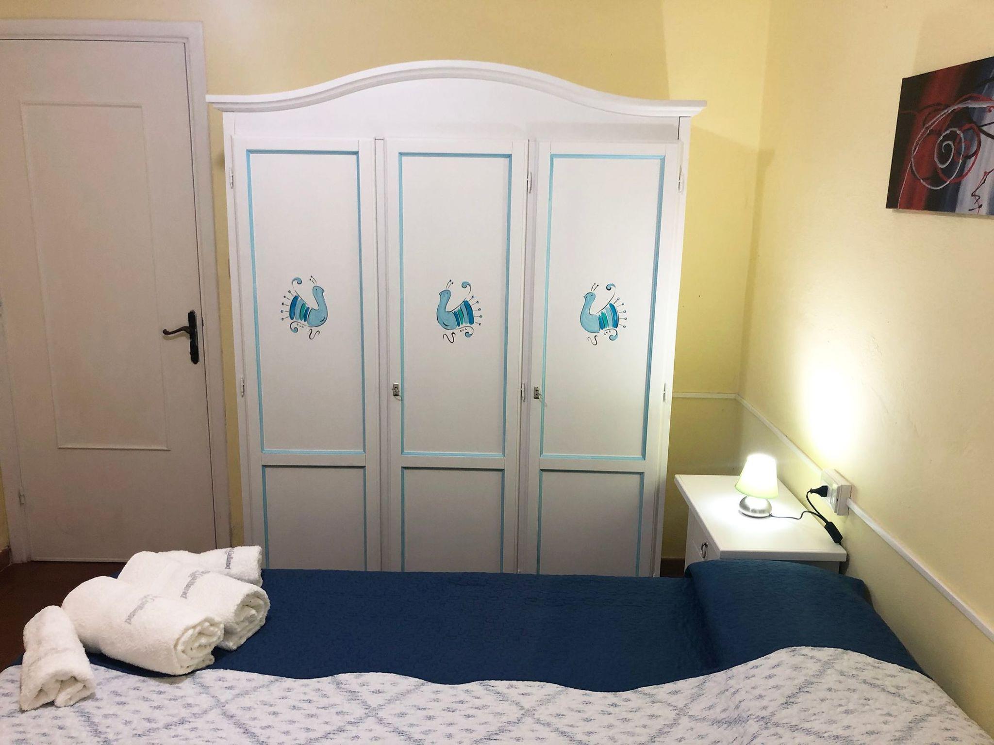 The ground floor, about 60 sqm, can accommodate 4 persons. It consists of the following rooms: a living room with flat-screen TV (32") and sofa; a bedroom with a double bed; a small bedroom with two single beds; a fully equipped kitchen with cooker, oven, microwave and grill, coffee machine and dining area; and a bathroom with shower and bidet. The flat is equipped with Wi-Fi and a safe.The first floor, about 60 sqm, can accommodate 4 persons. It consists of the following rooms: a living room with a flat-screen TV (32") and sofa; a bedroom with a double bed; a small bedroom with two single beds; a fully equipped kitchen with cooker, oven, microwave and grill, coffee machine and dining area; finally, a bathroom with shower and bidet. The flat is equipped with Wi-Fi and a safe.