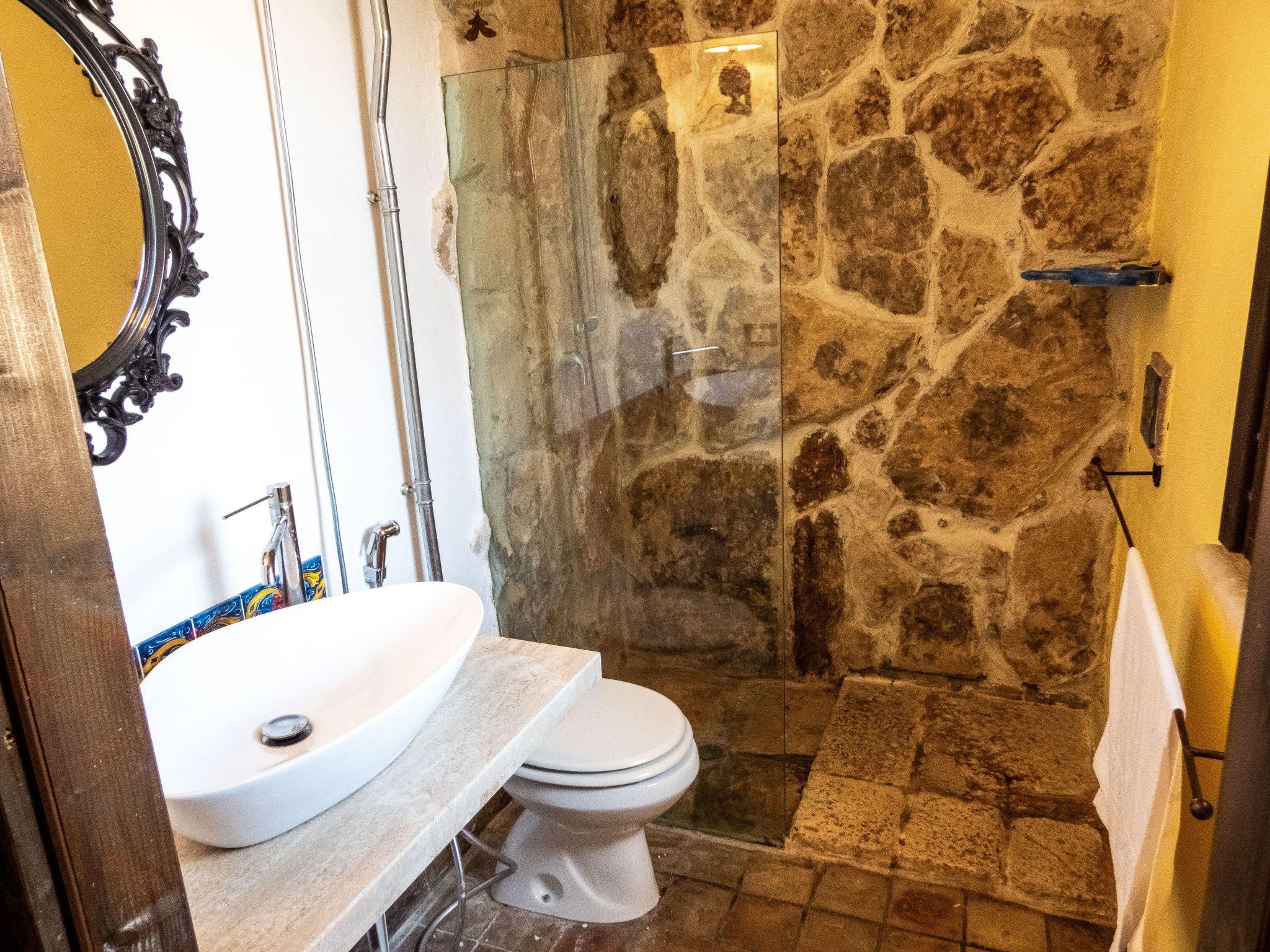 A white stone house situated on a gentle hillside with beautiful views of the Vendicari coastline. A dirt road climbs from a pristine golden sandy beach inland to a gate. Behind this hides Casa Pizzuta amidst the olive trees of a vast estate that borders in the distance on the excavations of Eloro, a Greek city dating back to the 5th century BC that was destroyed during the conquest of Sicily by the Arabs. Casa Pizzuta offers the wonderful combination of a beautiful natural environment, rural and marine at the same time. In fact, 600 metres from the house is one of the most beautiful beaches in Sicily, with its golden sand surrounded by fragrant hedges of rosemary, thyme, myrtle, boxwood and lentiscus, typical of the Mediterranean maquis, and interspersed with white sandstone cliffs that plunge into an incredible turquoise sea. To the south of this beach is the Vendicari coastal reserve that extends for 10 km to San Lorenzo, near the fishing village of Marzamemi. Just north of the beach is the small seaside resort of Lido di Noto, which has a promenade with bars, ice cream parlours and a beautiful beach. The baroque town of Noto, a UNESCO heritage site, is 6 km away. Casa Pizzuta has a large garden with many almond trees. The house has a large covered terrace and consists of a double bedroom, two nice bathrooms with bidet, shower and toilet and a living room with a basic kitchen, a dining table and a double sofa bed. From the living room there is access to a covered terrace. Further into the garden is another terrace with deck chairs and a beautiful view of the coast. A white stone house situated on a hill with beautiful views of the coast of Vendicari. A dirt road climbs, starting with a pristine golden sand beach, inland and leads up to a gate. Behind this lurks Casa Pizzuta among the olive trees of a large estate that borders in the distance with the excavations of Eloro, a Greek city dating from the fifth century BC which it was destroyed during the conquest of Sicily by the Arabs. Casa Pizzuta offers the wonderful combination of beautiful natural environment, rural and marine together. At 600 metres from the house in fact, it is located one of the most beautiful beaches of Sicily, with its golden sand surrounded by fragrant hedges of rosemary, thyme, myrtle, boxwood and mastic trees, typical of the Mediterranean, and interspersed with white sandstone cliffs They immerse themselves in an incredible turquoise sea. To the south of this beach there is the coastal reserve of Vendicari that extends for 10 km until San Lorenzo, near the village of Marzamemi. Just north of the beach there is the small seaside resort of Lido di Noto, this has a promenade with cafes, ice cream shops and a beautiful beach. At 6 km is the baroque town of Noto, heritage of 'UNESCO. Casa Pizzuta has a large garden with lots of almond trees. The house has a large covered terrace and consists of a double bedroom, two nice bathrooms with bidet, shower and toilet and a living room with a basic kitchen, a dining table and a sofa bed. The living room leads to a covered terrace. Further out in the garden there is another terrace with deck chairs and a beautiful view of the coast.