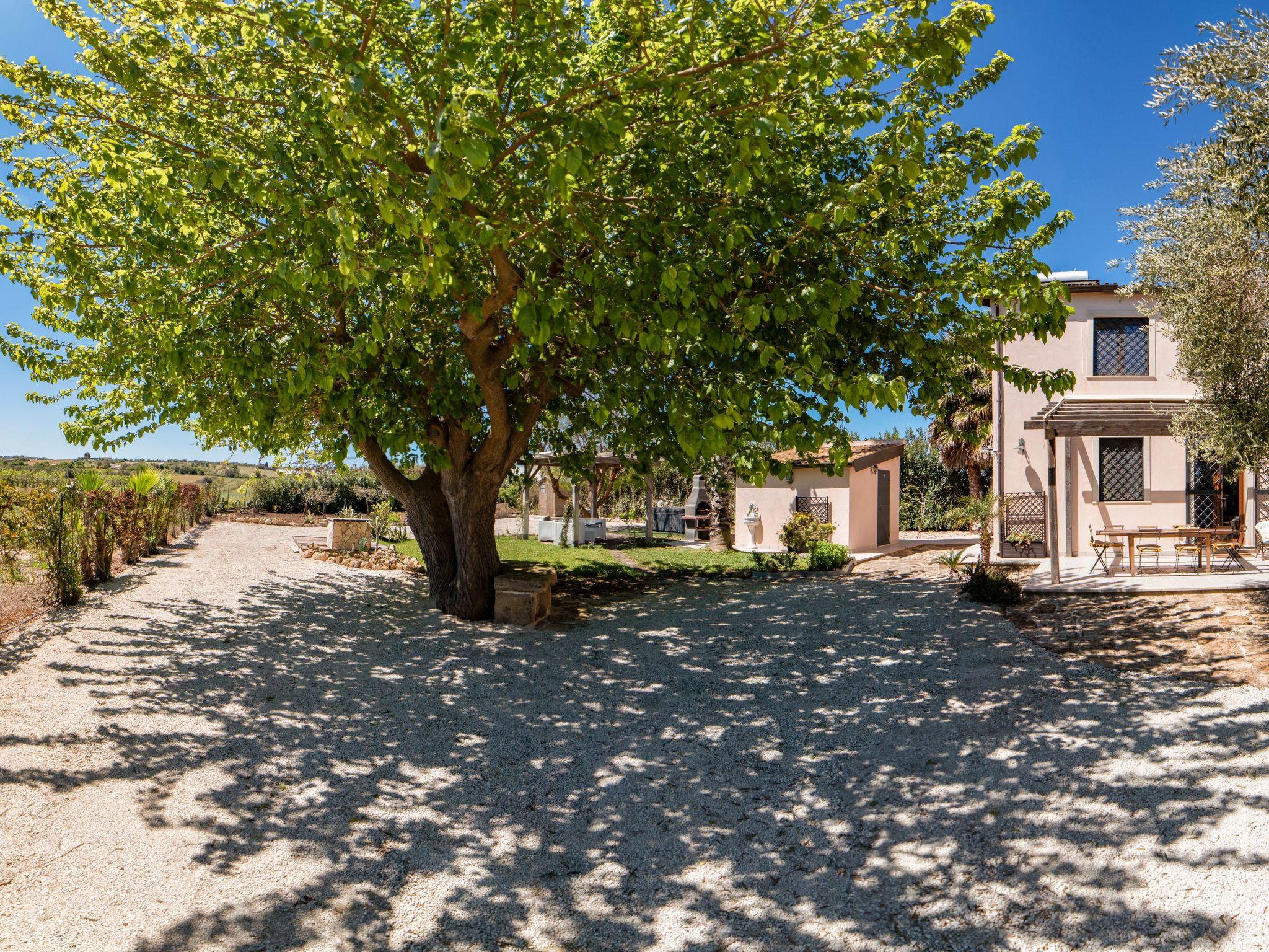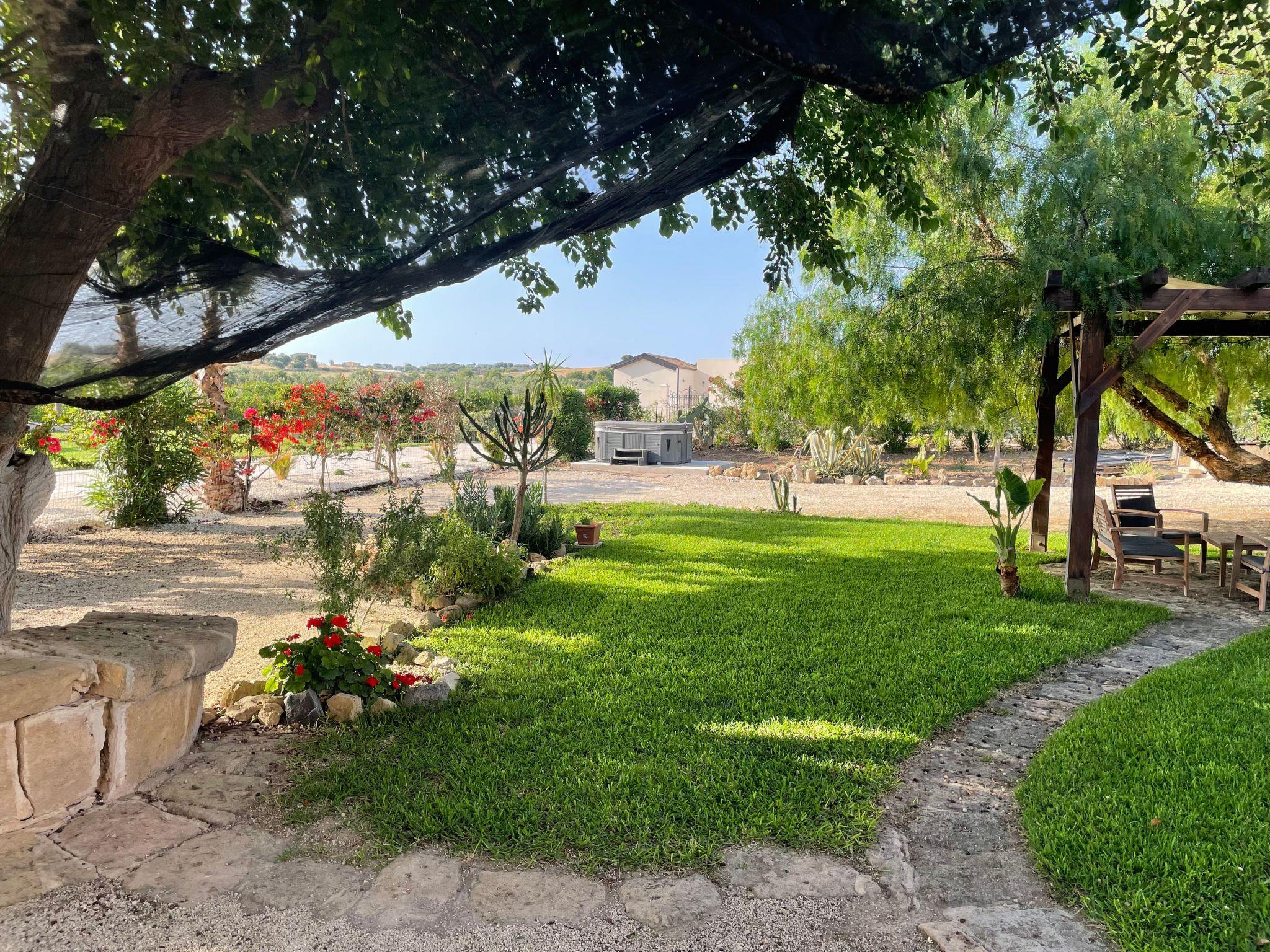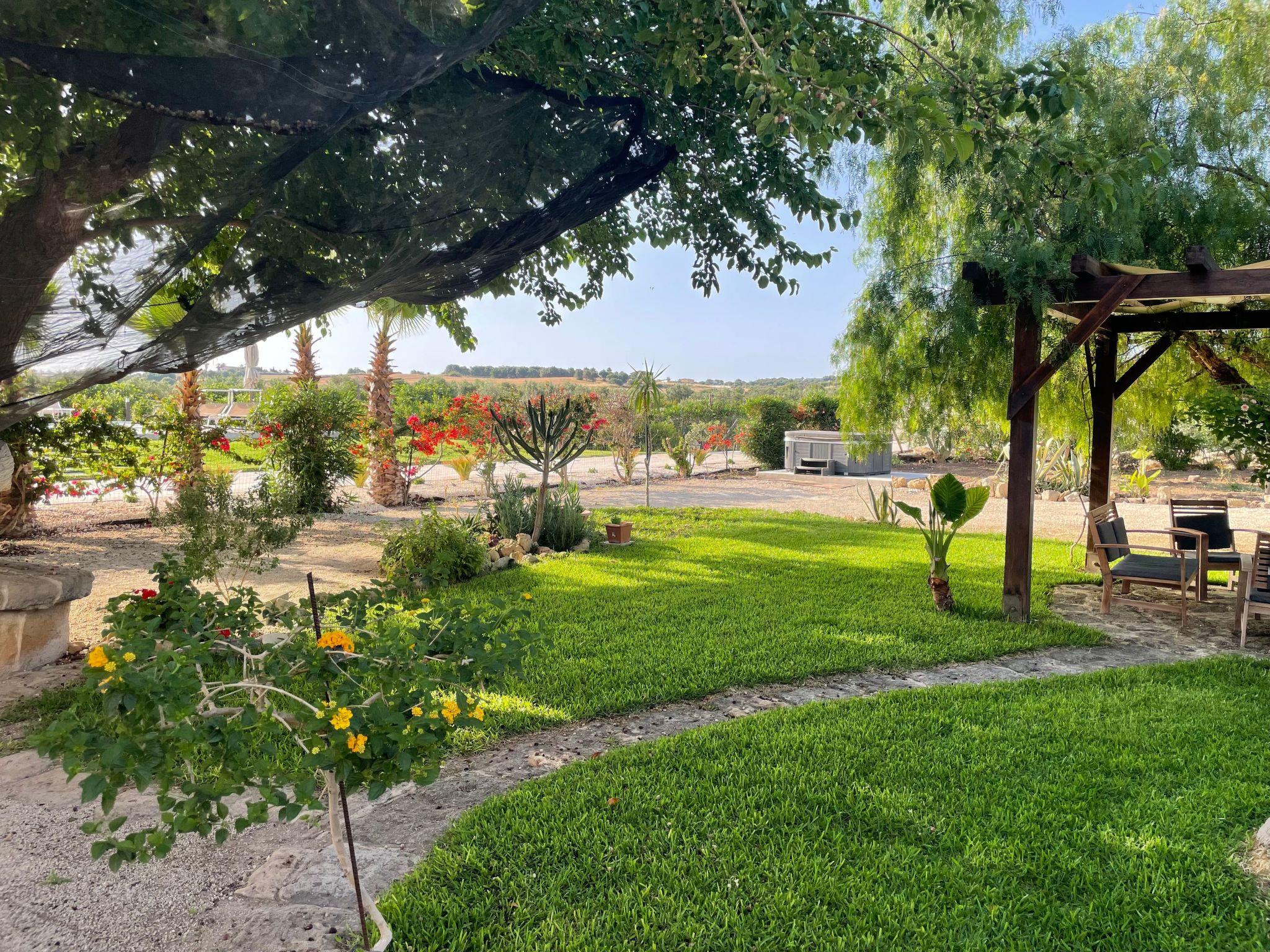 Il Gelso e l'Ulivo is located in the countryside in the municipality of Noto, just 2 km from the beautiful beaches of San Lorenzo and the seaside resort of Marzamemi. It is the perfect solution for groups of friends who want to have a structure entirely at their disposal, but also for families and couples who want to stay in the quiet of the countryside, surrounded by every comfort, but just minutes from the sea and renowned tourist destinations; you can reach Syracuse and the baroque jewels of the Val di Noto in less than an hour.It is a structure composed of two building parts, the country house with two apartments, one on the first floor and one on the upper floor, and the baglio with three apartments. Between the two units there is a large swimming pool with an equipped sun terrace. In the garden of the country house there is a jacuzzi for five people, available to guests of the country house.A large uncovered parking lot at the entrance of the property and a covered parking lot at the baglio can accommodate up to seven cars.The houses are furnished with furniture mainly from antiques or made by local craftsmen. They are furnished with ceramics from Santo Stefano di Camastra and accessories made by Sicilian craftsmen especially for our houses. They are equipped with all appliances and comforts to ensure a pleasant stay.The facilities are powered exclusively by a photovoltaic system and there is a column for charging electric vehicles.In the garden of the Baglio, fruit trees and a small vegetable garden are available to guests who want to enjoy fresh 0-meter products.The structure is surrounded by two acres of newly planted olive trees with typical local varieties (Biancolilla, Moresca and Tonda Iblea).