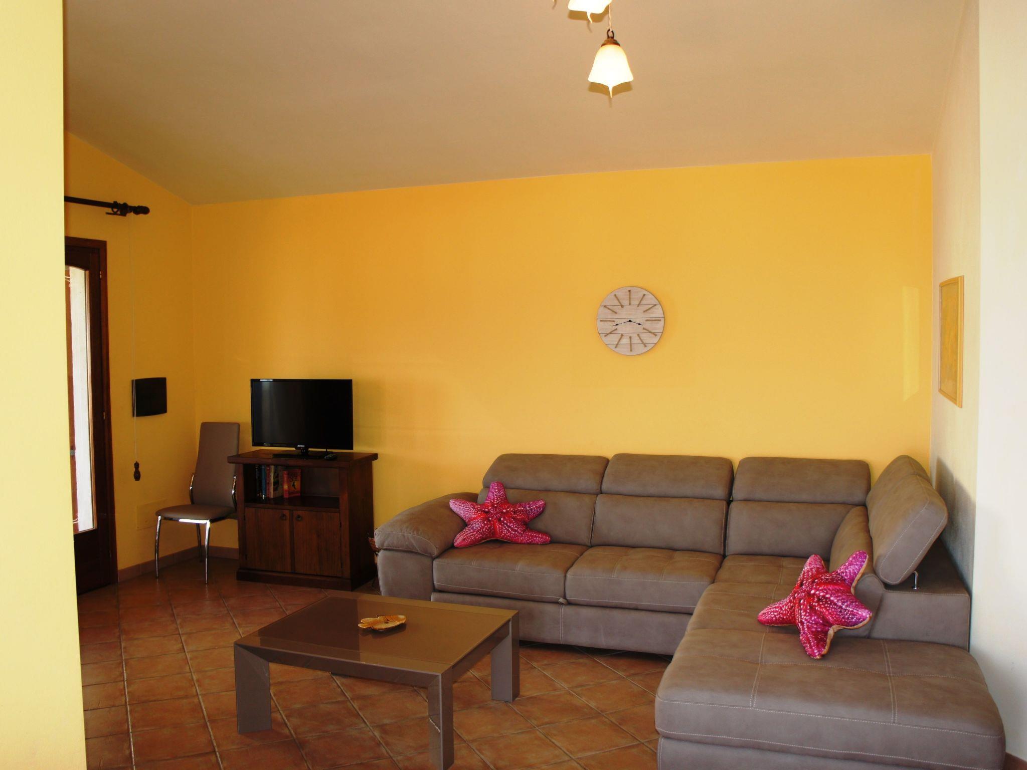 The interior of the flat is distinguished by its large living area, characterised by a bright and airy ambience, equipped with partial air conditioning that guarantees coolness on hot days. The area is furnished with your comfort in mind, with a reading corner, a television and a cosy kitchenette with a peninsula, perfect for preparing light meals. The flat has two cosy bedrooms, one double and one with bunk beds, both with sea views. An elegant shower completes the interior, ensuring a pleasant and carefree stay.