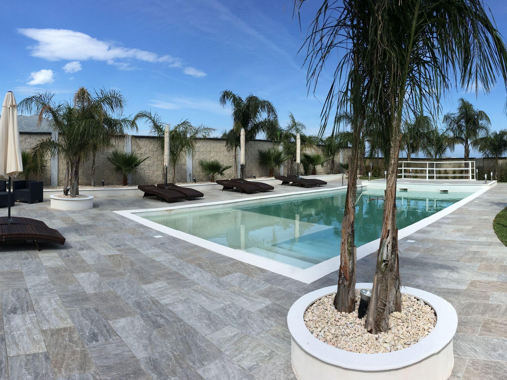 The outdoor area has a large relaxing sofa, a gazebo with table and chairs, and a barbecue. In the centre of the park is the saltwater swimming pool (measuring 6 x 12 m) with sun loungers, tables and parasols and two comfortable outdoor showers. The pool is closed from 01 December to 01 March each year for maintenance. Inside the property there is also a large private car park. The entire property is fenced off.