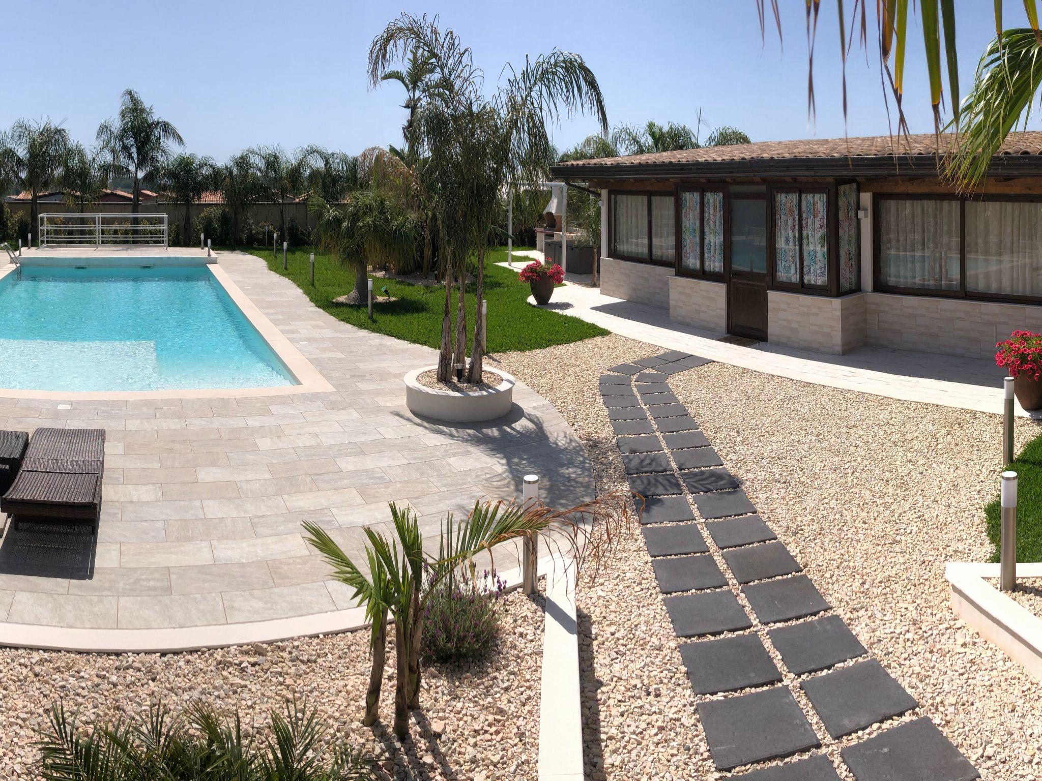 The nearest beach is only 900 metres away and is equipped with beach umbrellas and sun beds, cafés, restaurants, pizzerias and hotels. There are various shops, two supermarkets and a shopping centre about 1.5 km away, as well as petrol stations, bars and tobacconists. The position in which Villa Sicilia is located is optimal for being able to reach all the well-known tourist resorts in the area while remaining in complete tranquillity. It is only 2 km from Giardini Naxos, 6 km from Taormina and Isola Bella, 15 minutes by car from the Alcantara Gorges and about 30 minutes from Etna Volcano. The next air terminal is Catania-Fontanarossa (about 40 km).