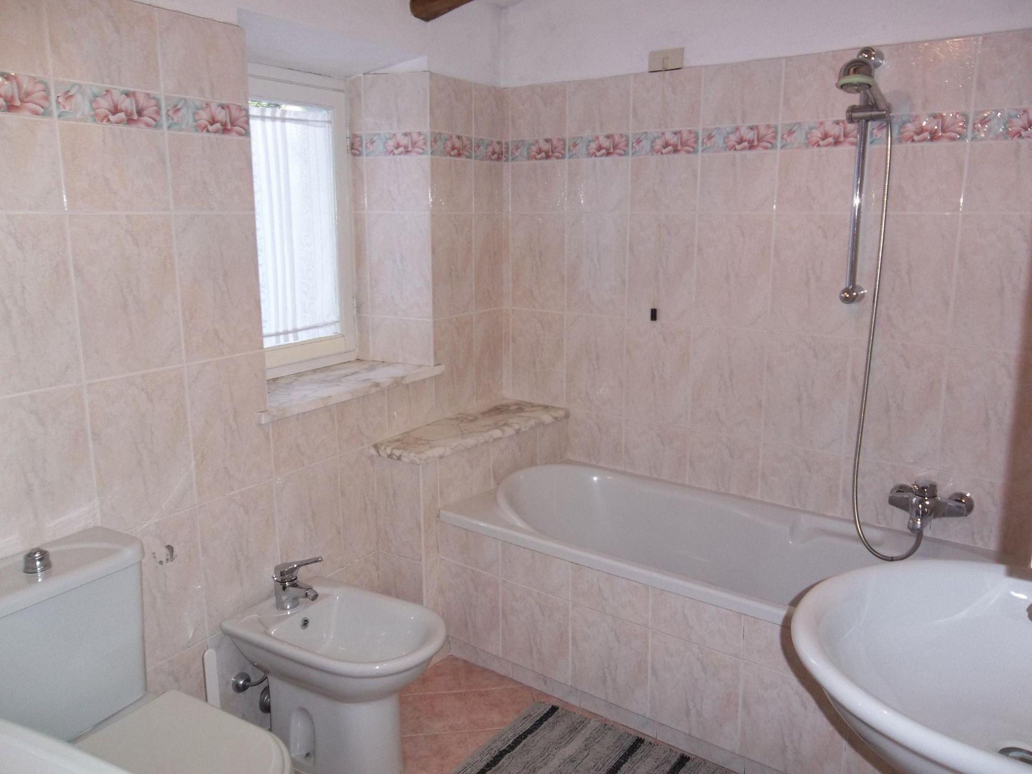 The house was built in the 18th century and last restored in 2005. The entrance to the house is on the ground floor, from which a staircase leads to the first floor. The flat is ideal for a family holiday or with a group of friends, as it has four bedrooms, each with a double bed (160x190cm). They are also equipped with a wardrobe and bedside tables. The kitchen is spacious and has a rustic atmosphere. In the centre is a solid wood dining table and chairs. The kitchenette is equipped with a gas cooker, oven, toaster and refrigerator with freezer. The large fireplace can be used on request and firewood is provided at a small extra cost. The large living room is bright. In front of the fireplace (which cannot be used) is a seating area with upholstered furniture, where you can comfortably sip coffee. Next to it is a dining table with chairs and another sofa against a wall. One of the sofas can be converted into a double bed. The flat has two bathrooms: one with a shower and one with a bathtub with shower attachment. The flat is equipped with a TV set with DVBT reception, computer, free internet access, washing machine, heating and fans. Thanks to the thick exterior stone walls and the hillside location, it does not require air conditioning. There is a cot in one of the bedrooms. On request, a folding bed for one person can be set up in the kitchen.