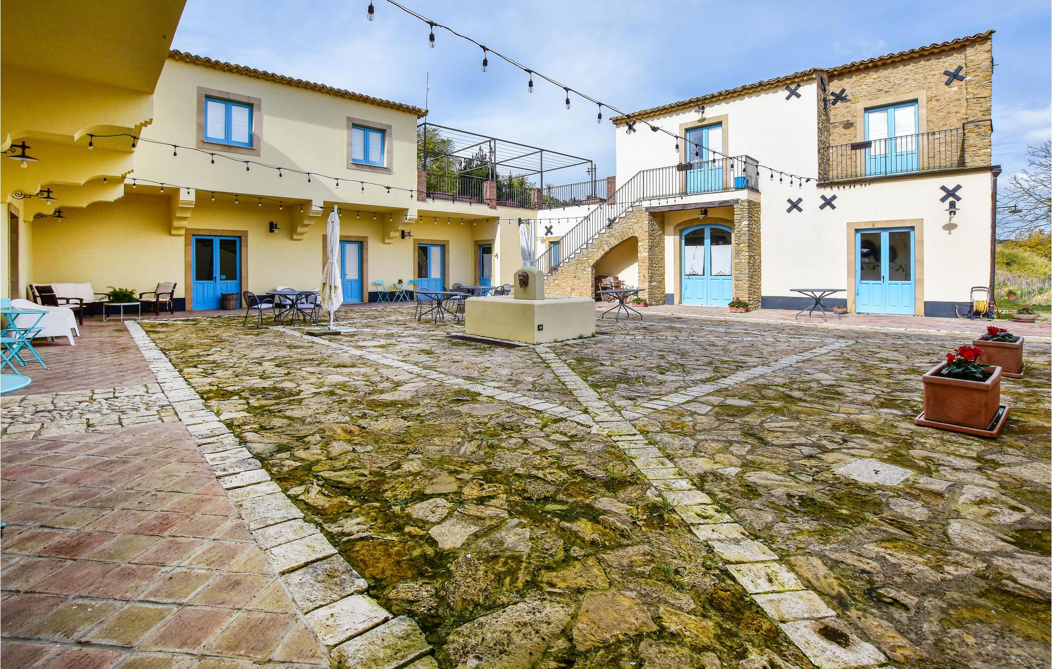 Dette store feriehus med mange soveværelser byder velkommen i hjertet af Sicilien. Huset er ideelt til en afslappende og kulturel ferie i selskab med mange venner eller hele familien i bondegårdens pragtfulde omgivelser. Alle værelser er udstyret med eget badeværelse. Et stort industrikøkken er tilgængeligt til madlavning, og I kan samles for at spise og lege i spisestuen. Huset har en dejlig gårdhave, hvor jeres børn kan lege, og I kan slappe af i solen. Ejendommen har mere endnu at byde på. En stor legeplads og fodboldbane er til rådighed og vil holde jeres aktive børn beskæftiget i timevis. Derudover er poolen et skønt sted på varme dage og indbyder til at plaske rundt, svømme og køle ned.