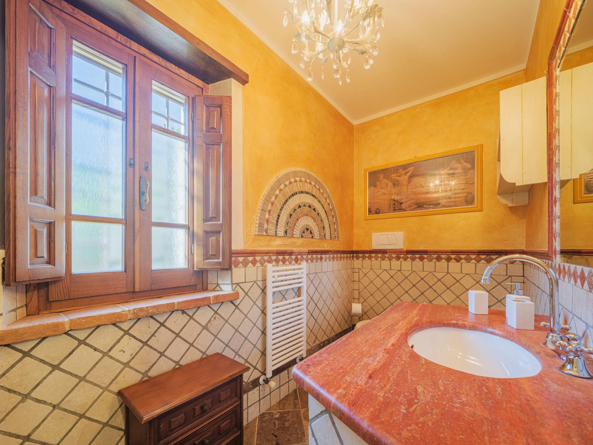 5-room house 160 m2 on 2 levels. Beautiful and cosy furnishings: living/dining room with open-hearth fireplace (only for decoration). Exit to the terrace. 1 double bedroom with shower/bidet/WC. Kitchenette (oven, dishwasher, 5 gas rings, toaster, kettle, microwave, freezer, electric coffee machine) with flat screen. Upper floor: 1 double bedroom with air conditioning. 1 double bedroom. 1 room with 2 beds. Bath/bidet/WC, shower/bidet/WC. Gas heating (extra). Terrace furniture, barbecue, deck chairs (4). Facilities: washing machine, iron, mosquito net, children's high chair, baby cot for up to 2 year olds, hair dryer. Internet (WiFi). Parking (2 cars). Please note: non-smoking house. Smoke alarm, fire extinguisher. IT046005C2DIOOS3E9