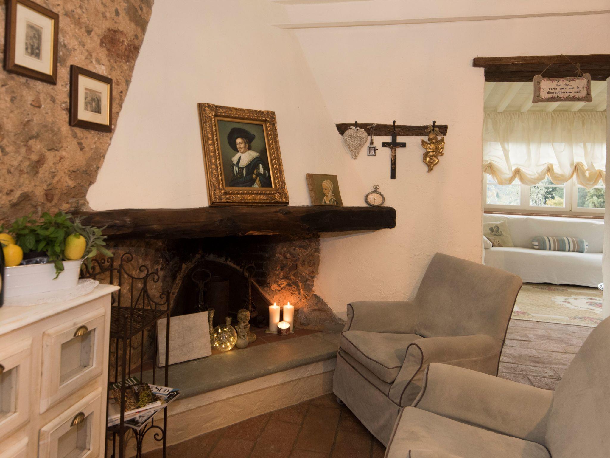 In the old Tuscan stone corner, framed by two armchairs, you will find a cupboard and a large fireplace to enjoy moments of relaxation or to read a good book.