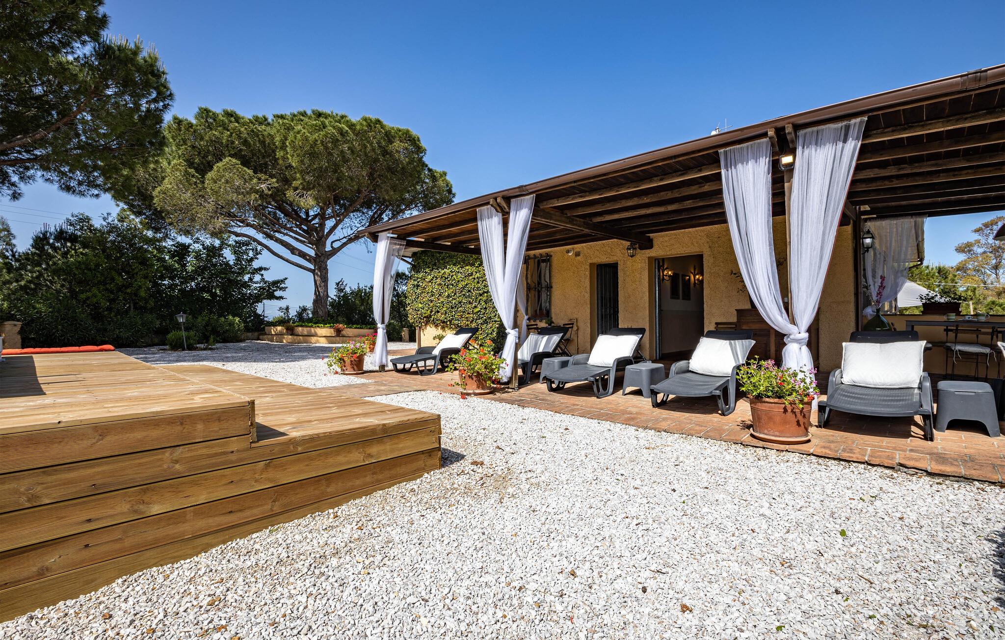 I landskabet omkring Campiglia Marittima, kun 10 km fra strandene i ved Toscanas kyst, ligger dette dejlige feriehus med en eksklusiv pool, hvor familien, der vil slappe af i ugenerte omgivelser, kan holde en uforglemmelig ferie. Huset er i ét plan og er har et komfortabelt og smagfuldt indrettet indre. Slap også af på den rummelige veranda med et stort bord til udendørs spisning og solstole til at nyde afslappende øjeblikke ved poolen. Dine kæledyr er velkomne: De kan røre sig på det udendørs område foran huset eller i olivenlunden (begge uden hegn). Fremtagende beliggenhed nær mange badebyer: Follonica 16 km, San Vincenzo 23 km, Castiglione della Pescaia 39 km, og den smukke strand ved Cala Violina 27 km. Historisk interessante udflugtsmål: Suvereto 11 km, Campiglia Marittima 9 km, og vidunderlige Populonia 212 km, med den etruskiske netkropol med udsigt over bugten Baratti, Massa Marittima 31 km. Besøg kurbadet Venturina 9 km.