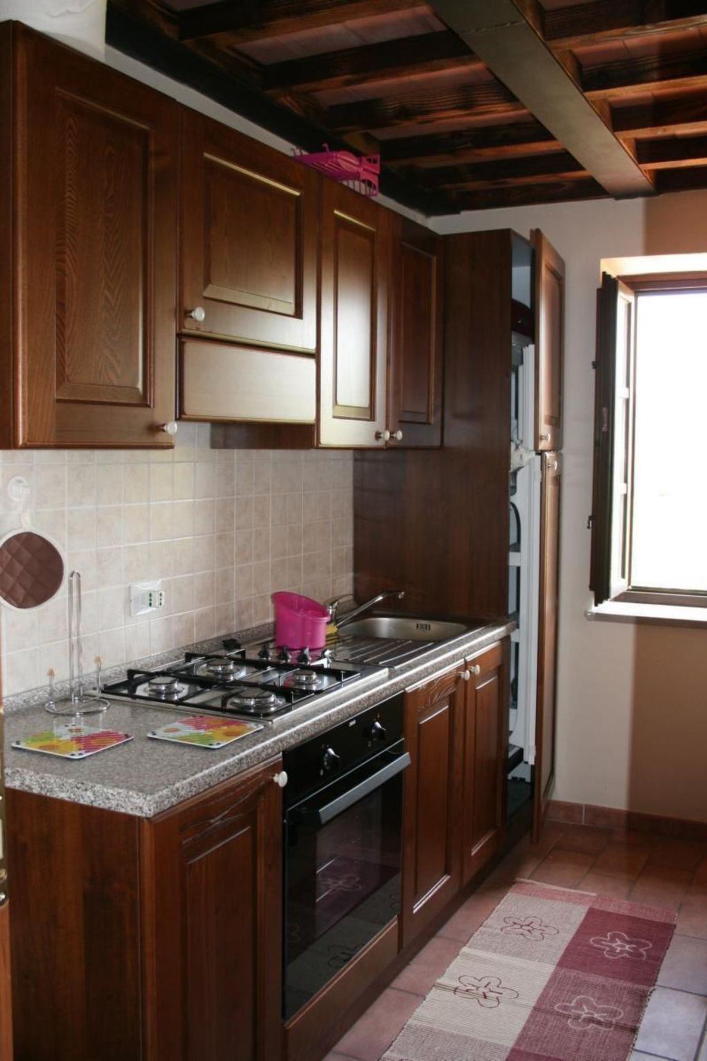 It is on the ground floor with a beautiful and large garden with panoramic view equipped with table, chairs, parasol and barbecue. The apartment has a living room with dining area, TV set and double sofa bed; separated kitchen (equipped with 4-zone hob, oven, fridge and freezer, as well as all the necessary kitchenware); one bathroom with shower; two double bedrooms. From the living room, through the stairs you can access the open space under roof with another double bed and another bathroom.The apartment is equipped with washing machine; air conditioning with supplement .