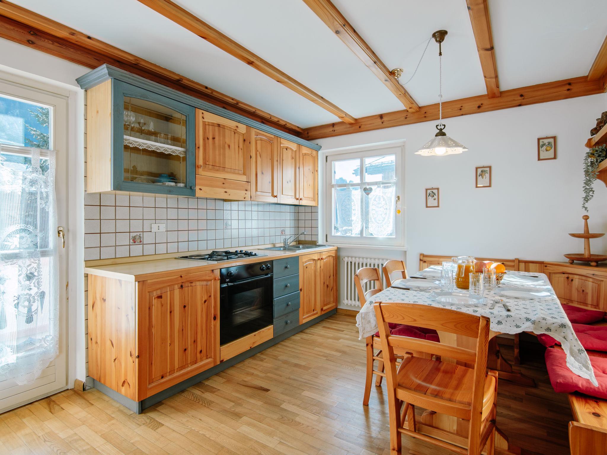 Campestrin di Fassa 5 km from Canazei: Apartment house. In the hamlet Campestrin 2.8 km from the centre of Campitello, in a quiet, sunny position, 3.5 km from the skiing area, south-west facing position. In Winter: please take snow chains. Roofed, parking at the house. Supermarket 1.4 km, restaurant 1.4 km, bus stop 300 m. Mountain railway 3.5 km, ski lift 3.5 km, ski bus stop 300 m. Nearby attractions: Sella Ronda 3.5 km.