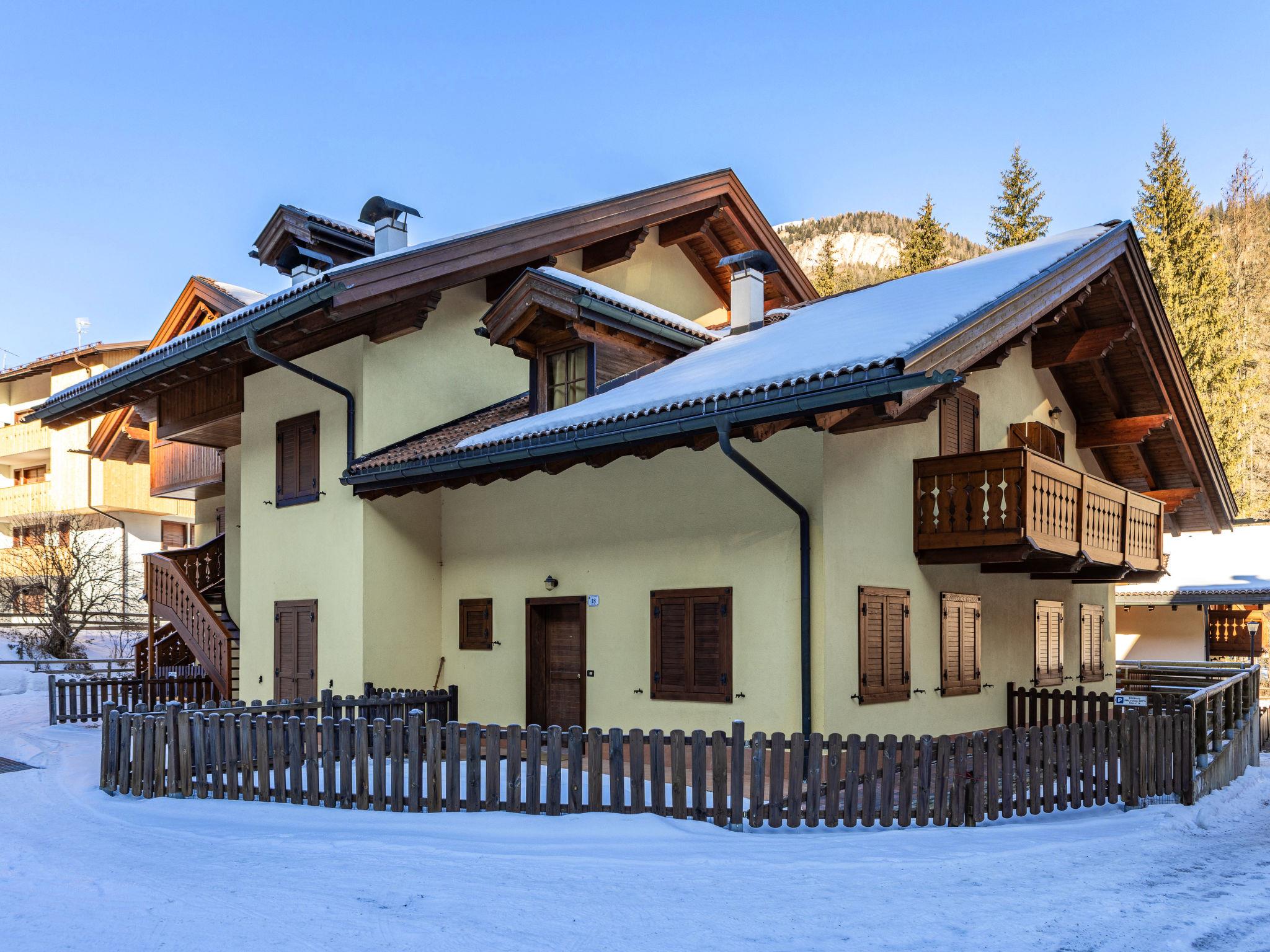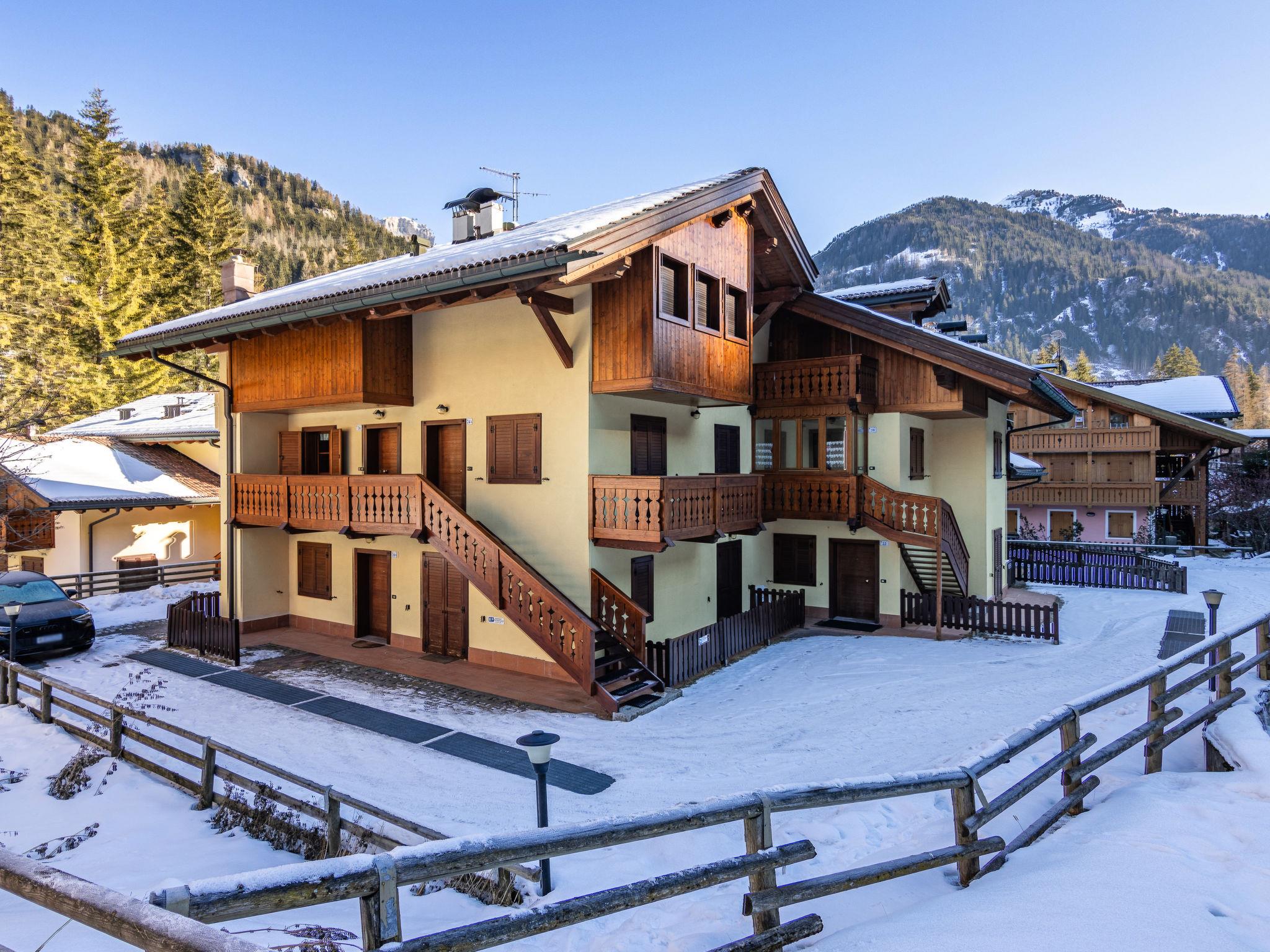 Apartment house "Condominio Parco degli abeti", 2 storeys, surrounded by trees. 3 houses in the residence. 450 m from the centre of Canazei, 2.5 km from the centre of Campitello, in a quiet, sunny position, 50 m from the river, in a cul-de-sac, in the countryside. Heating available only from 01.Dec. - 01.May.. Motor access (via unmade road). Supermarket 500 m, restaurant 350 m, bar 250 m, bus stop 300 m, park "parco giochi" 300 m, outdoor swimming pool 600 m. Cycle lane 100 m, skisport facilities 900 m, ski school 1 km, cross country ski track 100 m. Nearby attractions: Bolzano 51 km, Passo Sella 13 km, Passo Pordoi 13 km. Well-known ski regions can easily be reached: Sella Ronda 900 m, Col Rodella 3 km, Belvedere 900 m. Well-known lakes can easily be reached: Lago di Carezza 24 km, Lago di Fedaia 13 km. Please note: no lift.