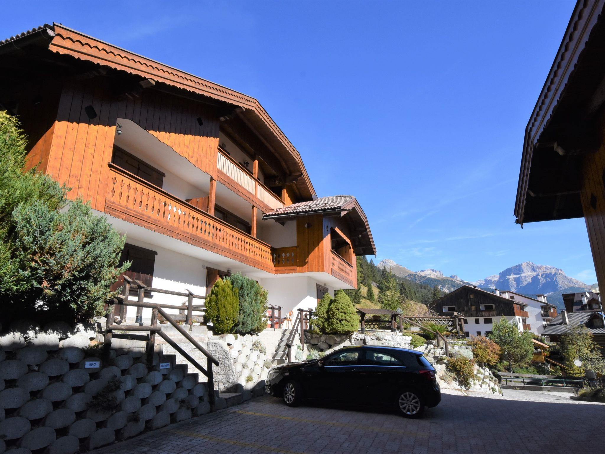 House "Villaggio Ladino", surrounded by trees. In the hamlet Mazzin 2 km from the centre of Pera, 3 km from the centre of Campitello, 5 km from the centre of Canazei, in a quiet, sunny position, along the wooded area, 2 km from the skiing area, south facing position. For shared use: garden. In the house: central heating system, heating available only from 01.Dec. - 01.May.. Shop 300 m, supermarket 500 m, restaurant, bar, café 300 m, bus stop 200 m. Ski lift 3 km, chair lift 2 km, ski bus stop 200 m. Nearby attractions: Sella Ronda 4.5 km, Lago di Carezza 18 km.