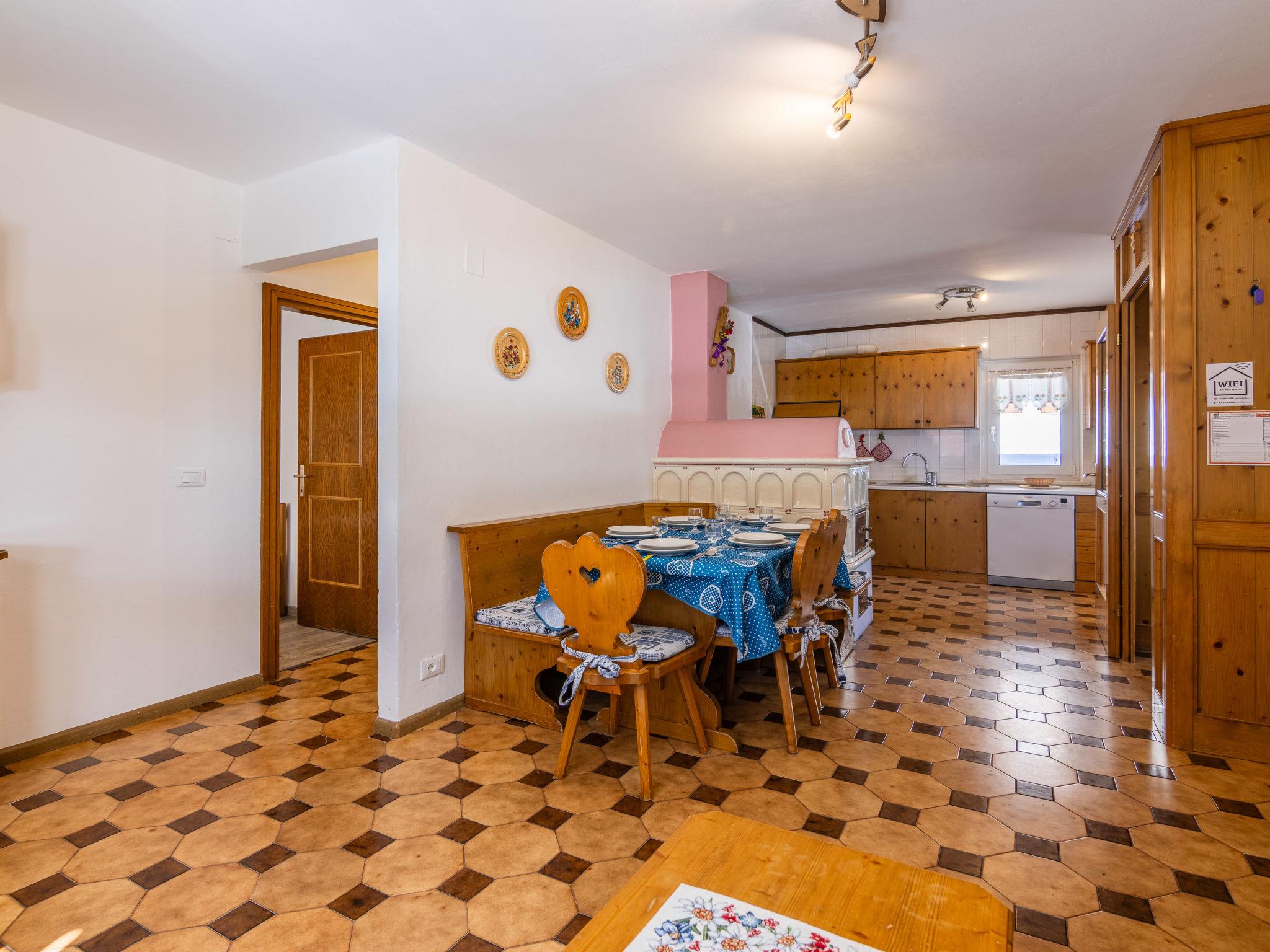 "Cesa Micheluzzi (CZI712)", 3-room apartment 65 m2 on 1st floor. Spacious, partly renovated in 2024, rustic and wooden furniture furnishings: living/sleeping room with 1 sofabed and digital TV. 1 double bedroom. 1 room with 2 beds. Kitchen in the entrance (oven, dishwasher, 4 ceramic glass hob hotplates, kettle, freezer, electric coffee machine) with dining table, Scandinavian wood stove (only for decoration). Shower/bidet/WC. Heating. Heating available only from 11.10. to 23.05. Terrace. Terrace furniture, sitting area. View of the mountains. Facilities: washing machine, baby cot for up to 2 year olds, hair dryer. Internet (WiFi, free). Parking (fenced 2 cars). Please note: non-smokers only. Private entrance. IT022039C2XKCHHJQM