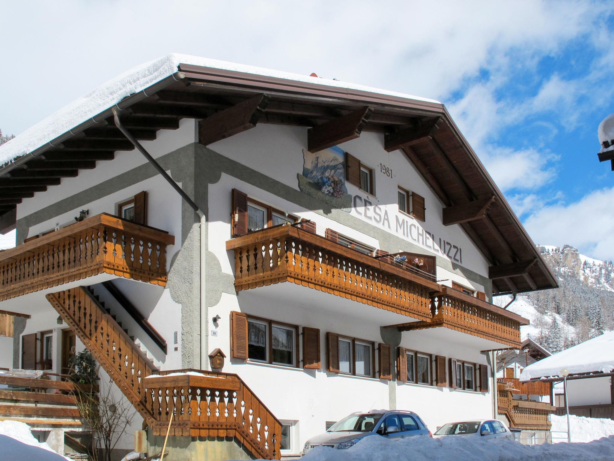 Penia 3 km from Canazei: House "Cesa Micheluzzi". In the district of Penia 3 km from the centre of Canazei, 6.3 km from the centre of Campitello, 60 km from the centre of Bolzano, in a sunny position on a slope. In the house: storage room for skis. Parking on the premises. Grocery 300 m, bus stop "Canazei" 3 km. Ski lift 1 km, gondola lift 1 km, ski bus stop 150 m. Well-known ski regions can easily be reached: Ciampac 1 km, Doleda (Sella Ronda) 1 km.