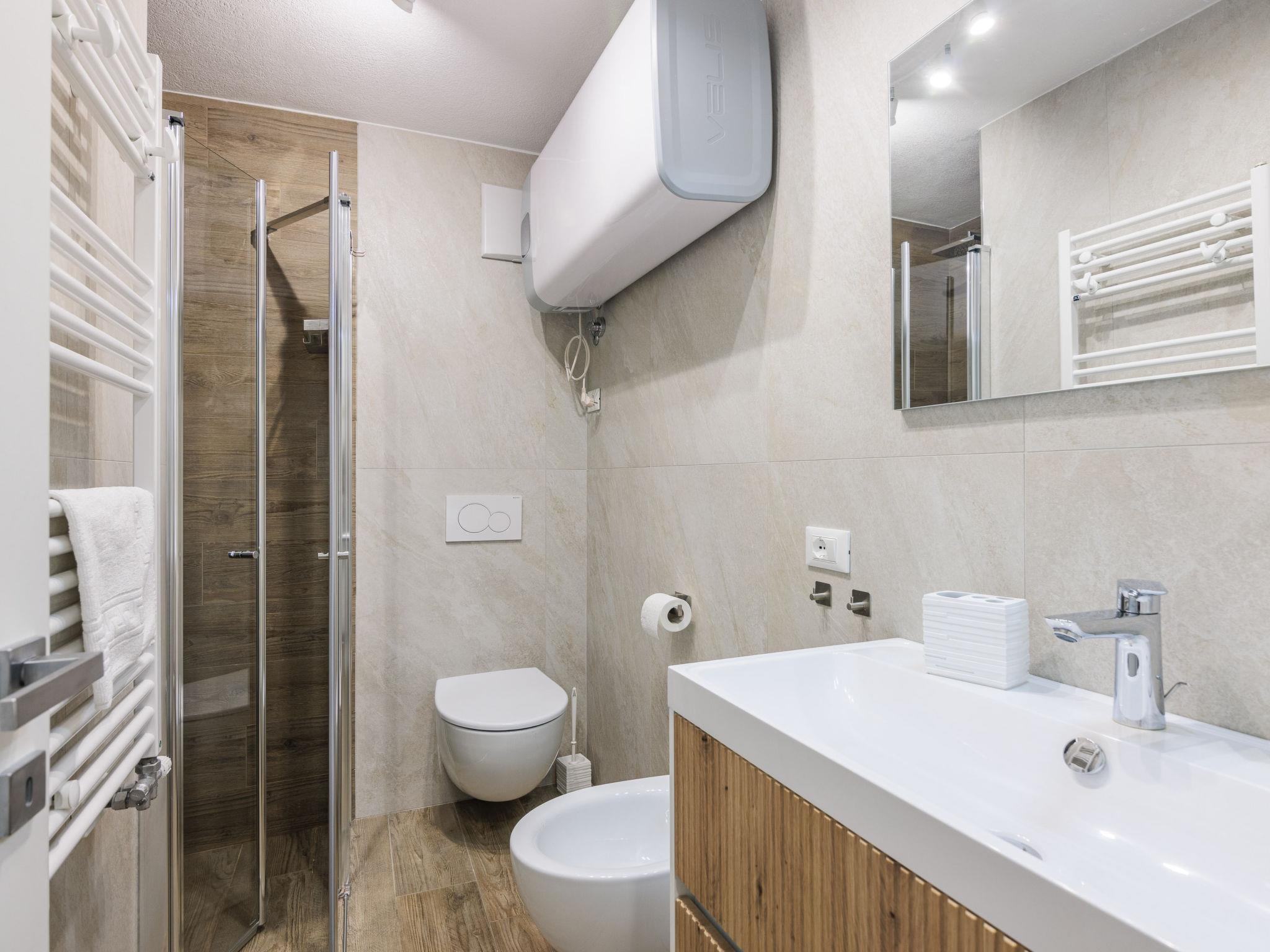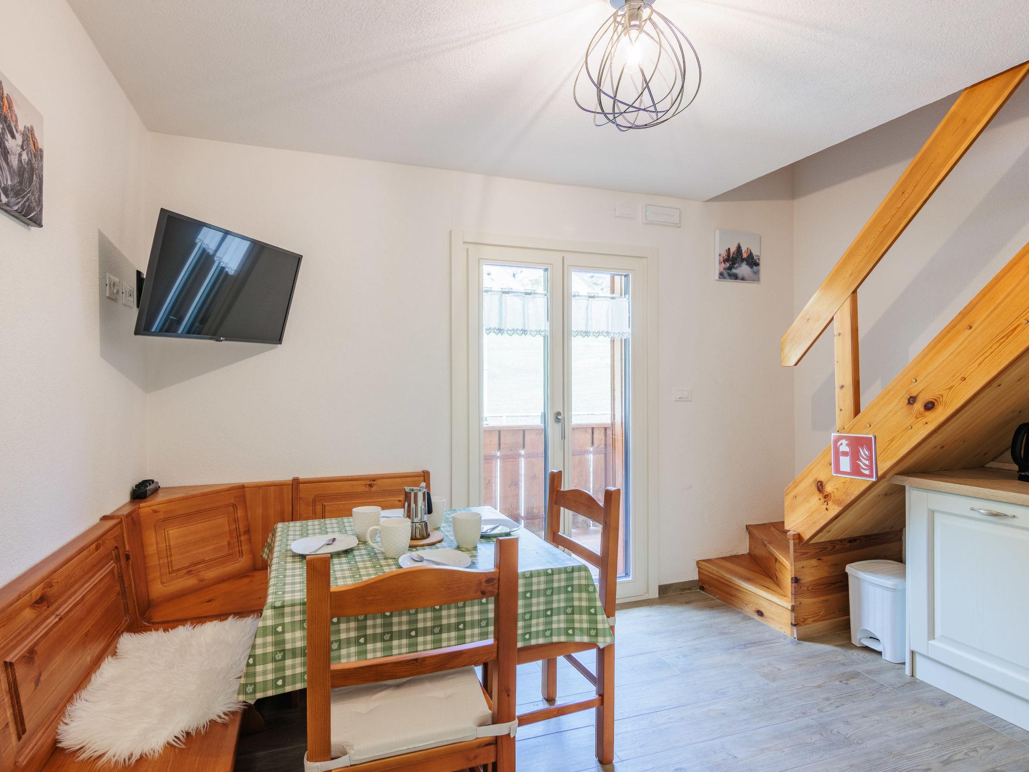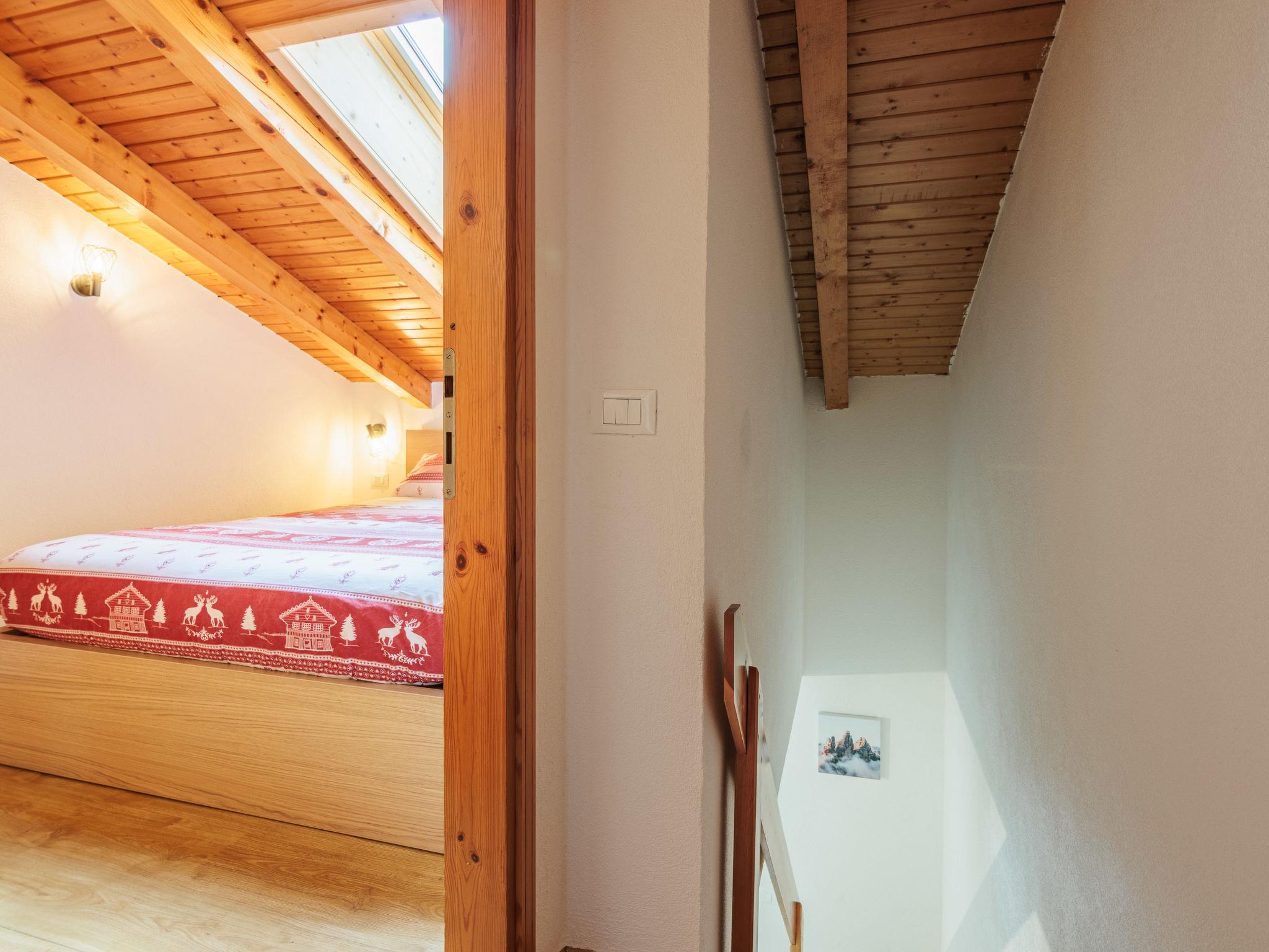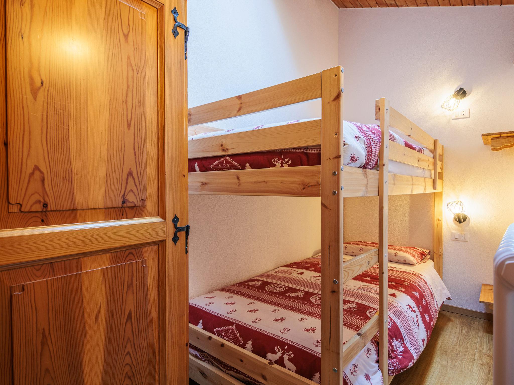 3-room apartment 40 m2 on 2 levels on 1st floor. Comfortable and tasteful furnishings: small living/dining room with dining table and TV. Exit to the balcony. Kitchenette (4 induction hot plates, kettle, microwave). Shower/bidet/WC. Upper floor: (steep stair), 1 room with 1 x 2 bunk beds. 1 double bedroom with sloping ceilings. Small balcony. Balcony furniture. Beautiful view of the mountains and the valley. Facilities: hair dryer. Internet (WiFi, free). Parking. Please note: suitable for families. Non-smokers only. Maximum 1 pet/ dog allowed. Fire extinguisher, no lift. IT022039C2NWRTT4MB