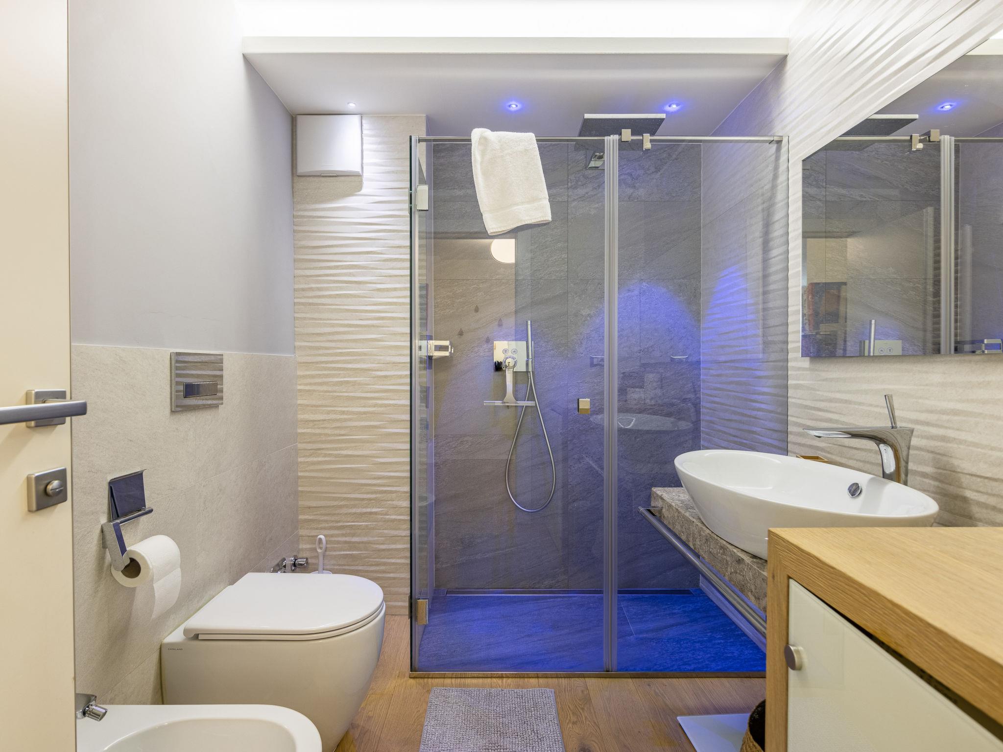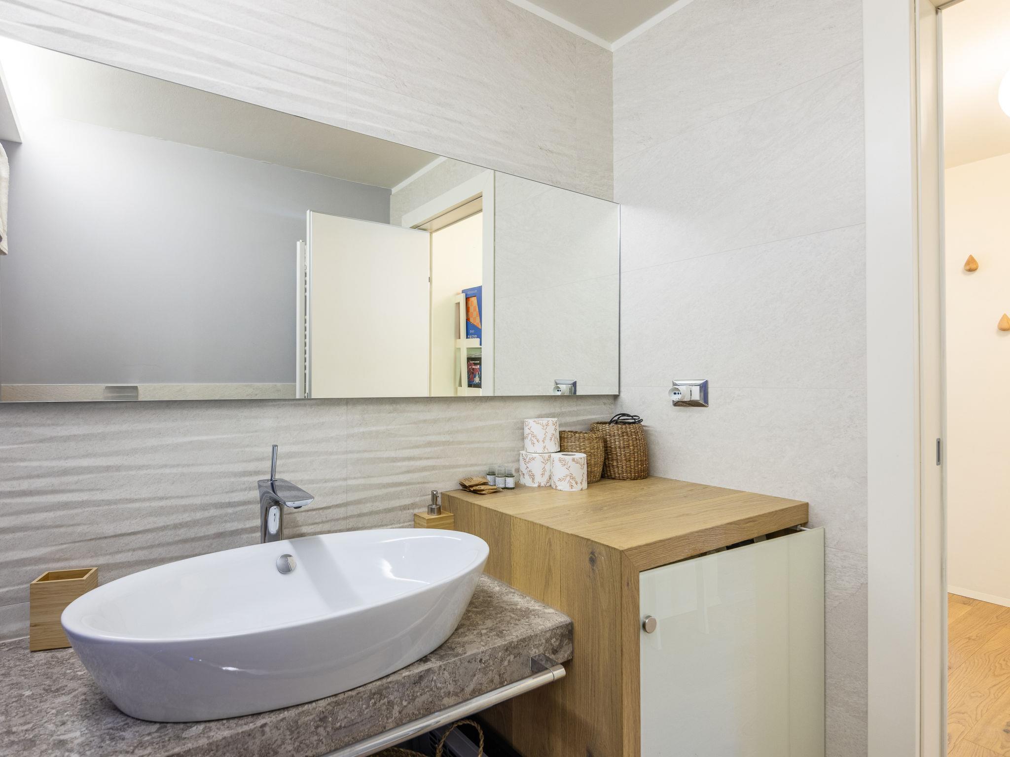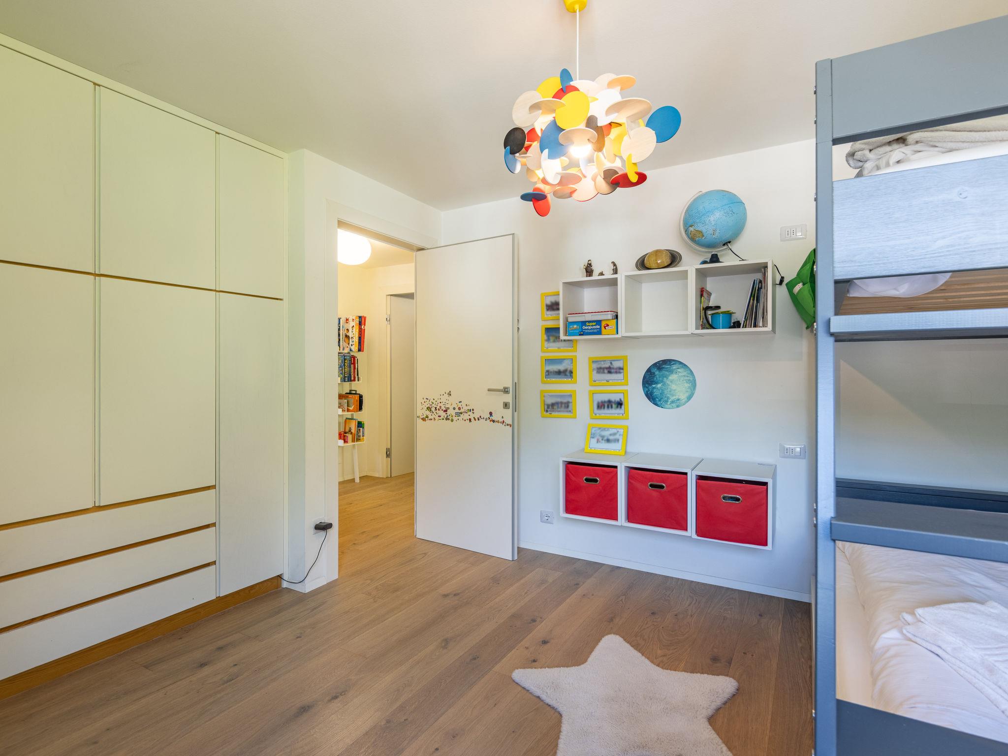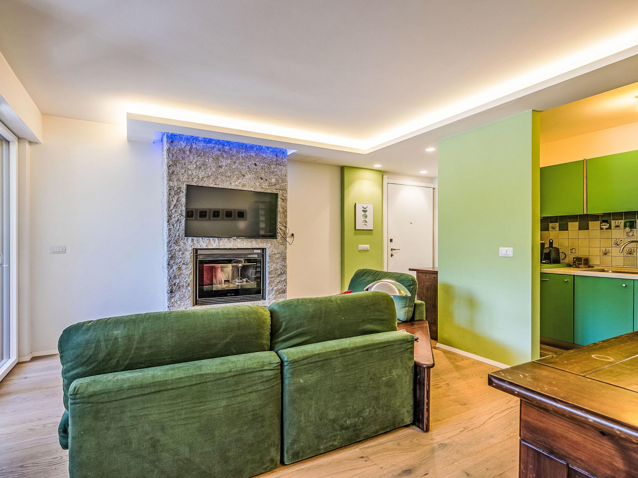3-room apartment 85 m2. Comfortable and stylish furnishings: entrance hall. Living/dining room with open-hearth fireplace (only for decoration), TV. Exit to the balcony. 1 room with panoramic window with 1 x 2 bunk beds, 1 pull-out bed. 1 double bedroom with 1 double bed. Kitchen (dishwasher, 4 induction hot plates) with dining table. Shower/bidet/WC. Heating available only from 01.12. to 01.05. Wooden floors. Very beautiful view of the mountains. Facilities: washing machine, dryer, hair dryer. Internet (WiFi). Garage on the property (1 car). Please note: non-smokers only. Smoke alarm, fire extinguisher, no lift. IT022039C2724H2KT4
