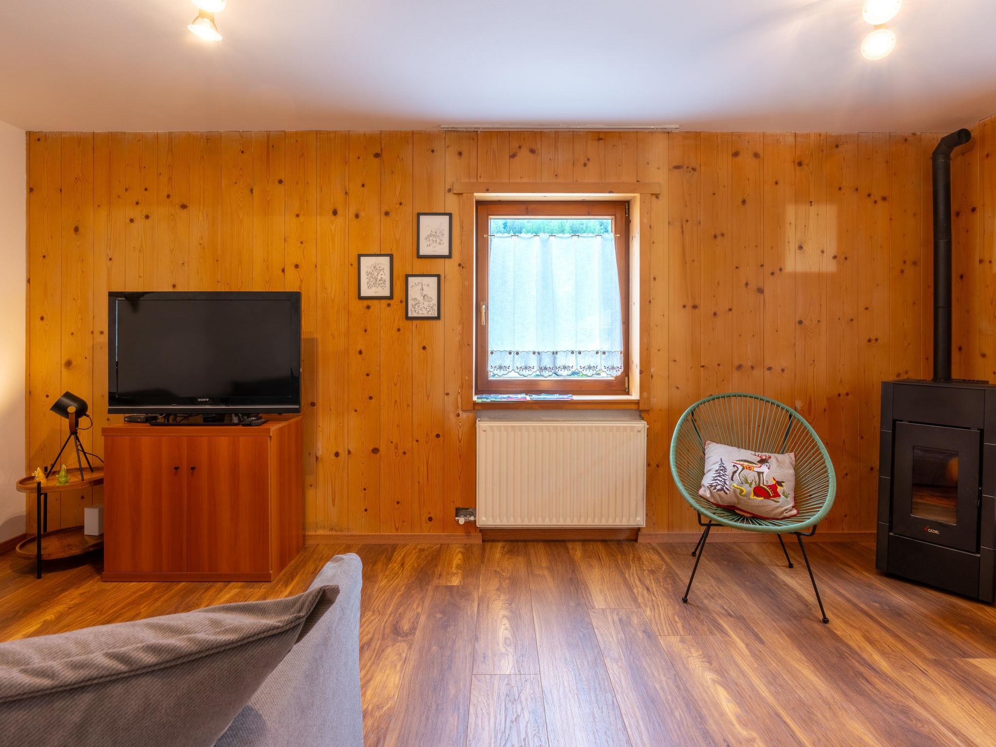 "Ca' di nonón", 3-room apartment 70 m2, on the ground floor. Spacious, fully renovated in 2024, simple and cosy furnishings: living room with 1 double sofabed and TV. Luggage room. 1 double bedroom. 1 room with 1 x 2 bunk beds, 1 double bed. Exit to the balcony. Open kitchen in the entrance (oven, dishwasher, 4 induction hot plates, toaster, kettle, microwave) with dining table. Shower/bidet/WC. Heating. Heating available only from 01.12. to 01.05. Wooden floors. Small balcony. Balcony furniture, deck chairs, sitting area. Side view of the mountains and the forest. Facilities: washing machine, iron, children's high chair, hair dryer. Internet (WiFi, free). Parking. Please note: non-smokers only. Maximum 1 pet/ dog allowed. Private entrance, fire extinguisher. IT022039C2Y7OLULB7