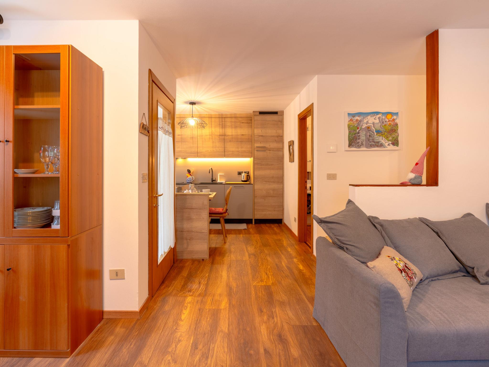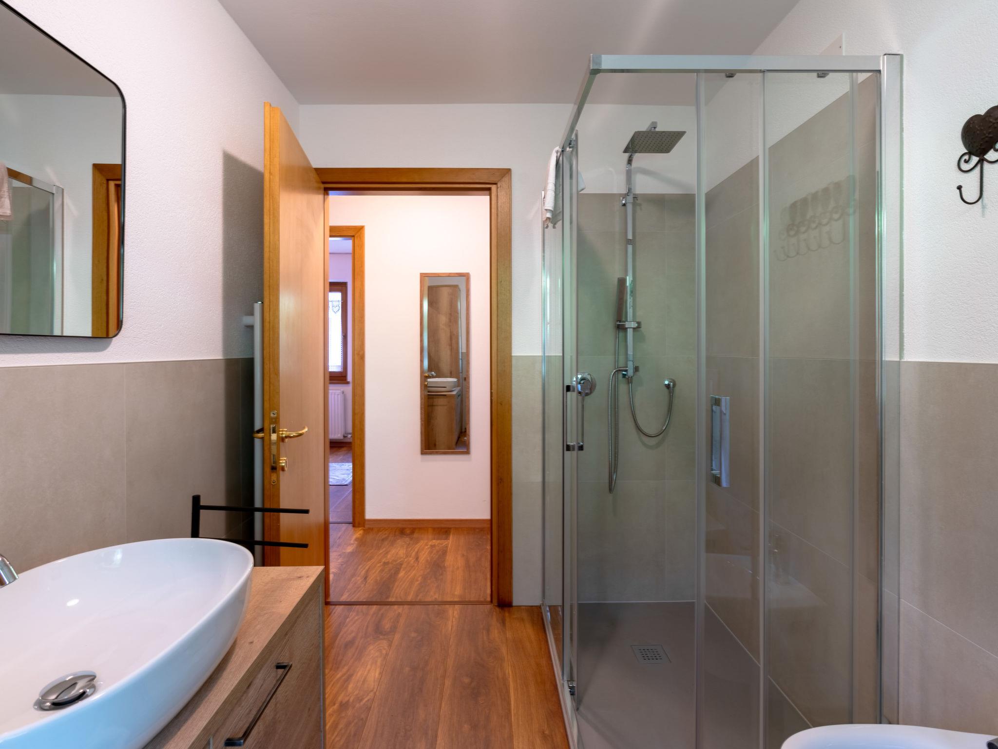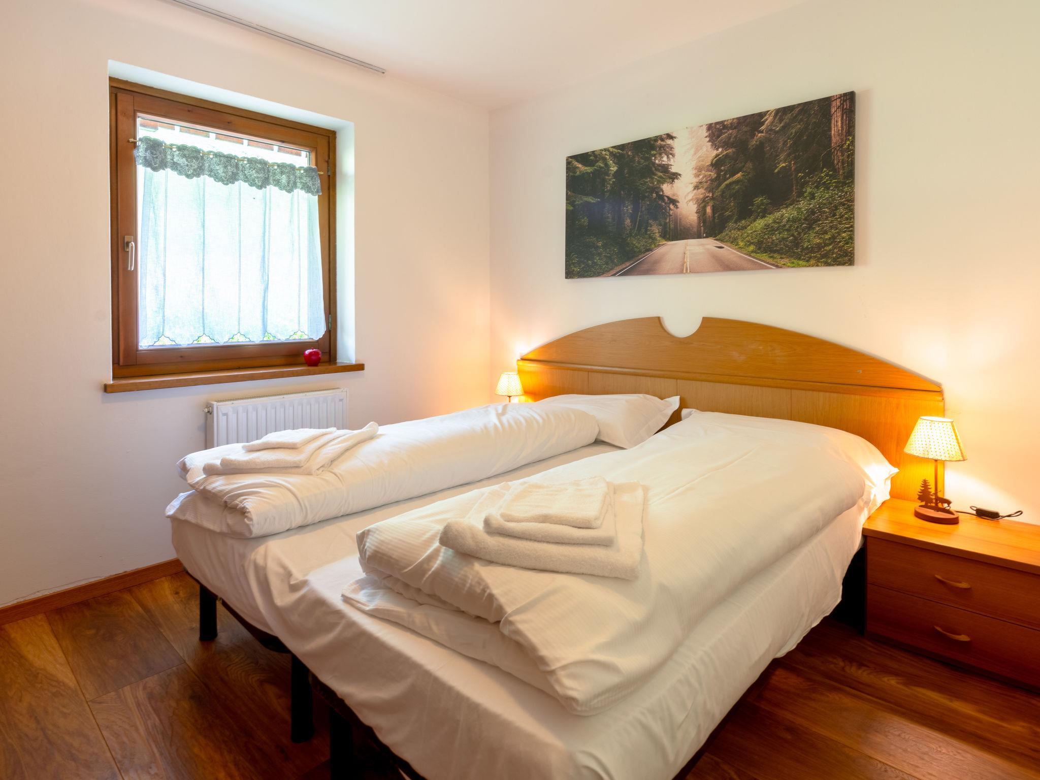 Cosy, rustic apartment block "Penia", 2 storeys. In a quiet position, 20 m from the edge of the forest, in the countryside. In the house: storage room for bicycles, storage room for skis, drying room, ski boot dryer. Linen change (suppl. charge extra). Room cleaning on request (extra). Parking at the house, public parking 50 m on the road. Grocery 300 m, restaurant, bar 500 m, 15 minute walk to the centre, bus stop 50 m. Gondola lift 1 km, skisport facilities 1 km, ski rental 1 km, ski bus stop 50 m, ski school 1 km. Nearby attractions: Rifugio Piz Boé, Rifugio Vajolet al Catinaccio, Museo Marmolada Grande Guerra 3000m. Well-known ski regions can easily be reached: Ski Area Col Rodella Campitello di Fassa, Ski Area Pordoi, Alpe Lusia Moena di Fassa. Well-known lakes can easily be reached: Lago di Artemoia, Lago San Pellegrino. Hiking paths: Passo San Pellegrino, Passo Pordoi, Sentiero Viel del Pan. Groups of teenagers on request only. Neighbourhood highly sensitive to noise. Quietness and good behaviour expected.