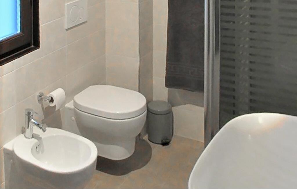 Badeværelse (nr. 1) - WC. Varmt og koldt vand. Bruser