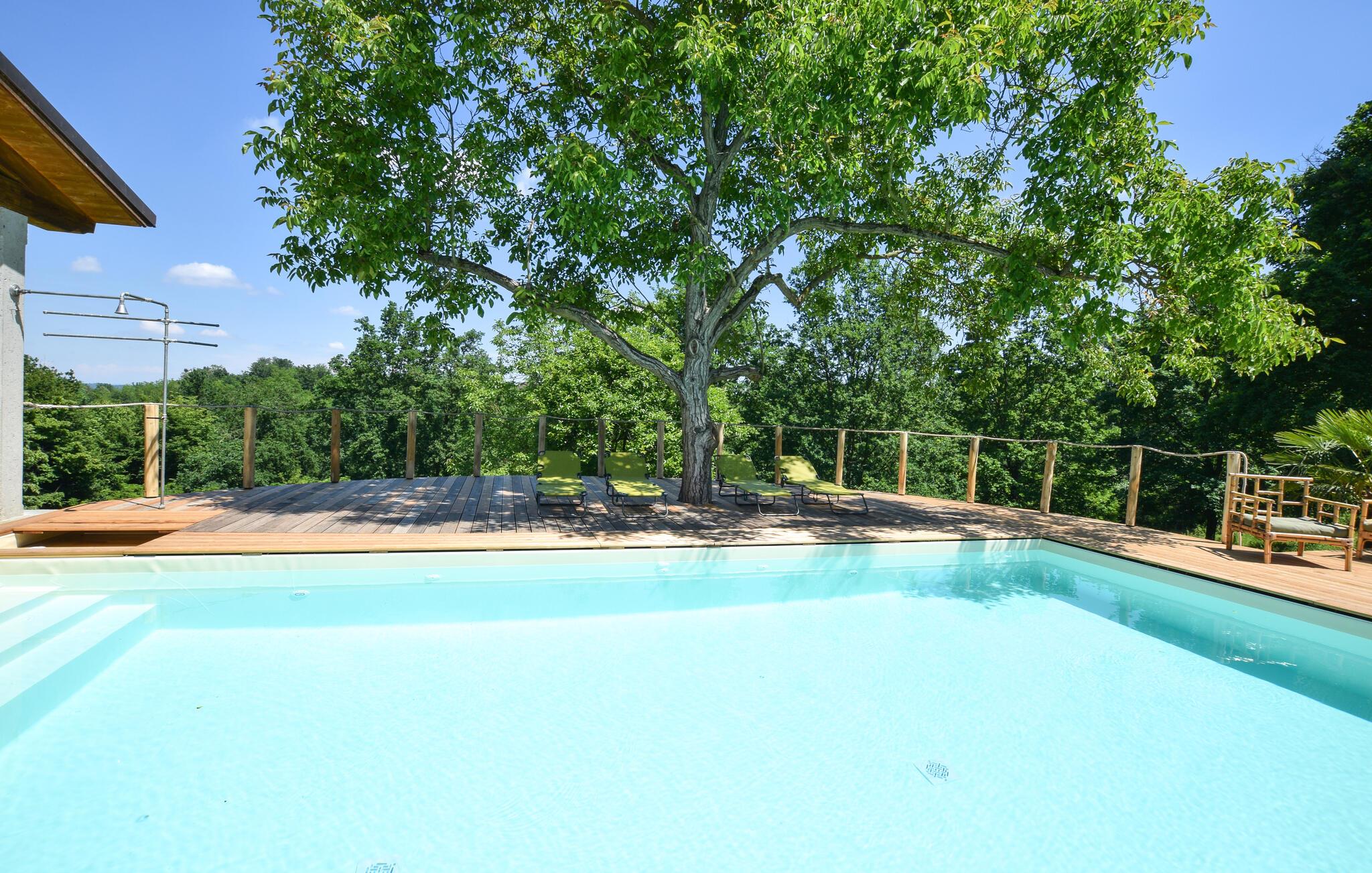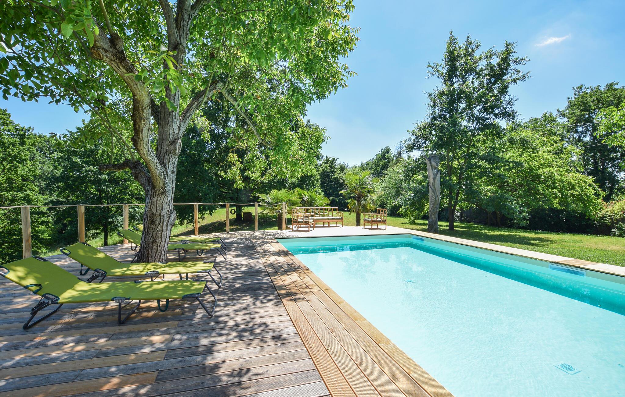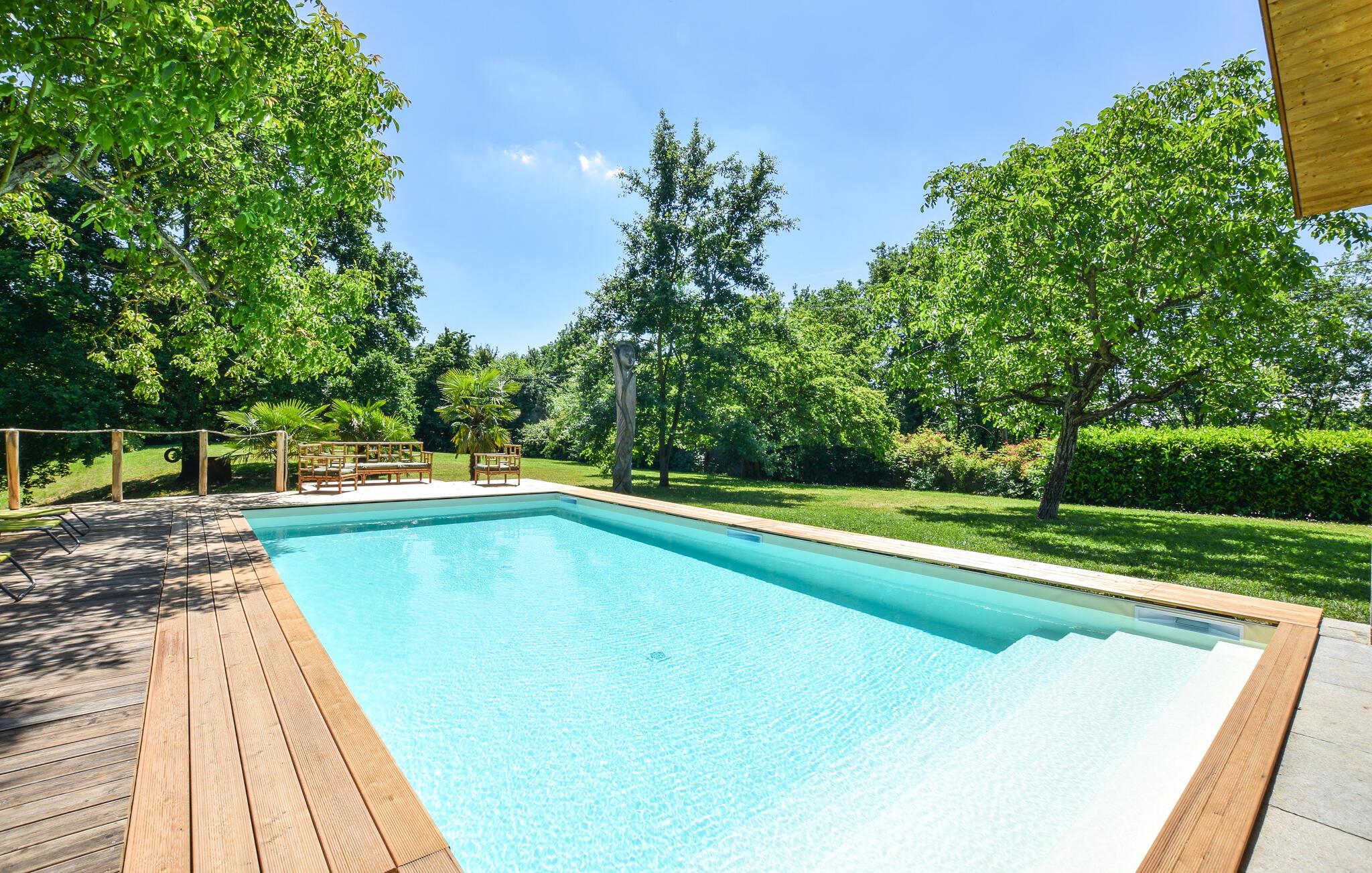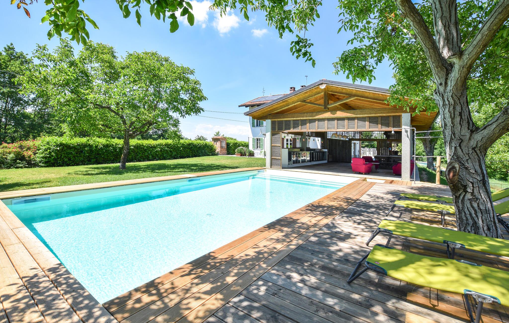 Forkæl jer selv med en uforglemmelig ferie i dette rummelige feriehus med pool og stor have.