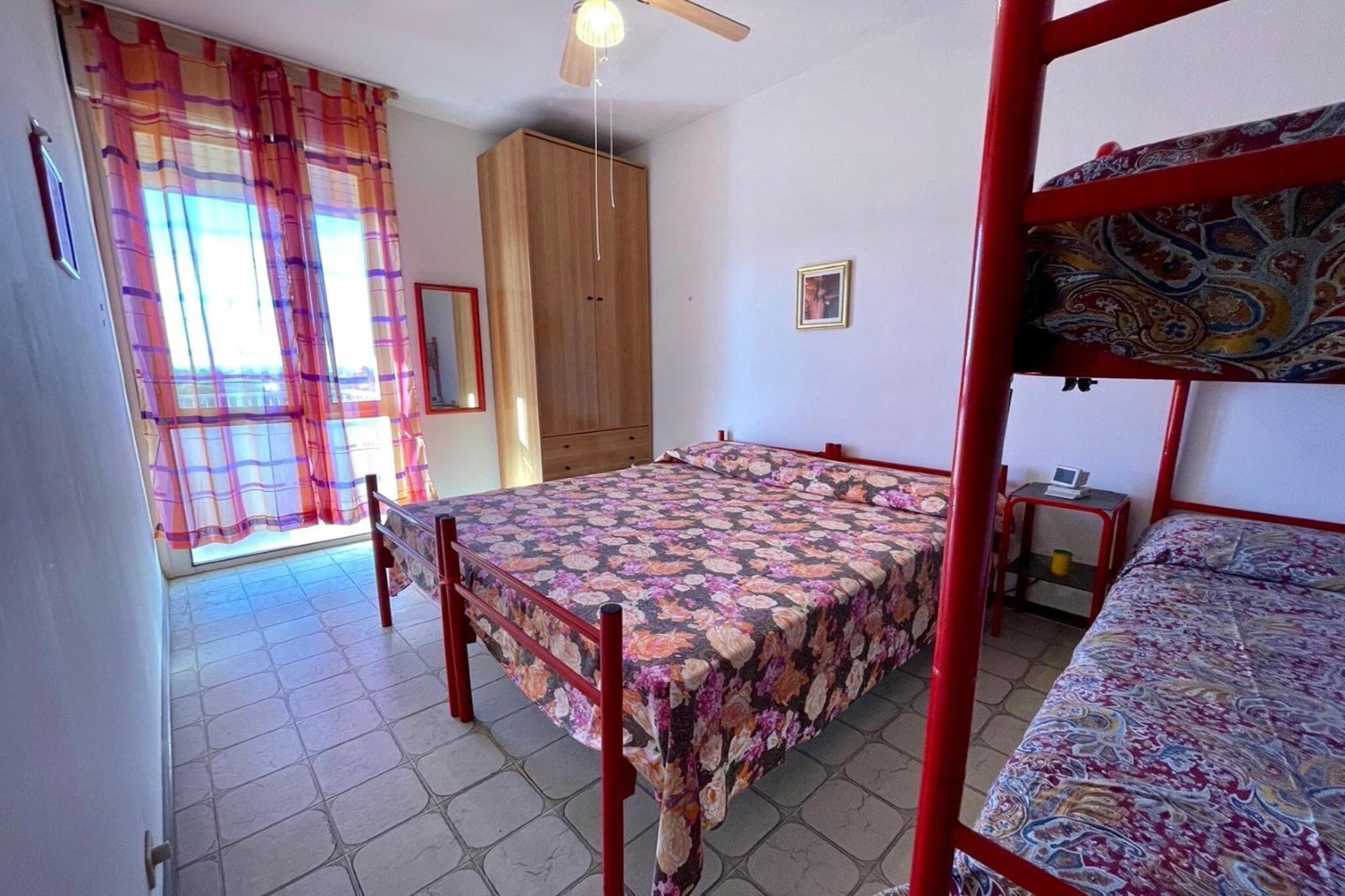 På 4. etage: (Stue(dobbeltsovesofa, Fjernsyn, spisebord, sofahjørne), åbent køkken(kogeplade, emhætte, mikrobølgeovn, køle-fryseskab, håndvask), soveværelse(dobbeltseng, køjeseng), badeværelse(bruser, håndvask, toilet, bidet), klimaanlæg, terrasse(privat)) parkering
