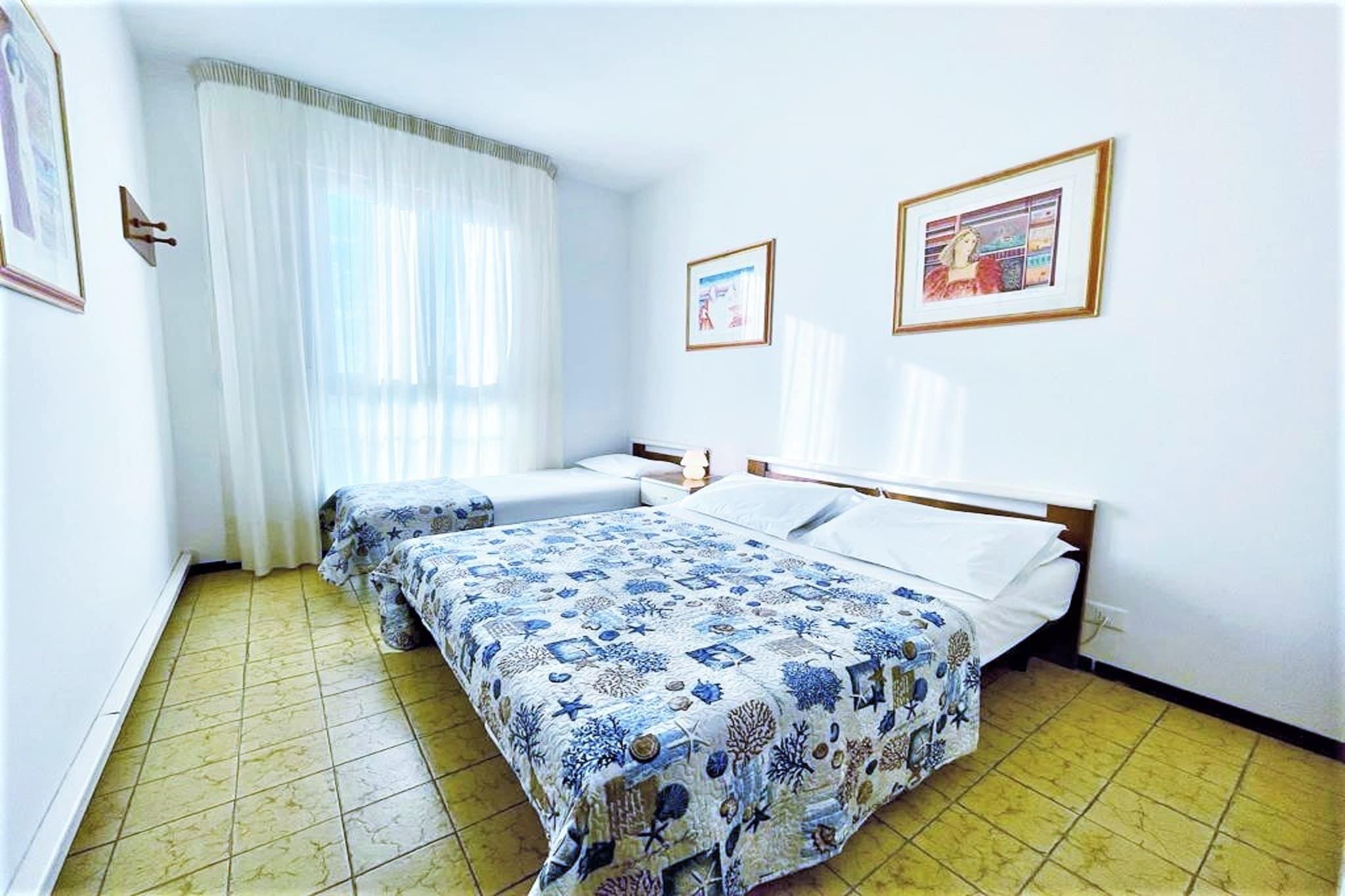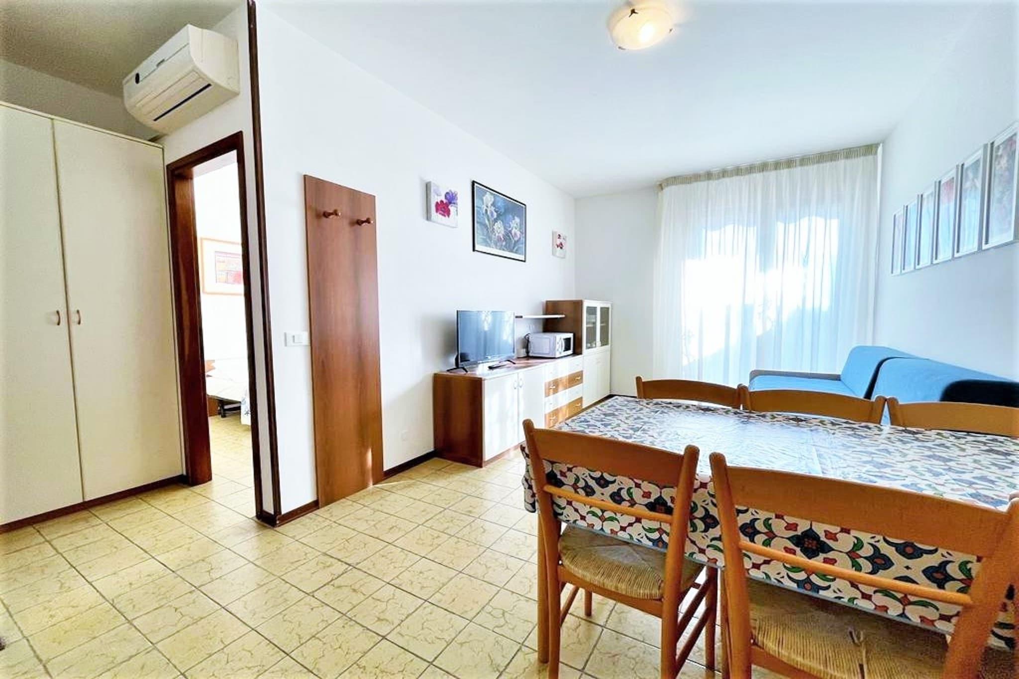 Hyggeligt ophold nær Caorle-stranden Denne kæledyrsvenlige lejlighed til 5 gæster ligger på 3. sal, kun 500 meter fra stranden i Caorle. Ideel til familier eller små grupper og har en lys stue med en dobbelt sovesofa, tv, spisebord og et komfortabelt siddeområde. Det åbne køkken er udstyret med kogeplader, emhætte, mikrobølgeovn, køleskab med fryser og håndvask, perfekt til at tilberede måltider derhjemme. Komfort med moderne bekvemmeligheder Soveværelset har en dobbeltseng og en enkeltseng, hvilket gør det velegnet til både par og familier. Badeværelset er udstyret med bruser, håndvask, toilet, bidet og vaskemaskine for din bekvemmelighed. Aircondition sikrer et køligt indeklima på varmere dage, og der er gratis WiFi i hele lejligheden. Terrasseudsigt og fantastisk beliggenhed Nyd afslapning på din private terrasse efter en dag på stranden eller efter at have udforsket Caorles charmerende gader. Med privat parkering, supermarkeder kun 150 meter væk og restauranter inden for 200 meter er alt, hvad du behøver, inden for rækkevidde for en ubekymret ferie ved Adriaterhavet.