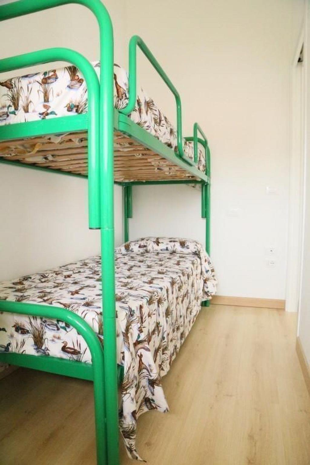 The holiday home is suitable for max. five persons. It consists of a spacious living room with a sofa bed (offering space for one person), a bedroom with a double bed and another bedroom with two single beds. The kitchenette is completely equipped. There is also a nice terrace facing to the garden.