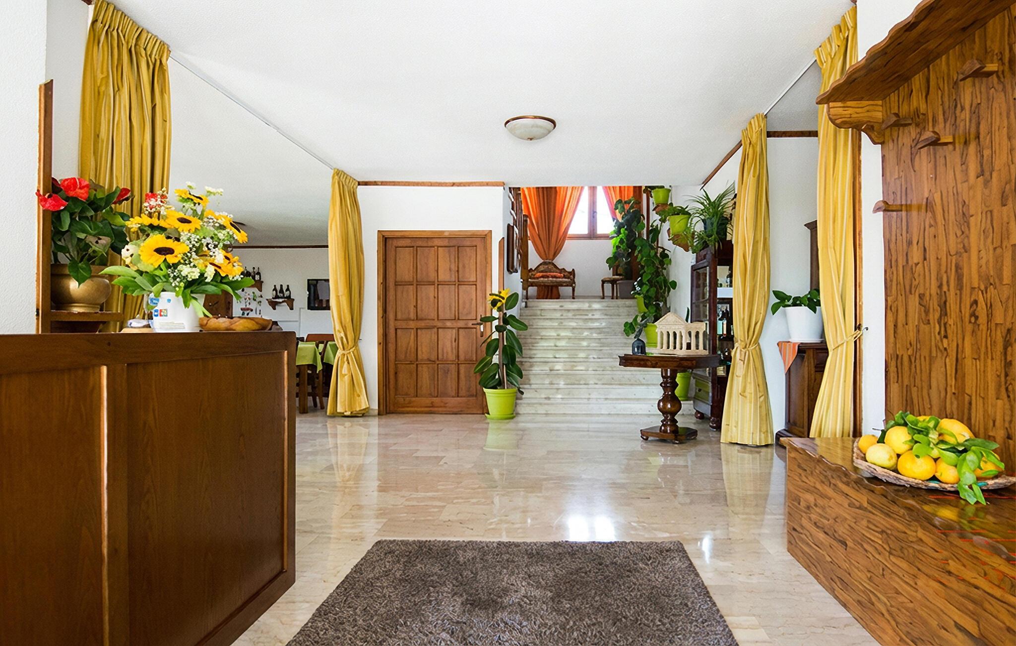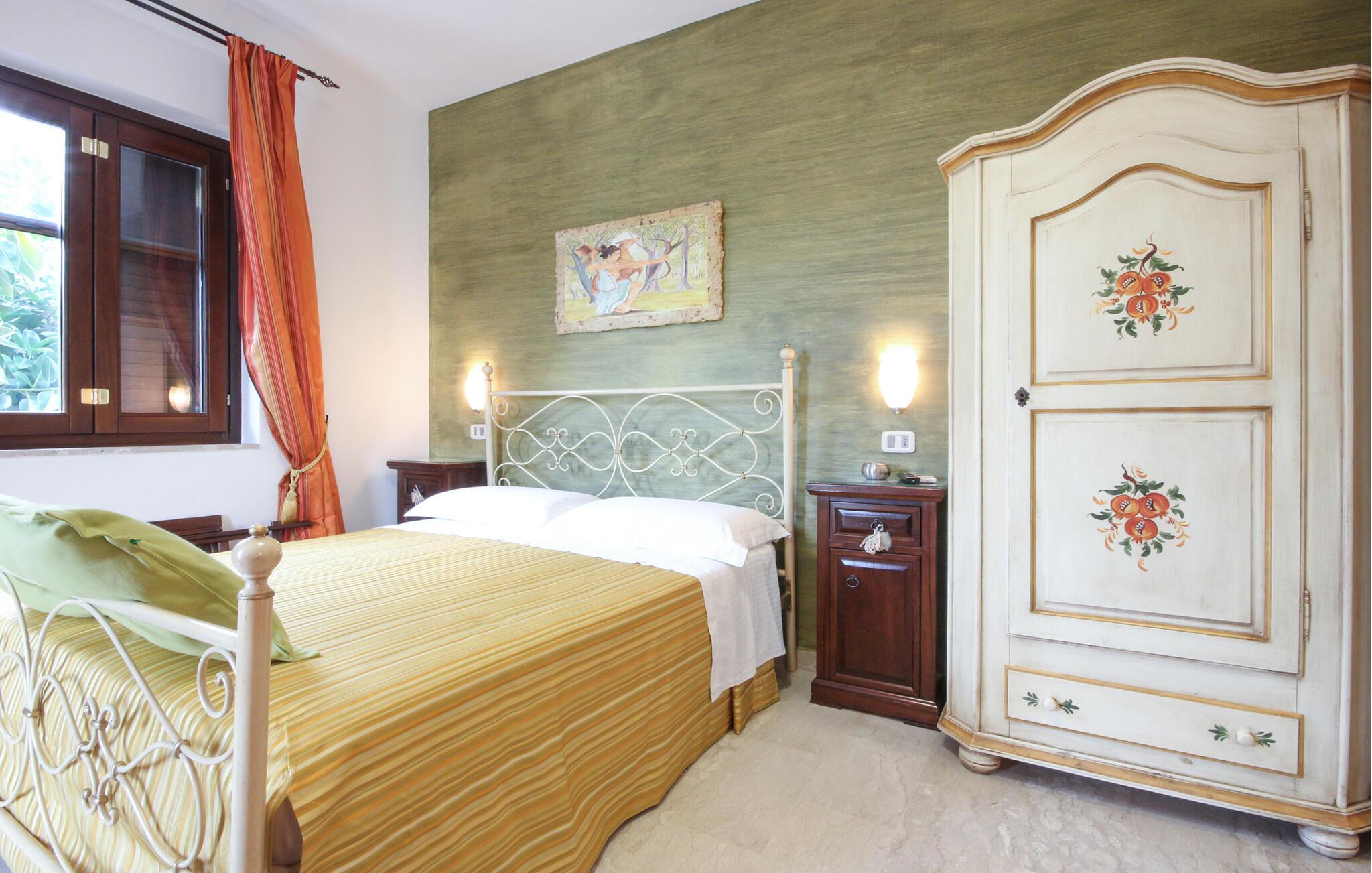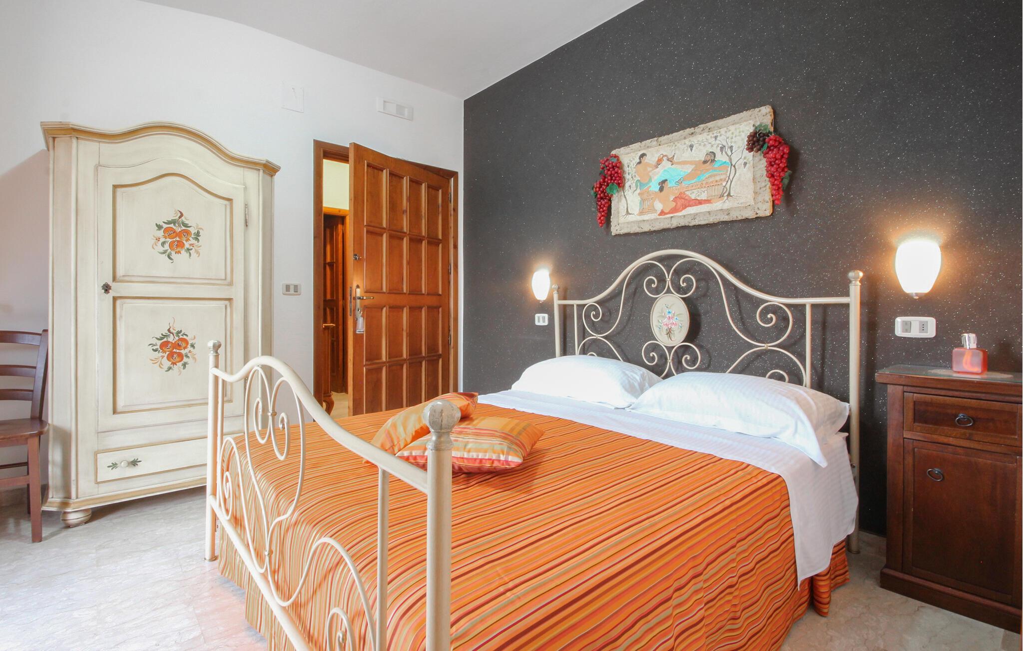 Tilbring en afslappende tid i dette hus, der byder sine gæster velkommen kun en kort køretur fra havet. Det tilbyder rigelig plads til hele familien eller en gruppe venner, hvilket gør det til det ideelle sted for en ferie fyldt med hyggelige aktiviteter. Hyggelige værelser lægger op til at slappe af fra den allerførste dag, og efter jeres udflugter kan I slappe af sammen i den rummelige opholdsstue.