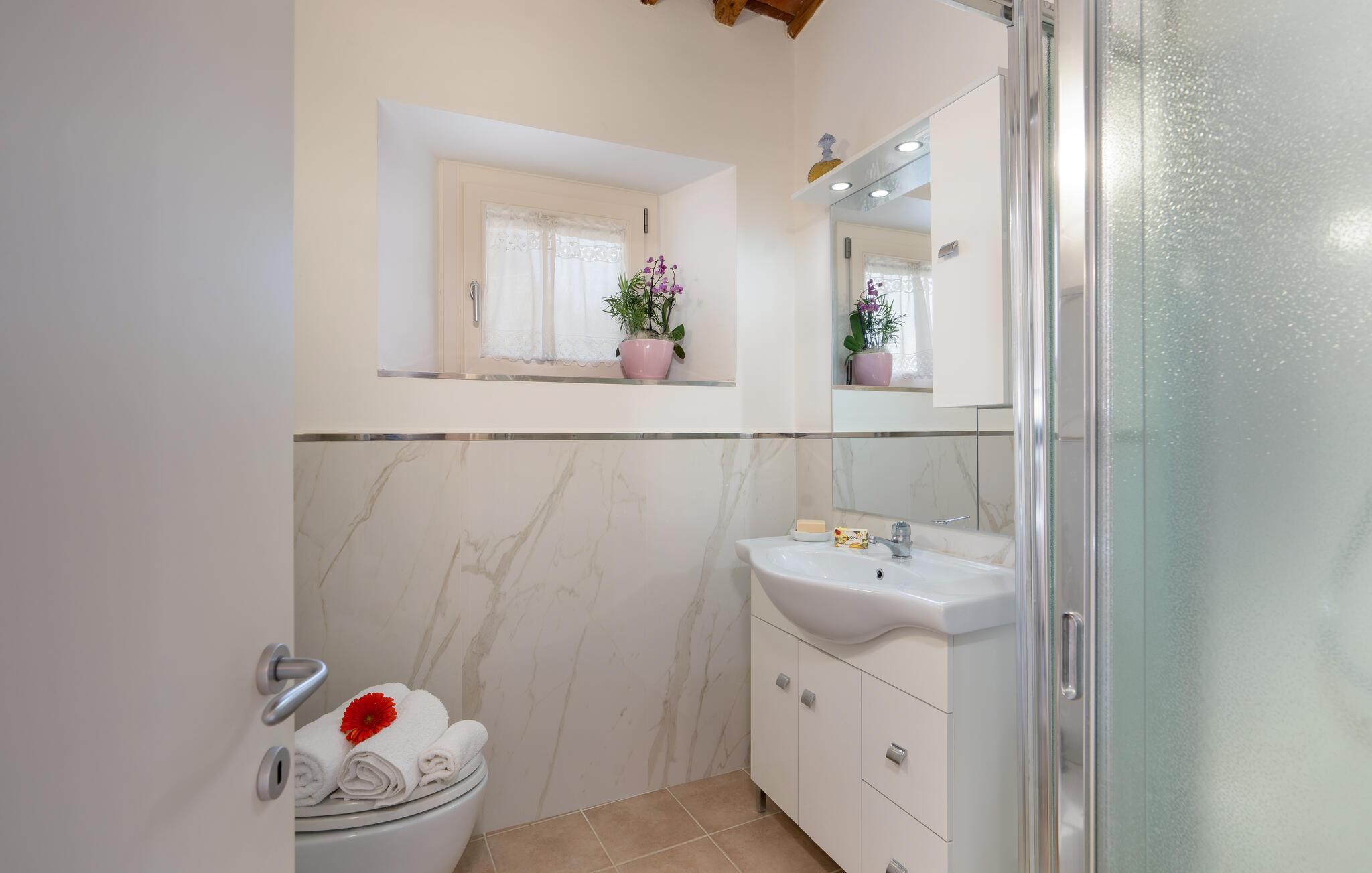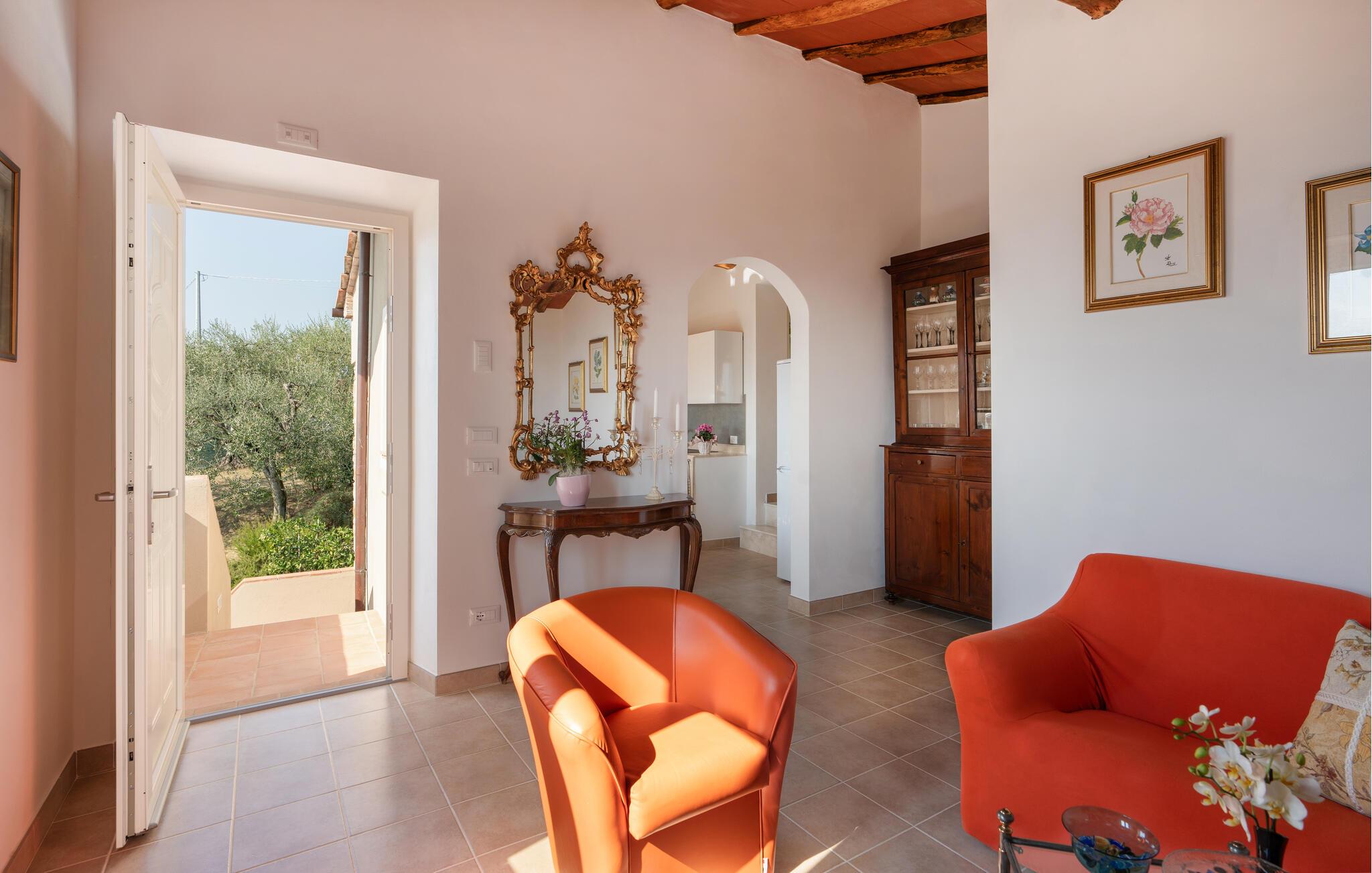 Ejendommen giver jer en betagende udsigt over Toscanas bølgende bakker og er omgivet af maleriske olivenlunde. Slap af ved den private pool, indrammet af frodige grønne områder, og nyd den rolige udsigt. Tilbring dagen i skyggen af verandaen, hvor I kan spise med venner. Gør det behageligt i den hyggelige opholdsstue, hvis rustikke træbjælker og lyse vægge skaber en indbydende atmosfære. Brug det smukke køkken til at tilberede regionale specialiteter og bliv inspireret af de friske toscanske råvarer.