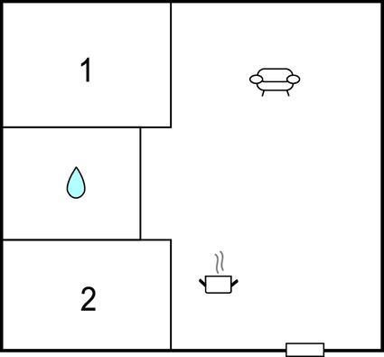 Soveværelse (nr. 2) - 1 Soveplads. (Enkeltseng(e)). 2 Sovepladser. (Dobbeltseng(e)).