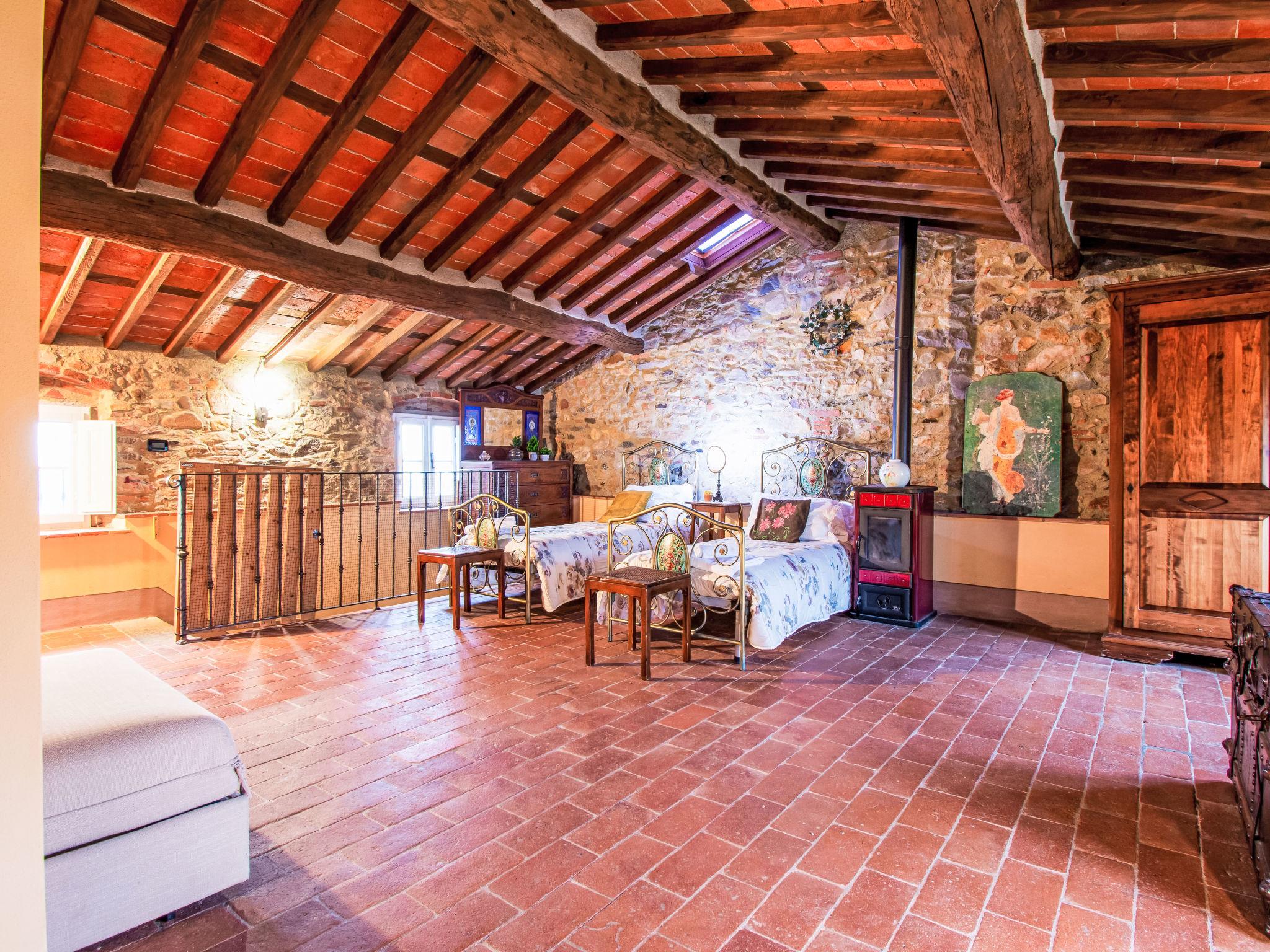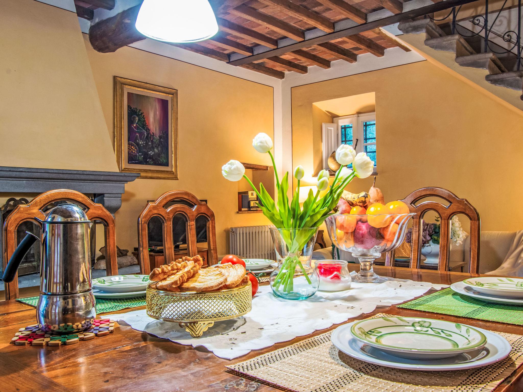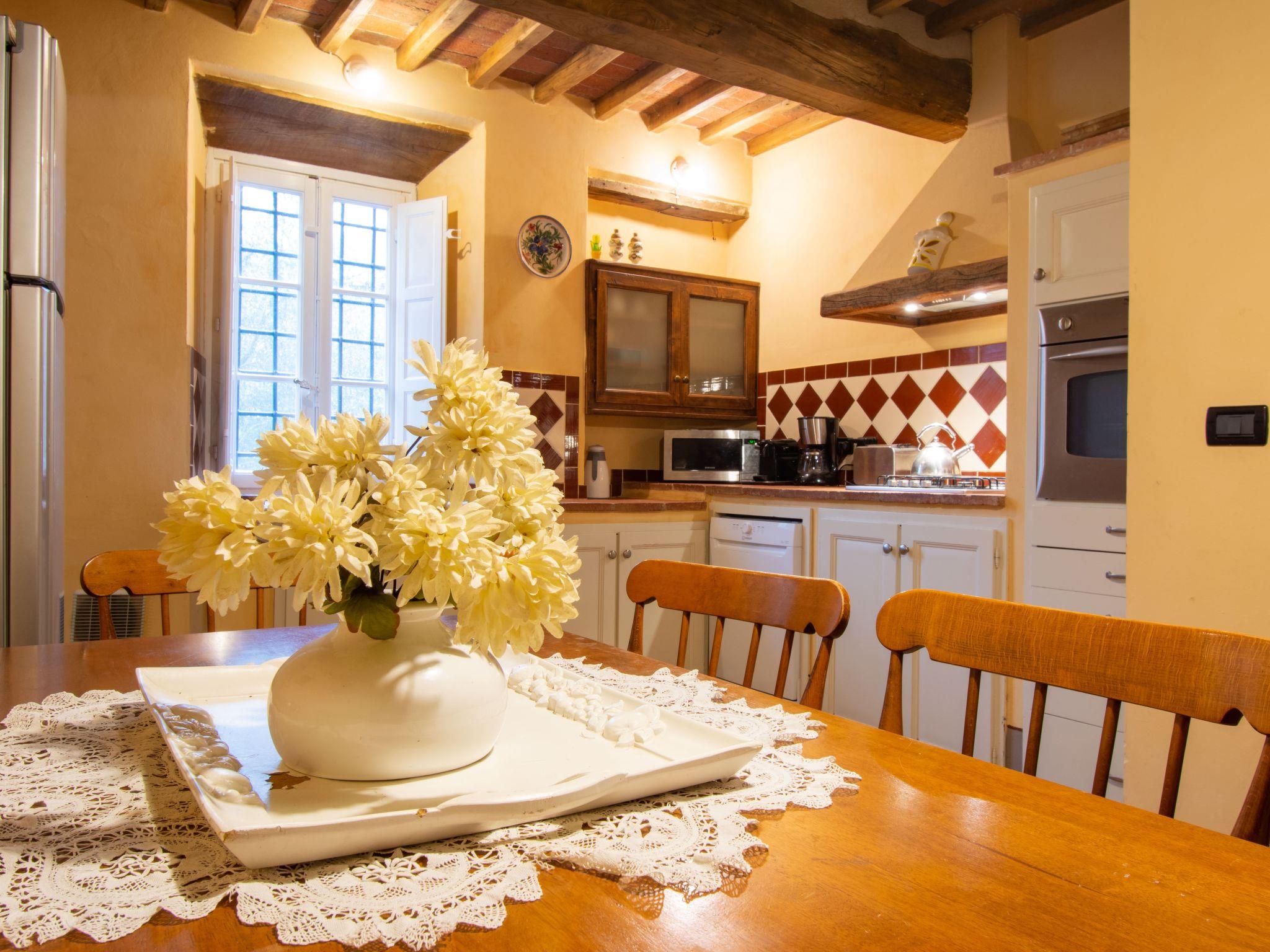 Cosy, comfortable country house "Micla", 3 storeys, built in 1600, renovated in 2004, surrounded by trees and meadows. In the district of San Giusto di Compito, in a quiet, sunny position, in the countryside. Private: property 2'000 m2 (fenced), trees, natural garden 900 m2 (fenced), swimming pool fenced (6 x 4 m, depth 120 - 120 cm, seasonal availability: 15.May. - 15.Oct.). Heating available only from 15.Nov. - 15.Apr.. Parking on the premises. Shop 2 km, grocery 2 km, supermarket 2 km, shopping centre 1 km, bar 2 km, bus stop 2 km, railway station 7 km. Nearby attractions: Lucca 7 km, Pisa 21 km, Montecarlo 17 km, Firenze 80 km. Please note: baby equipment on request (included).