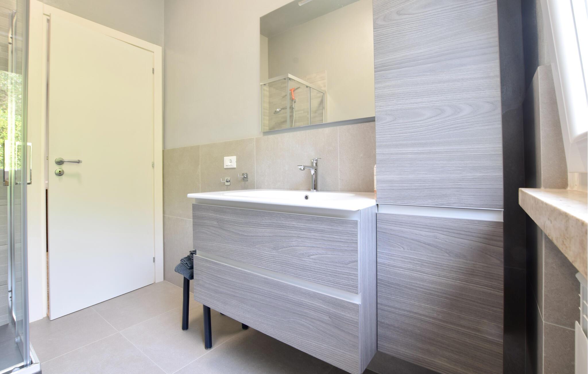 Dette lyse og indbydende dobbelthus byder jer velkommen i en privilegeret beliggenhed på en bjergskråning og tilbyder jer et rummeligt midlertidigt hjem, mens I udforsker regionens charmerende seværdigheder. Tilbered lækre pastaretter og planlæg jeres aktiviteter under afslappede måltider. Efter en begivenhedsrig dag kan I læne jer tilbage i sofaen, fordybe jer i jeres ferielæsning eller bruge tid på familien under en hyggelig spilleaften.