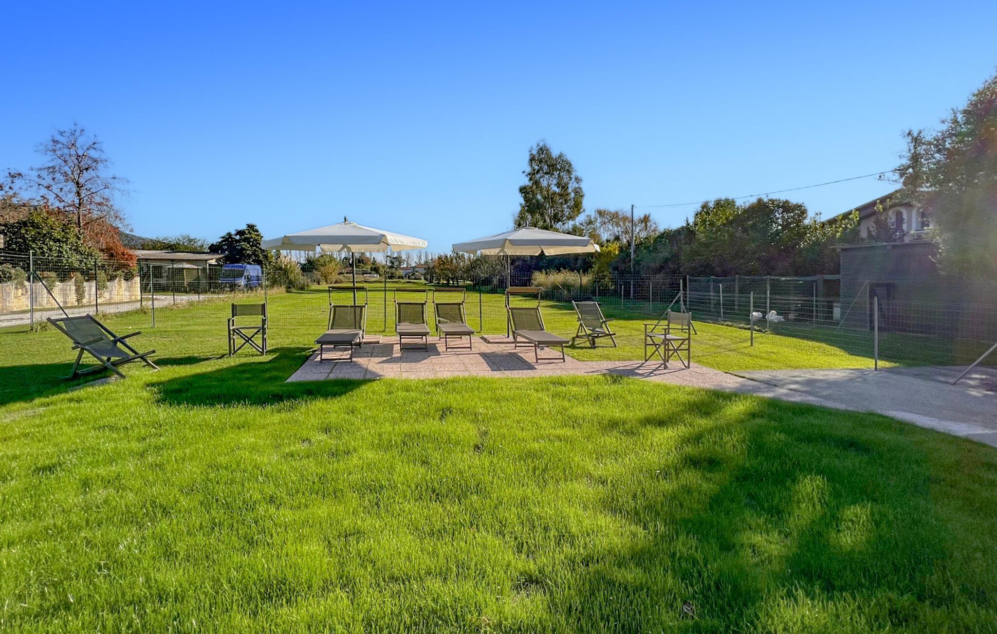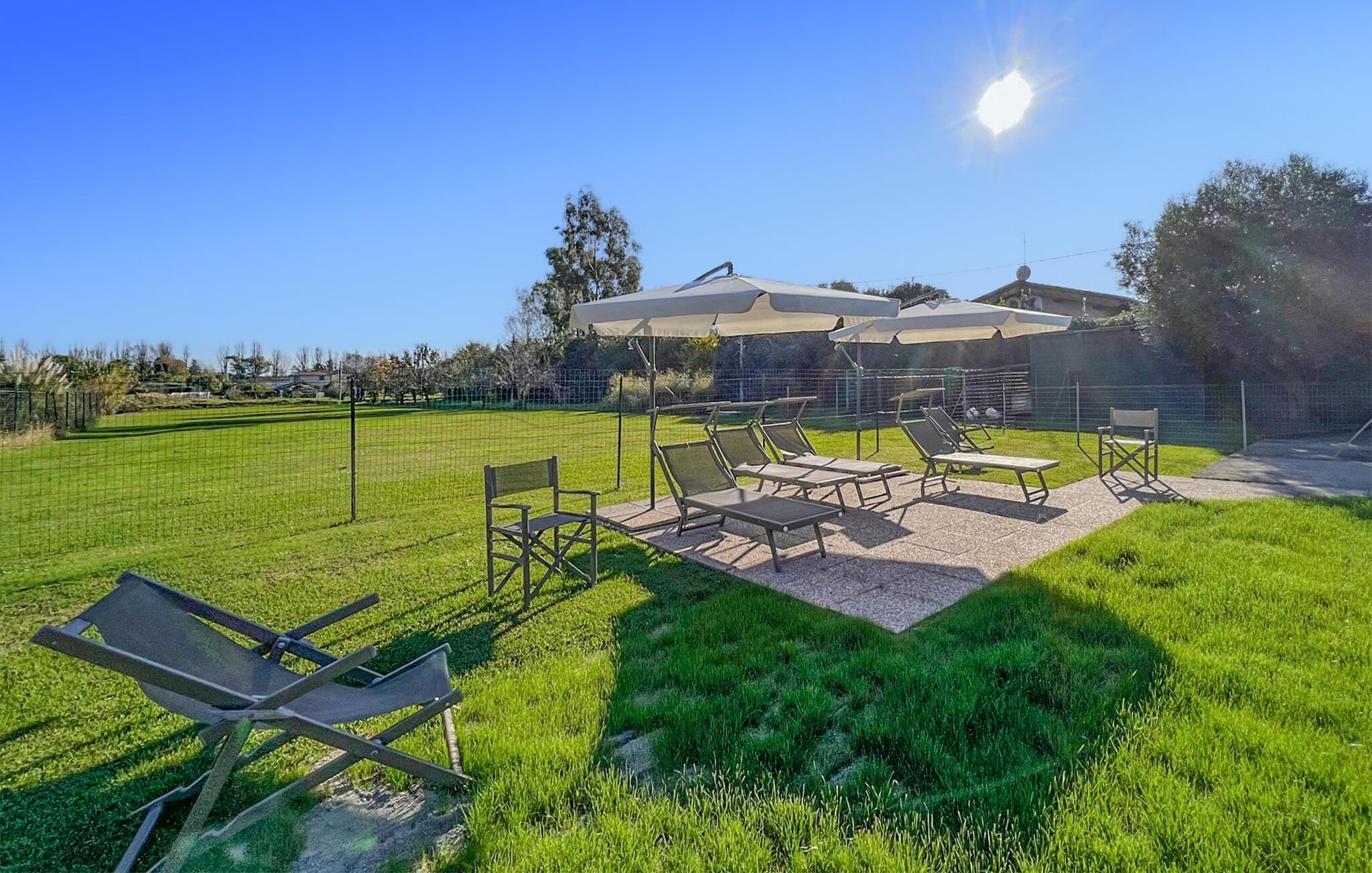 Det private udendørsområde, som befinder sig kun 20 meter fra ejendommen har havemøbler, en grill samt en fodboldbane med mål. Huset er omgivet af træer hvor I velkommen til at plukke modne frugter. Huset er velegnet for dem der elsker at færdes på landet, men der er heller ikke langt til strandene så I kan få en fantastisk badeferie her.