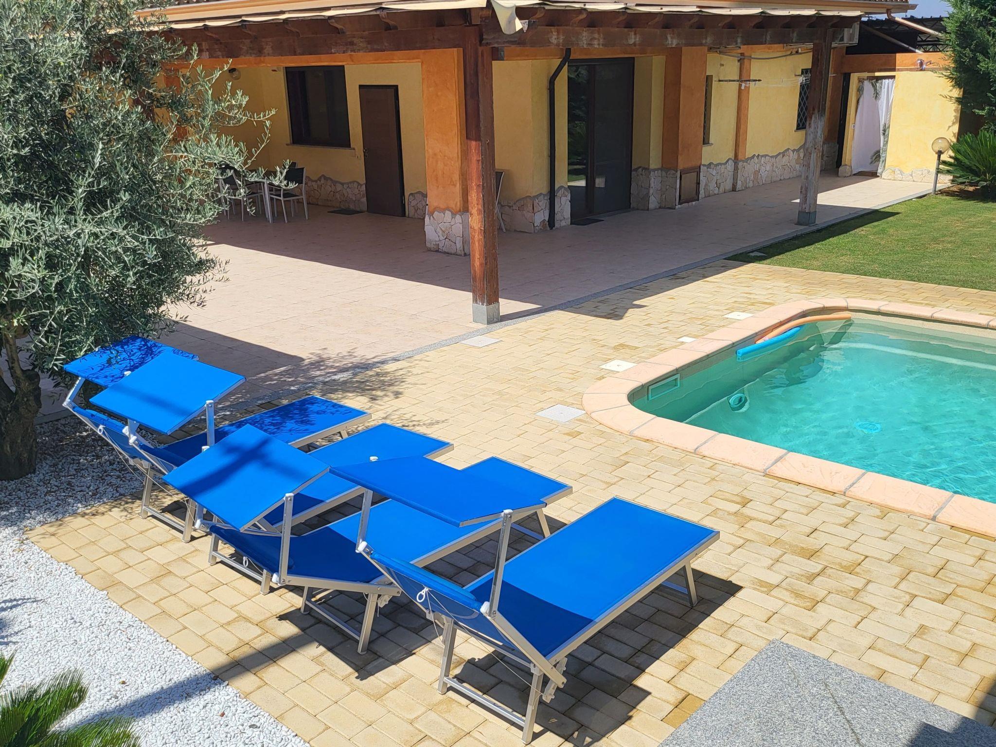 Exclusive villa, ideal for pleasant moments in the company of friends and family, enjoying the comforts and maximum privacy only 5 minutes from the sea. Equipped with 3 bedrooms (2 doubles and one with 2 cots), 2 bathrooms, living room with kitchen, veranda, wooden gazebo, private garden with lawn, sunbathing solarium, swimming pool, Jacuzzi, internal parking. Amenities: - Air conditioning in all rooms - Private Outdoor Space with tables and chairs - Parking - Internet access - Household linen - Washing machine - Ironing board and iron - Hair dryer - Barbecue - Automatic gate - TV - Microwave - Dishwasher - Fridge with Freezer - Toaster - Oven - 5 burner cooker - outdoor sun loungers, outdoor shower and swimming pool. Amenities: Bed linen - Household linen - Towels - Dishwasher - Washing machine - Wifi - TV - Air conditioning - Oven - Outdoor barbecue, etc..