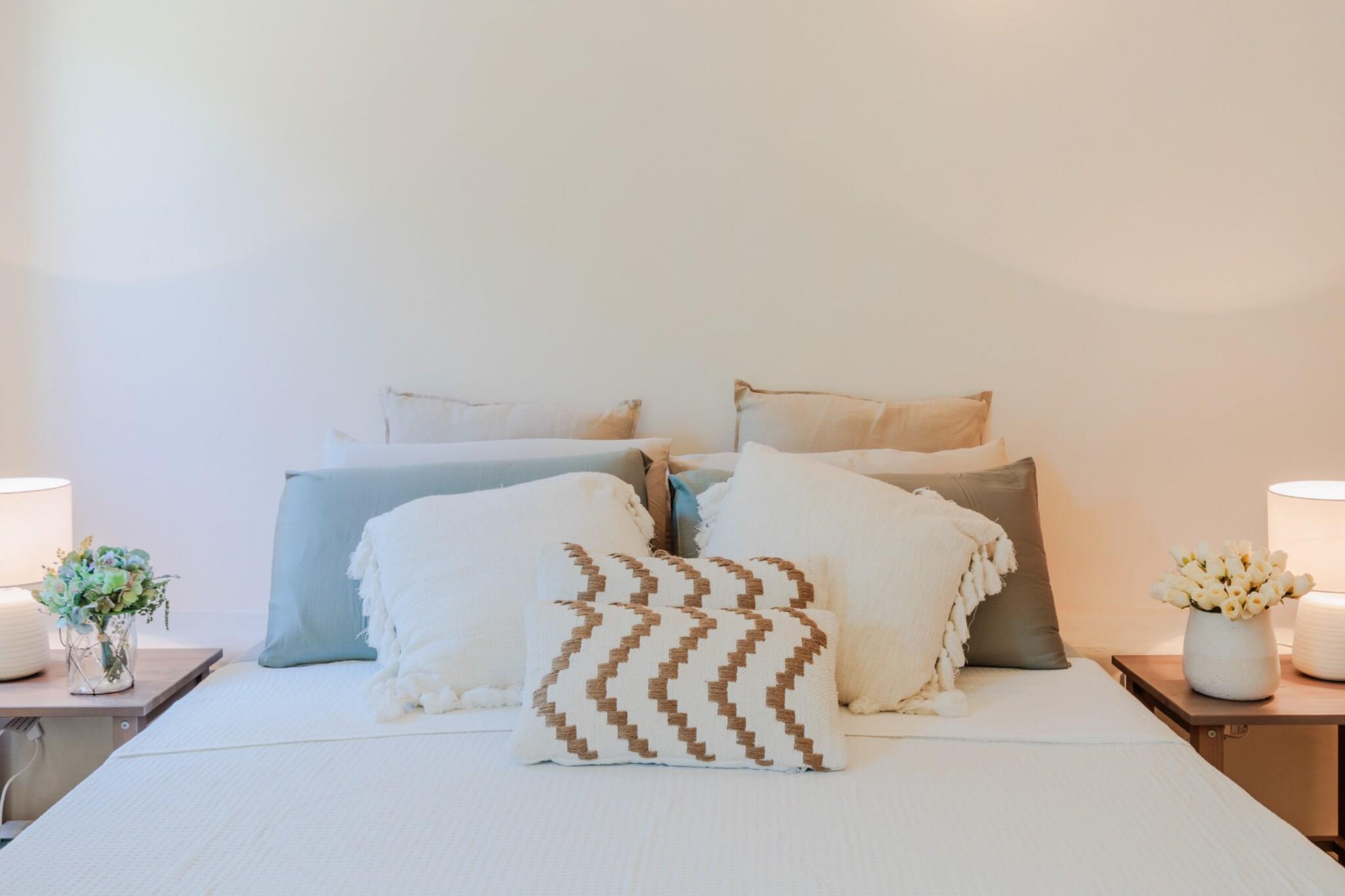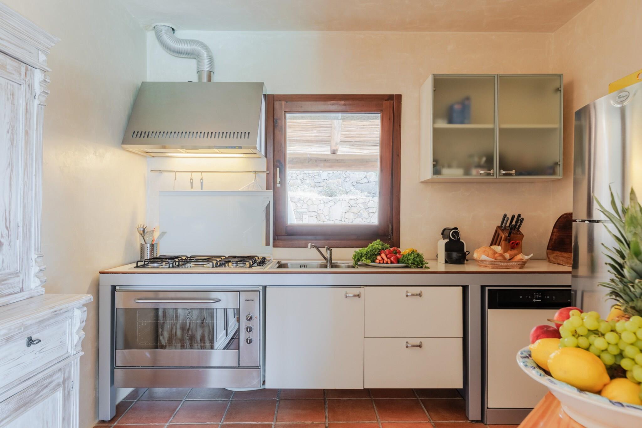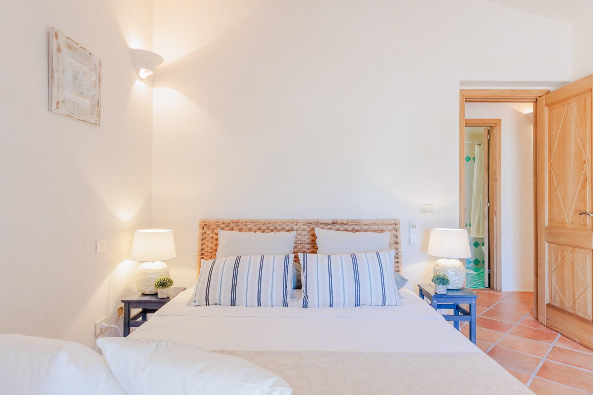 Stueetage: (åbent køkken(kogeplade(gas), elkedel, brødrister, kaffemaskine, ovn, mikrobølgeovn, opvaskemaskine , køle-fryseskab, Saftpresser, ), stue / spisestue(Fjernsyn, spisebord, sofahjørne), Soveværelse med badeværelse(dobbeltseng, bruser), Soveværelse med badeværelse(dobbeltseng, bruser)) På 1. etage: (soveværelse(dobbeltseng), Soveværelse med badeværelse(dobbeltseng, bruser), badeværelse(bruser, føntørrer)) Havemøbler, kakkelovn(gas), tørretumbler, håndvask, vaskemaskine, balkon, klimaanlæg, terrasse, have, parkering, swimmingpool(privat), strygejern