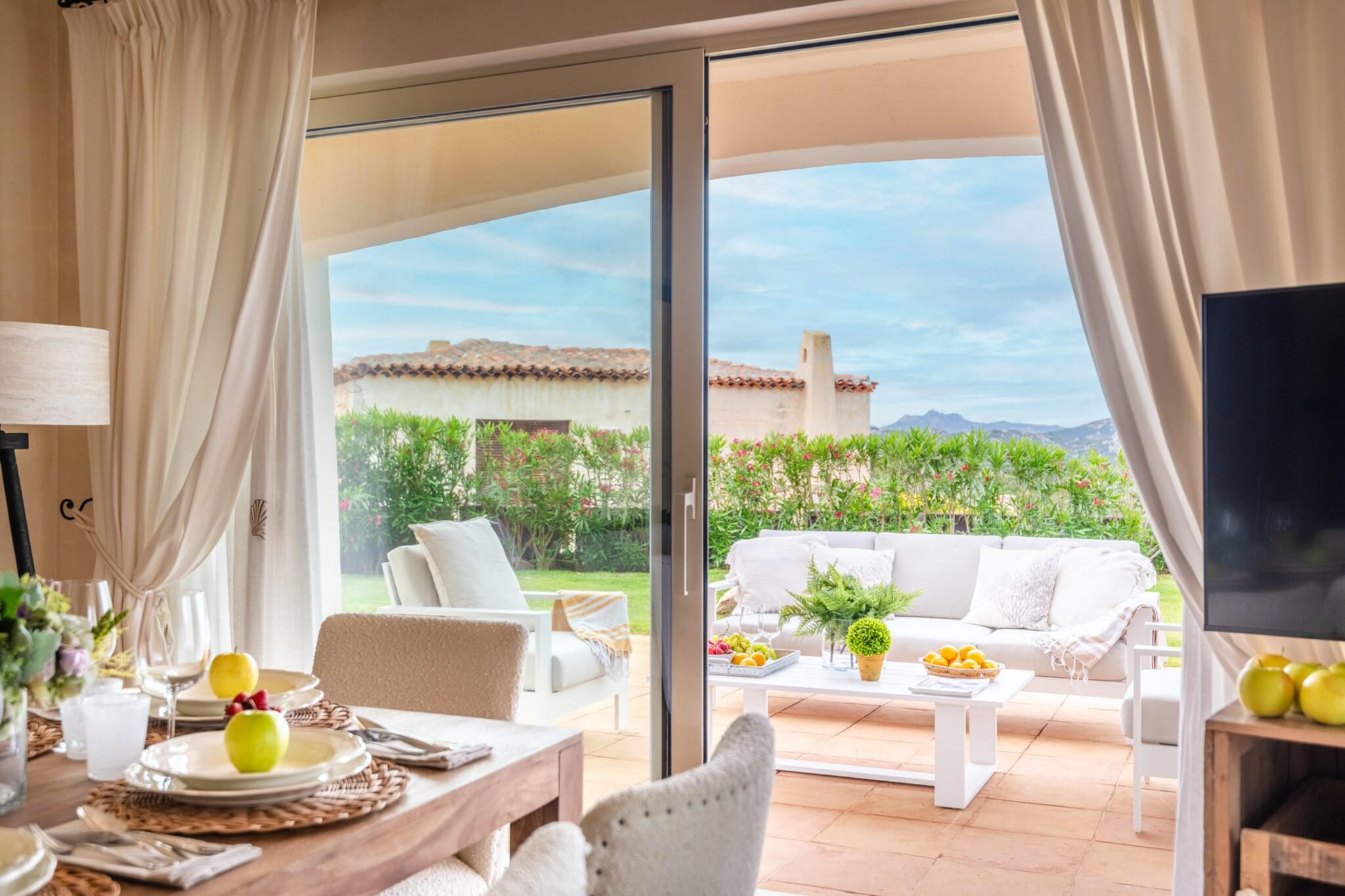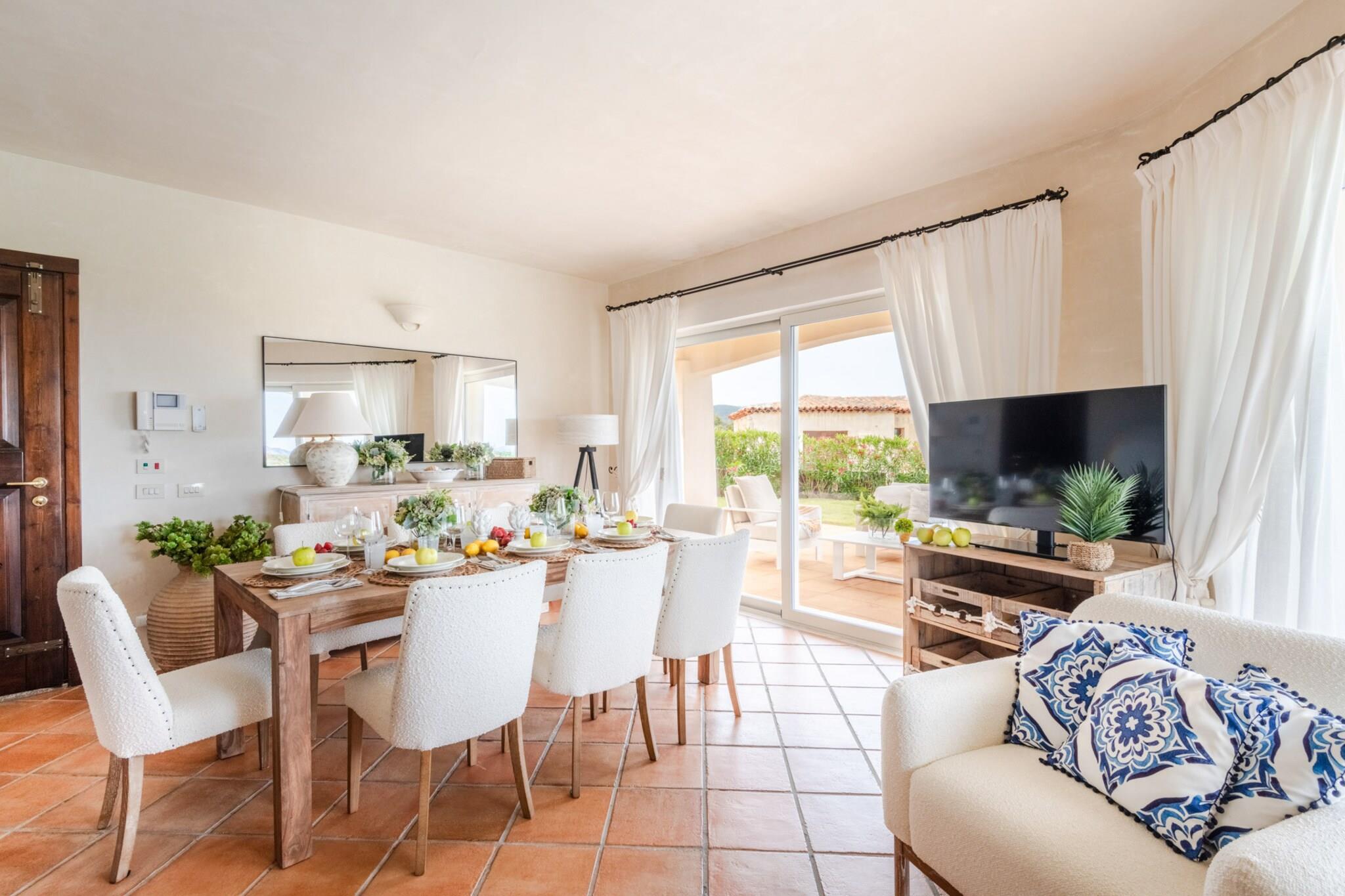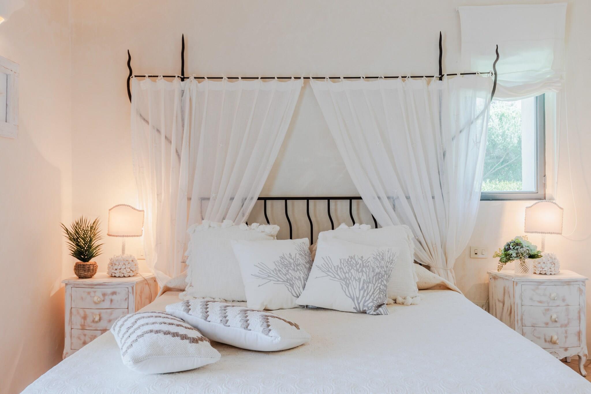 Stueetage: (åbent køkken(kogeplade(gas), elkedel, brødrister, kaffemaskine, ovn, mikrobølgeovn, opvaskemaskine , køle-fryseskab, Saftpresser, ), stue / spisestue(Fjernsyn, spisebord, sofahjørne), Soveværelse med badeværelse(dobbeltseng, bruser), Soveværelse med badeværelse(dobbeltseng, bruser)) På 1. etage: (soveværelse(dobbeltseng), Soveværelse med badeværelse(dobbeltseng, bruser), badeværelse(bruser, føntørrer)) Havemøbler, kakkelovn(gas), tørretumbler, håndvask, vaskemaskine, balkon, klimaanlæg, terrasse, have, parkering, swimmingpool(privat), strygejern
