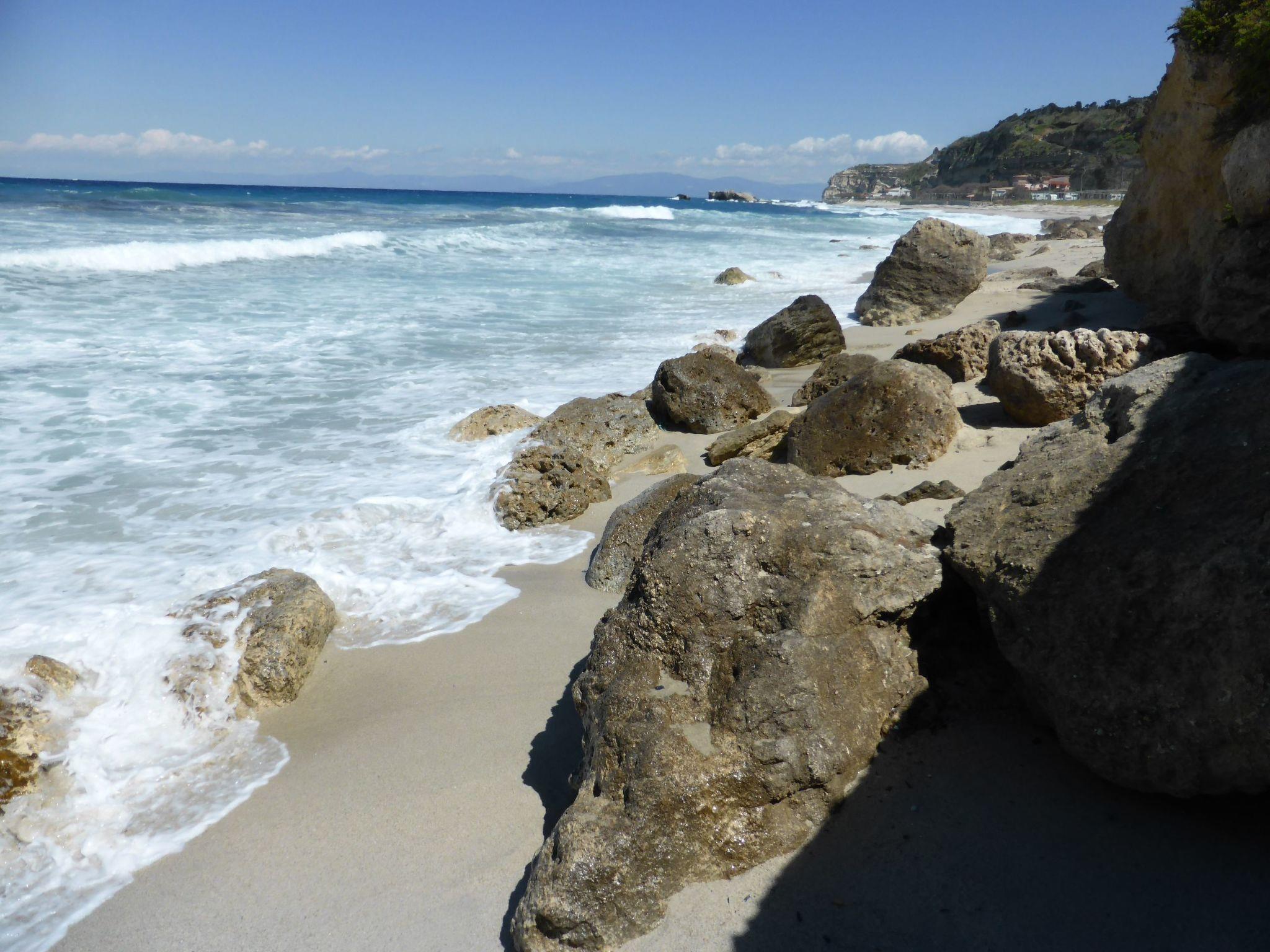 The house stands detached on the outskirts of the village Santa Domenica with its typical Calabrian atmosphere, at the end of a cul-de-sac, with direct access on foot to the sea. The well-known tourist resort Tropea, the gem of the Tyrrhenian Sea, is only 3.5km away. Just to the north and south are Riaci and Formicoli with great public beaches, directly accessible by car. The very southern location invites you to spend long winters here. Make yourselves comfortable in our house from December to April and enjoy the countless additional sunny days (please enquire about special prices for long-term rentals).