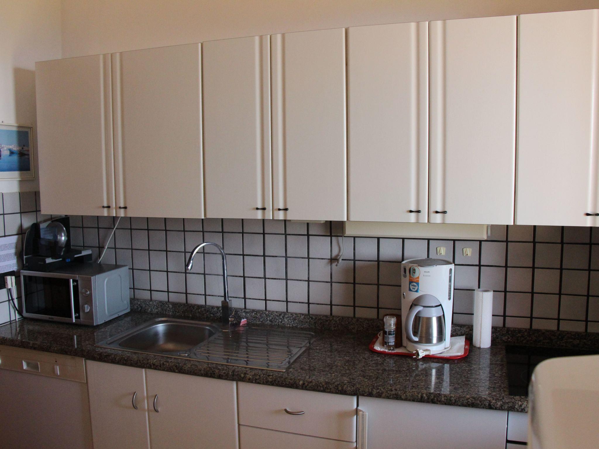 The spacious, light-flooded house (approx. 90 sqm) is surrounded on 3 sides by a panoramic veranda (105 sqm veranda!) and offers a living-dining room with double sofa bed, 2 comfortable leather armchairs, large flat screen TV, stereo system with DVD player (5.1 system from Harman Kardon), off. Fireplace, air conditioning and hot air unit, kitchenette (granite worktop, freezer, dishwasher, microwave, new electric cooker), 2 bedrooms (both with air conditioning) and 2 bathrooms (one with shower cubicle, one with washing machine). The house is habitable all year round, modern and well equipped; private driveway and driveway with parking space, a (satellite) TV with German programmes, further extra: Internet access via WLAN, brick barbecue, smoking is only permitted outdoors.