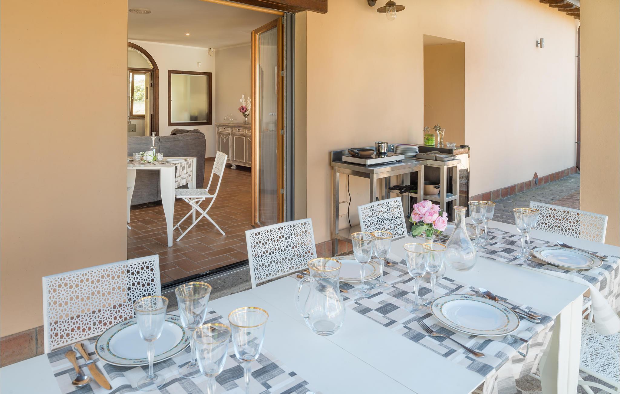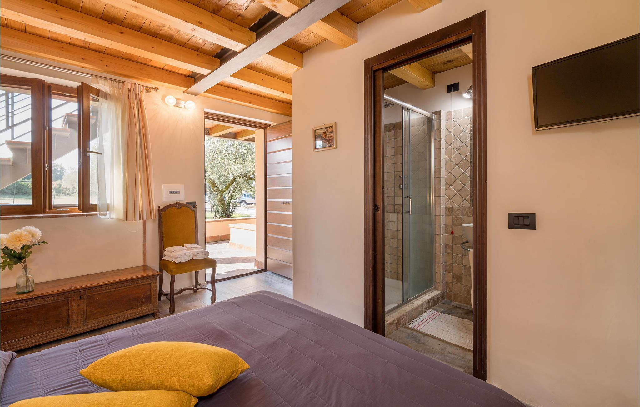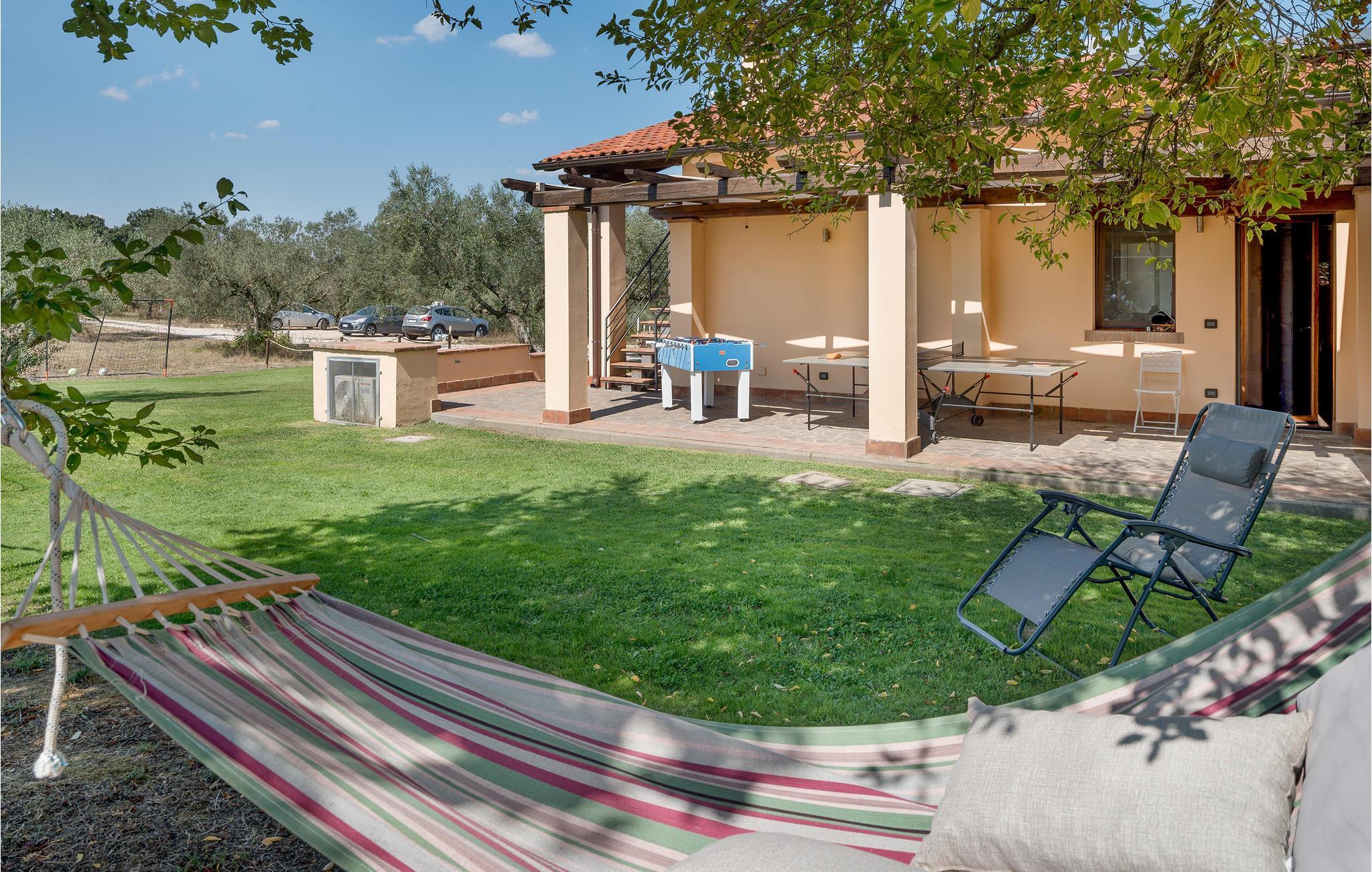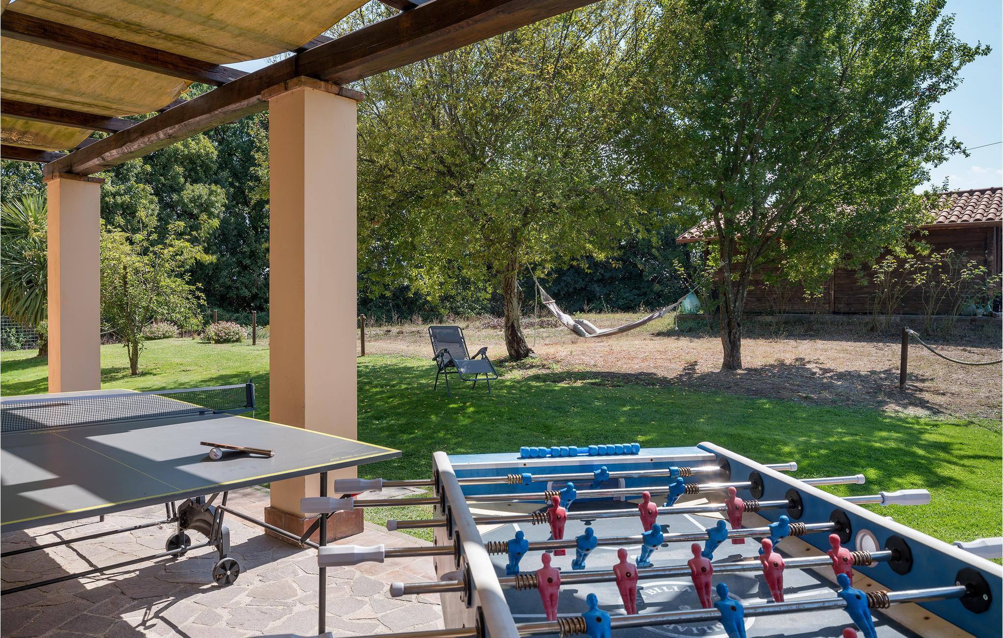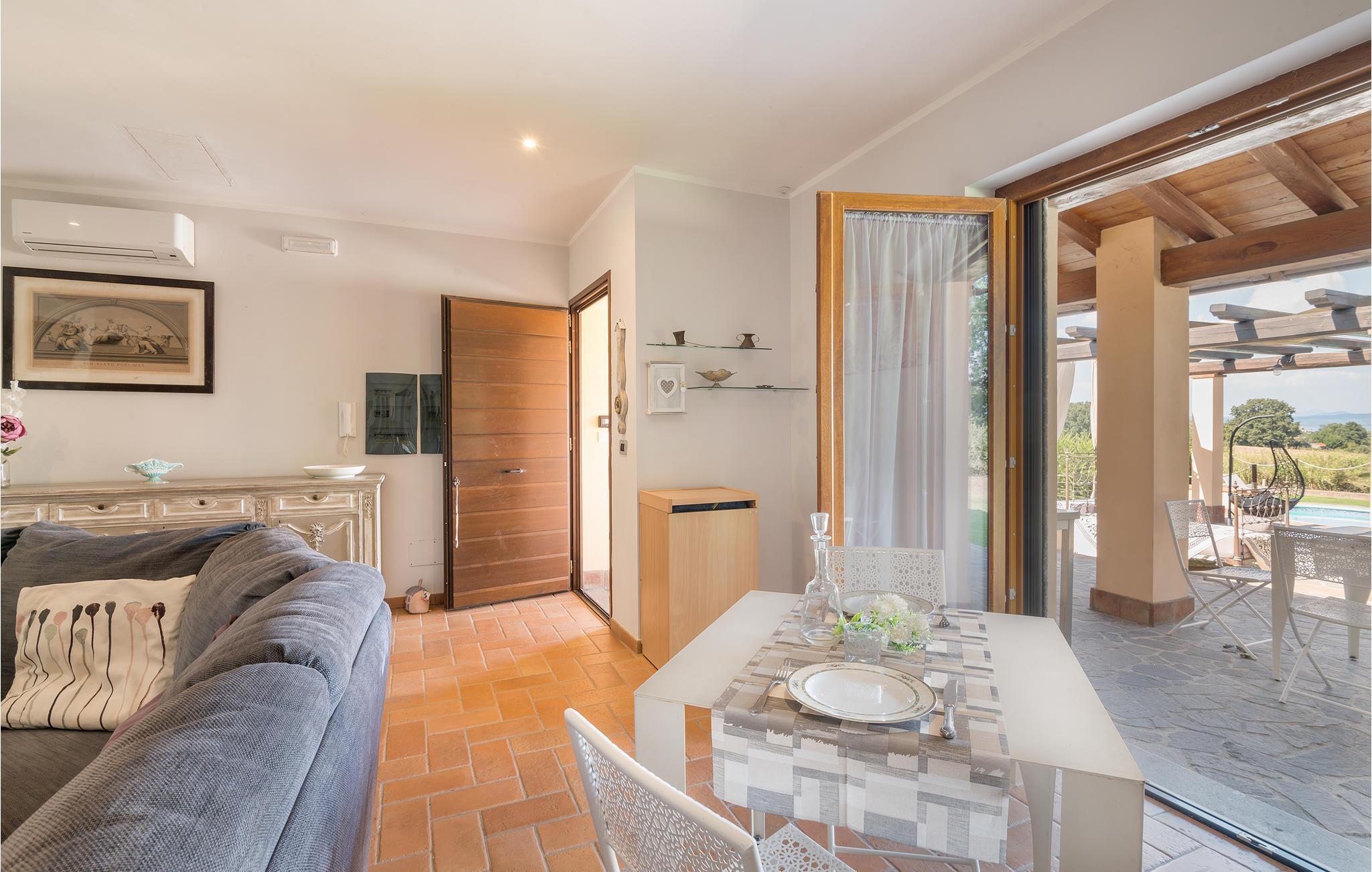 Skønt feriehus med privat pool og panoramaudsigt over Bolsenasøen. Stor veranda der er komfortabelt indrettet med bord og stole, ideel til afslapning og spisning i det fri. I den store have er der pavillon, gyngestol, rutsjebane og gynge til de små gæster, bordtennis og –fodbold og fodboldmål til de større. Her er en muret grill og flere parkeringspladser på grunden. I alle soveværelser er der klimaanlæg, indgang udefra og alle er behageligt og praktisk indrettet. I må gerne tage hunden med. Husets ligger perfekt når I vil se alle egnens seværdigheder: Capodimonte med lang og godt udstyret strand, den karakteristiske lille havn, resturanter og badeanstalter ved Bolsenasøen kun 1,5 km væk og hurtig at komme til. Kurbadene i di Vulci 33 km, og Canino (21 km) hvor der fremstilles jomfruolivenolie D.O.P: 44 km. I stueplan er der en stor spise- og opholdsstue med dør ud til haven, køkken med professionel indretning og dør ud til haven, wc, to soveværelser med etagesenge og badeværelse (brusebad), to soveværelser med dobbeltsenge og badeværelse (brusebad). På første sal, med adgang af udendørs trappe: lille stue med tekøkken, soveværelse med enkeltseng og tilhørende badeværelse (brusebad) lille veranda.