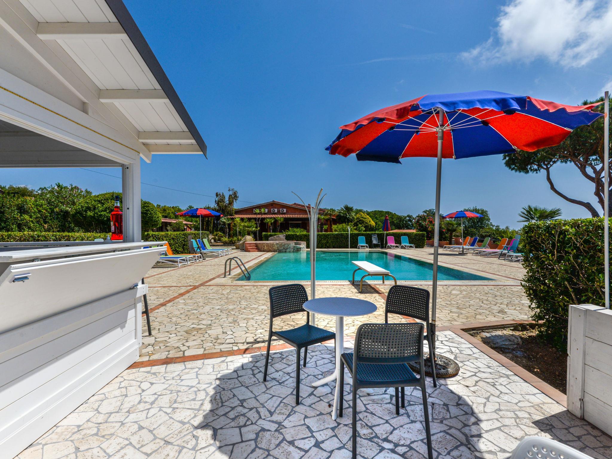 Naregno 3 km from Capoliveri: Small residence "Il Melograno", surrounded by trees. 4 houses in the residence. 13 apartments in the residence. Above Naregno 3 km from the centre of Capoliveri, 5 km from the centre of Porto Azzurro, 17 km from the centre of Portoferraio, 800 m from the sea. For shared use: property 15'000 m2 (fenced) with plants and trees, natural garden, swimming pool (14 x 7 m, depth 110 - 250 cm, seasonal availability: 01.Apr. - 30.Oct.). Outdoor shower, hot tub, terrace, barbecue. In the house: reception, WiFi, washing machine (for shared use, extra), bicycle rental. Parking on the premises. Grocery 3 km, bus stop 230 m, ferry "Portoferraio" 17 km, sandy beach "Naregno" 800 m. Please note: residence with electric gates. The owner lives on the same property.