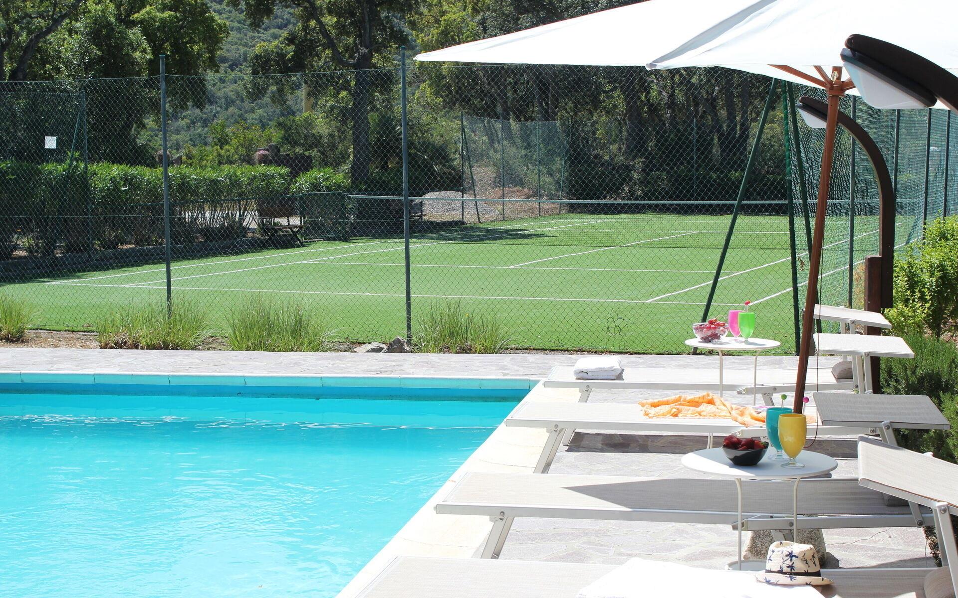 Das Schwimmbad (11 x 6 m, Mindesttiefe 1,20 m, Maximaltiefe 1,70 m, geöffnet vom ersten Freitag im Mai bis zum letzten Freitag im Oktober) steht Ihnen exklusiv zur Verfügung und ist mit Gartenmöbeln und einem Tennisplatz mit Kunstrasen ausgestattet. Tennisschläger zur Verfügung.