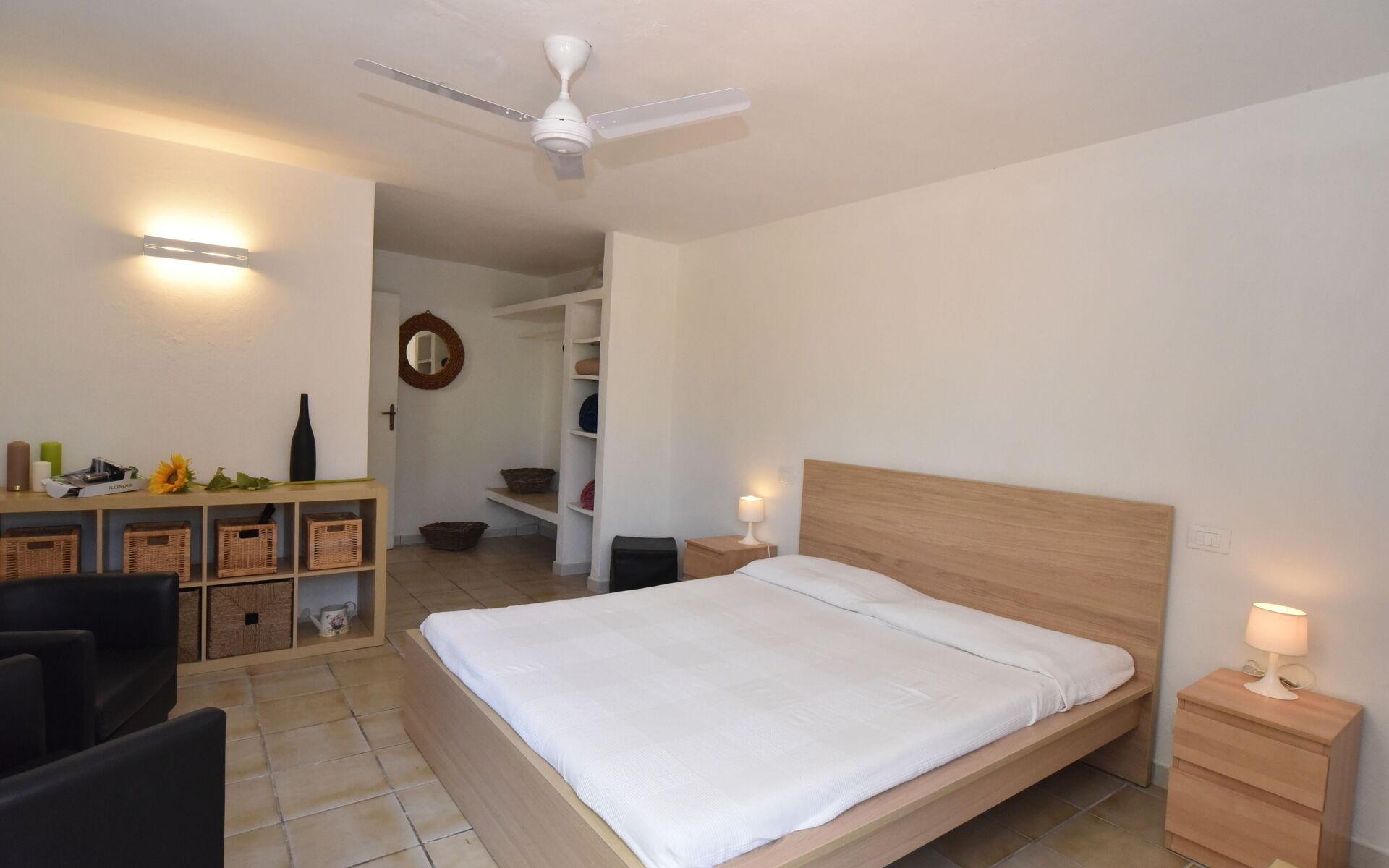 - Heller, offener Raum mit Klimaanlage und Fenstertüren, die sich zum Garten hin öffnen. Ausgestattet mit einem Doppelbett, einem kleinen Einzelzimmer mit Bad