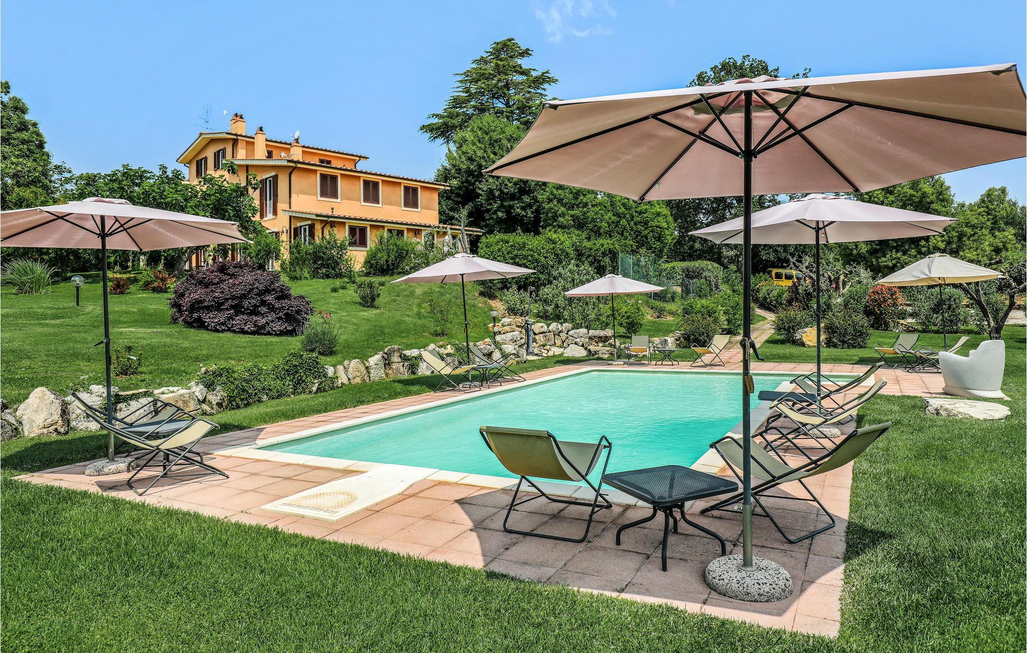 Landhus, der nu er delt op i indbydende ferielejligheder, der ligger i hjertet af regionen Tuscia, mellem hasselnøddebuske, kastanje- og frugttræer og 2,5 km fra centrum af Capranica. I har fælles adgang til pool, have, grill og udendørs brusebad. Til hver lejlighed hører egen privat lille have. Værd at køre efter er: Viterbo (25 km), die San Sisto di Vetralla termer (7,5 km), kurbadet Terme dei Papi (25 km), Braccianosøen (19 km) og etruskerbyen Tuscania (34 km). Tag toget fra banegården i Capranica til Rom og undgå parkeringsproblemer. Se også IRU178, IRU179, IRU180, IRU181 og IRU182 samt IRU206.