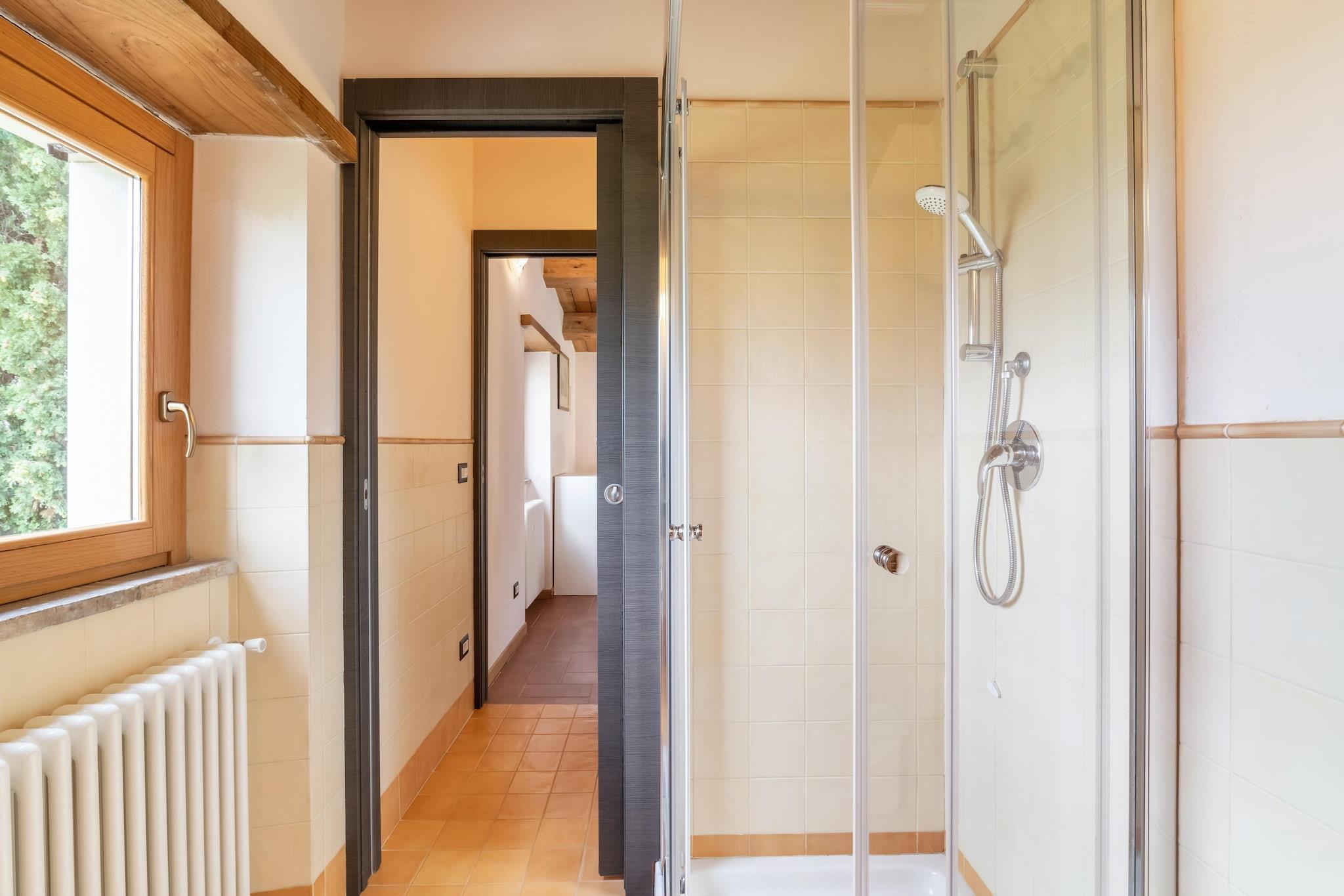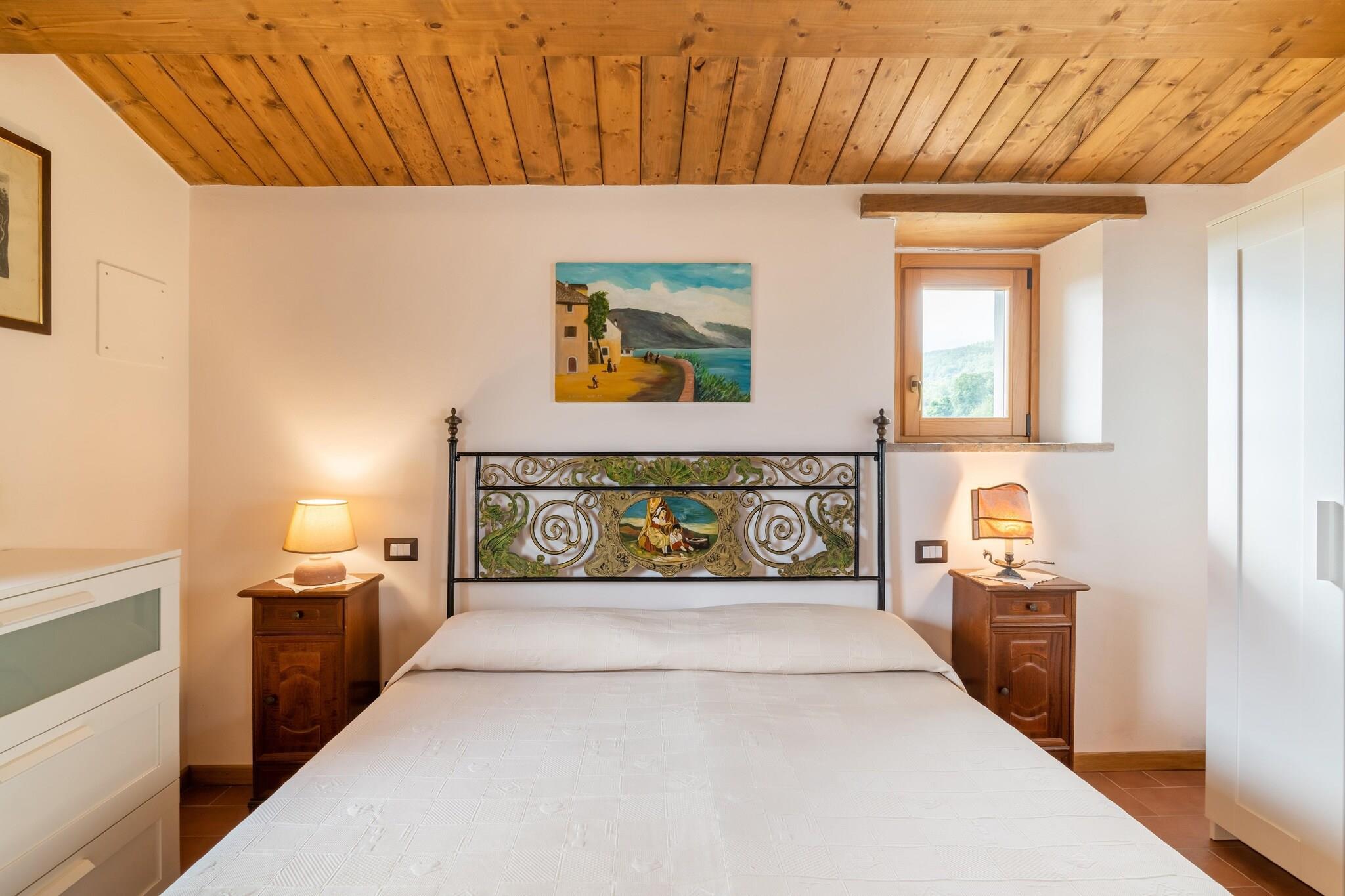 Vi er i Michelangelos fødested. Denne ejendom er beliggende på øverste etage i en renoveret lade og har en selvstændig indgang. Taget er understøttet af store træbjælker og foran indgangen er der en gårdhave, hvorfra man kan nyde en storslået udsigt. De arkitektoniske træk, såsom gavlloftet udelukkende i træ, og en del af de antikke møbler, binder det til traditionen med hensyn til atmosfæren, men komforten er alt sammen moderne Ejendommen ligger lige midt på Appenninerne med udsigt over de omkringliggende bakker og Montedoglio-søen. Den ældste del af stuehuset er et gammelt middelaldertårn, der går tilbage til 1400. Gennem århundreder er tårnet blevet udvidet med annekser. Virksomheden udviklede sig gradvist