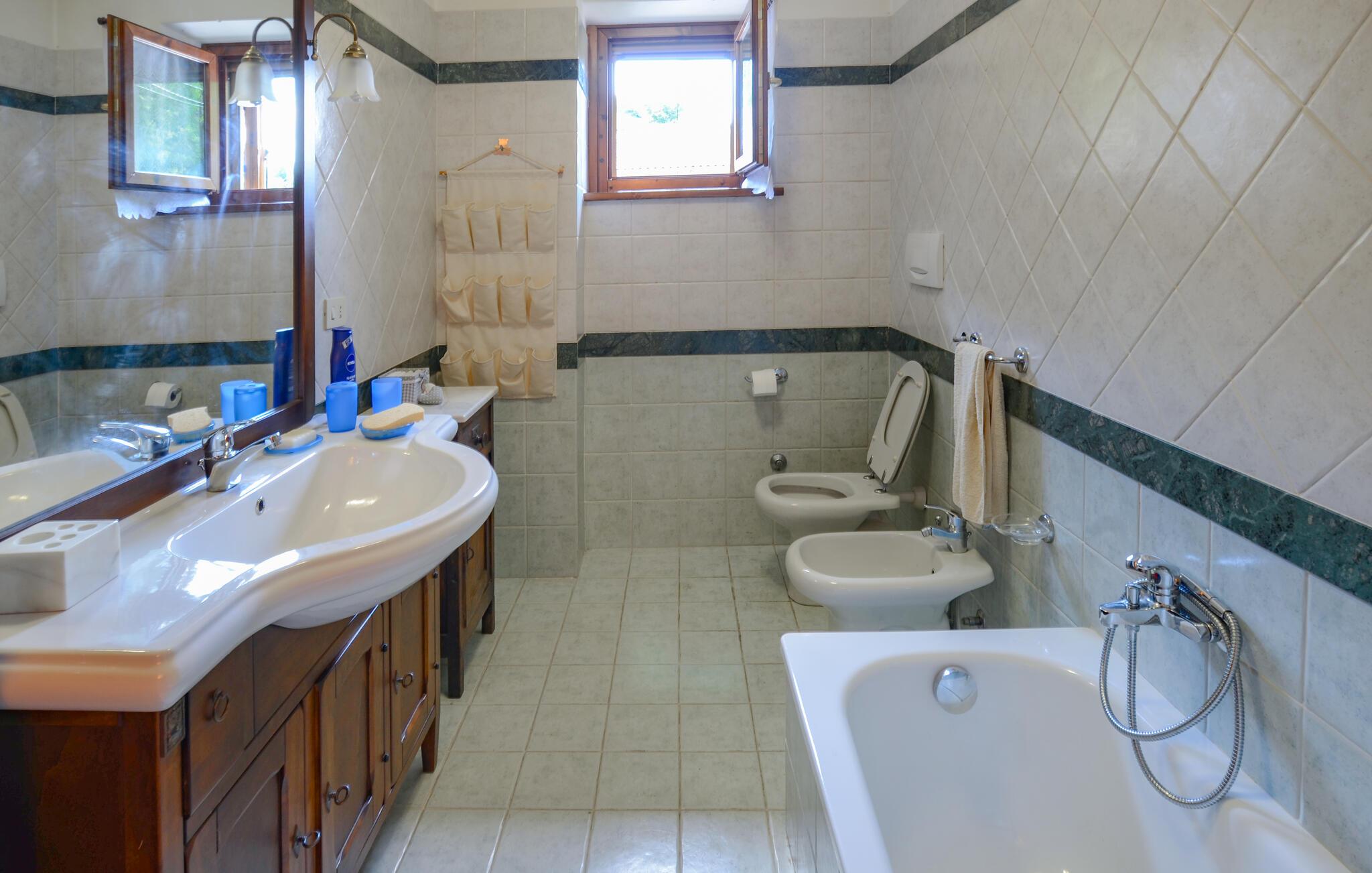 Dette rummelige feriehus byder jer velkommen midt i det maleriske bjerglandskab og tilbyder jer et smukt midlertidigt hjem, mens I genoplader batterierne på en aktiv ferie. Nyd harmoniske måltider i den hyggelige spisestue, planlæg jeres aktiviteter sammen, og efter en eventyrlig dag i naturen kan I slå jer ned i den rummelige sofa med en bog eller et brætspil.