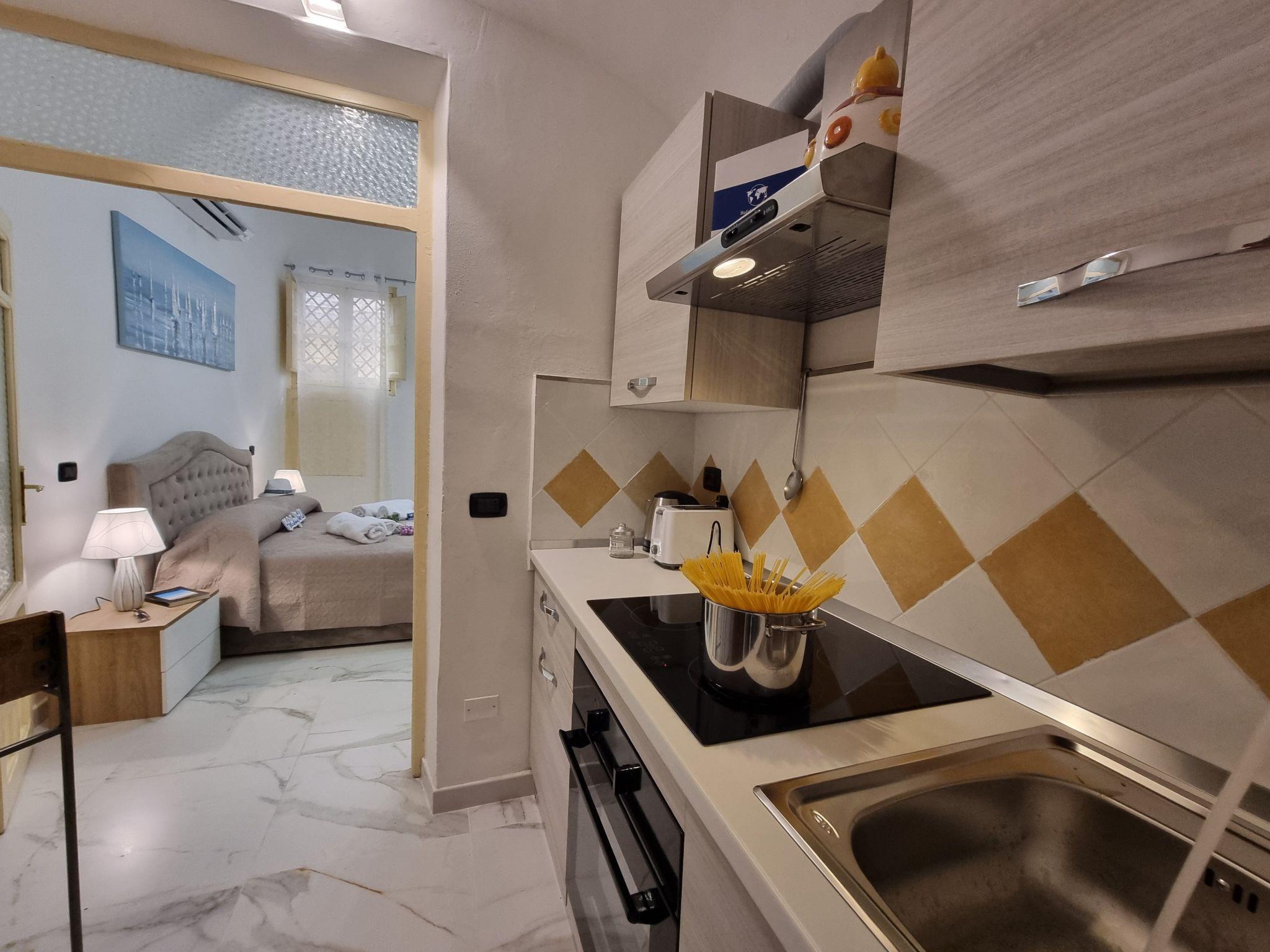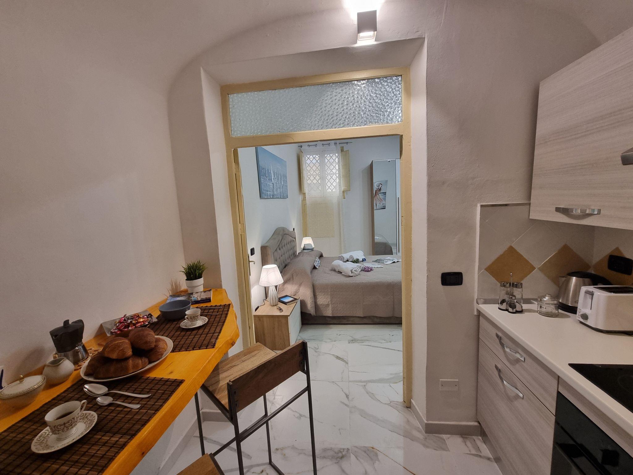 The flat consists of an equipped kitchenette with dining area, while the sleeping area consists of a double bedroom. The bathroom is complete with shower and bidet.