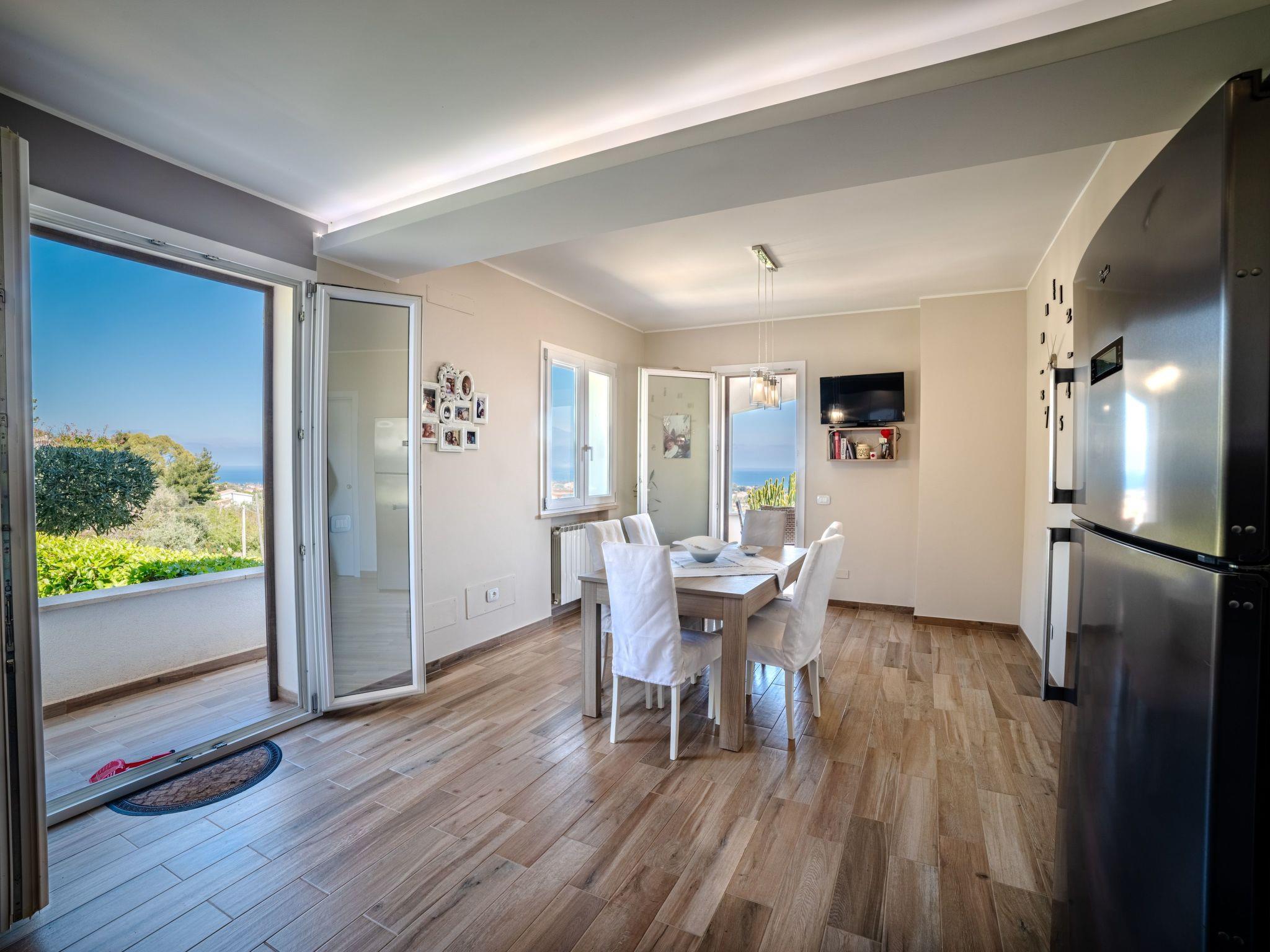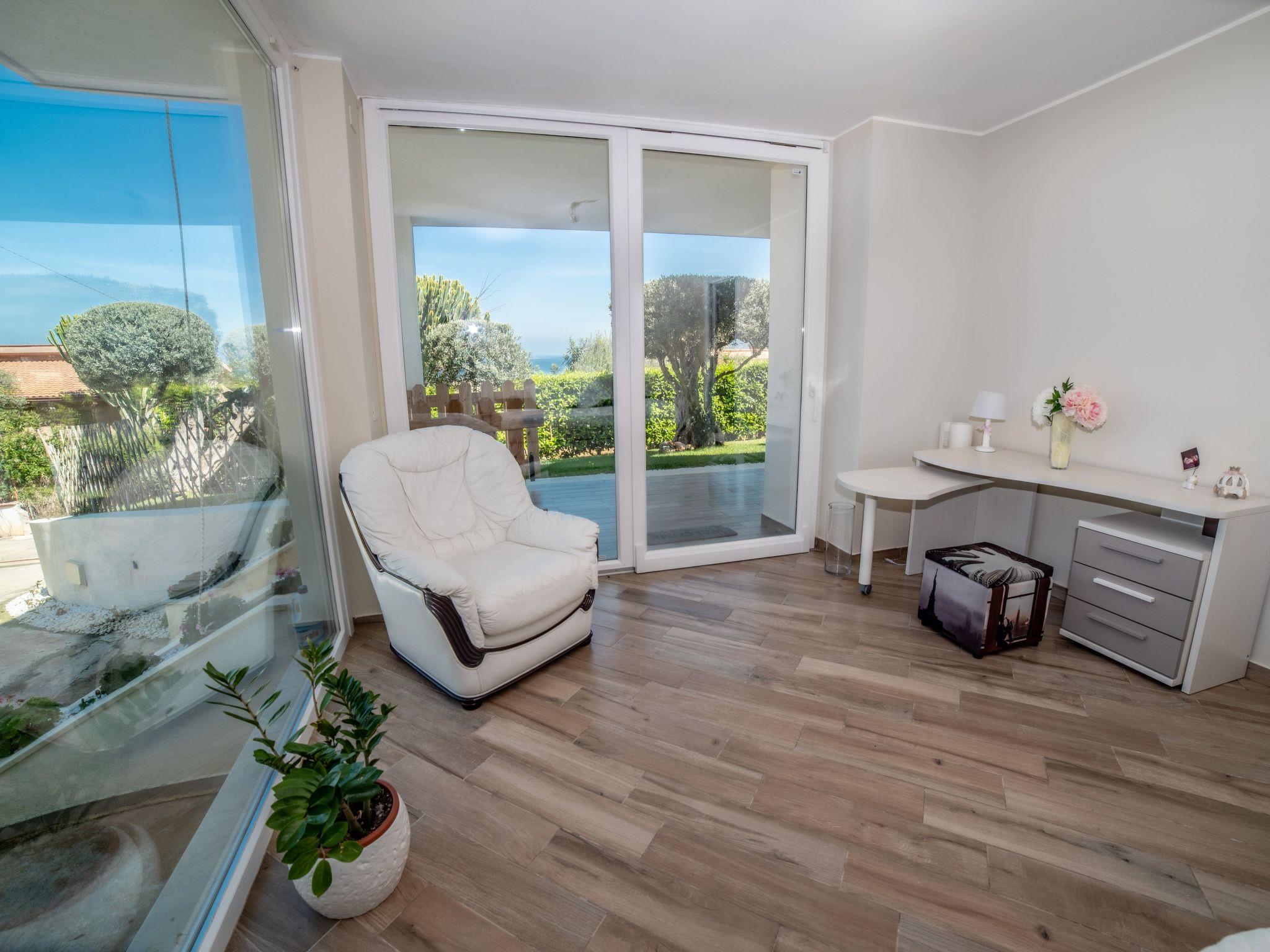 The villa, open on all four sides, spread over two levels and is surrounded by a beautiful and lush garden, with lawn and ornamental and fruit trees.The pool area is nothing short of amazing, with the possibility of swimming while admiring the fantastic panorama of the sea as far as the eye can see.The same view can be admired from virtually every point of the house, including the terrace under a cool porch, equipped with dining table and barbecue.