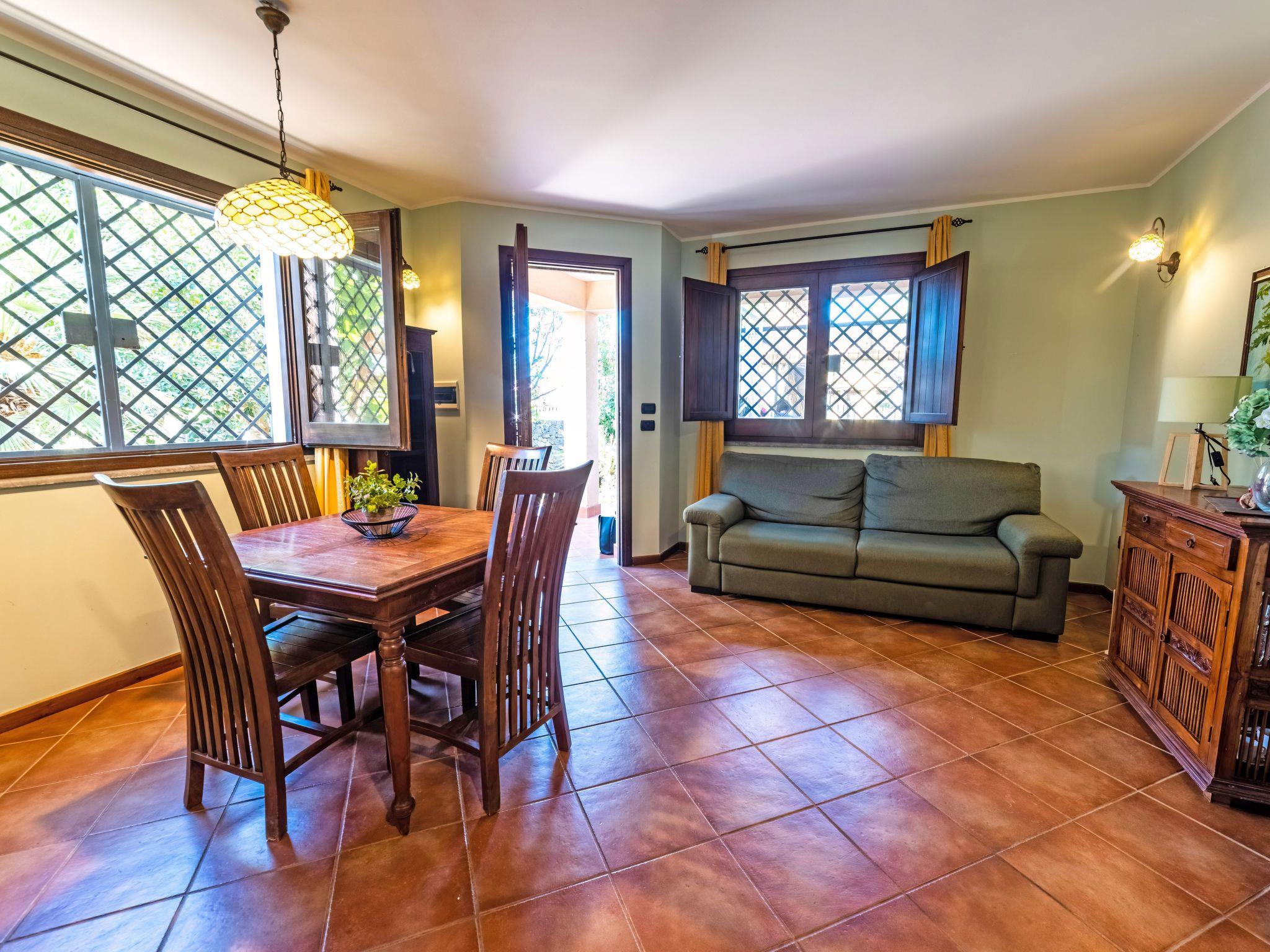 Adjacent to the living area is a charming gazebo with sofa and coffee tables.