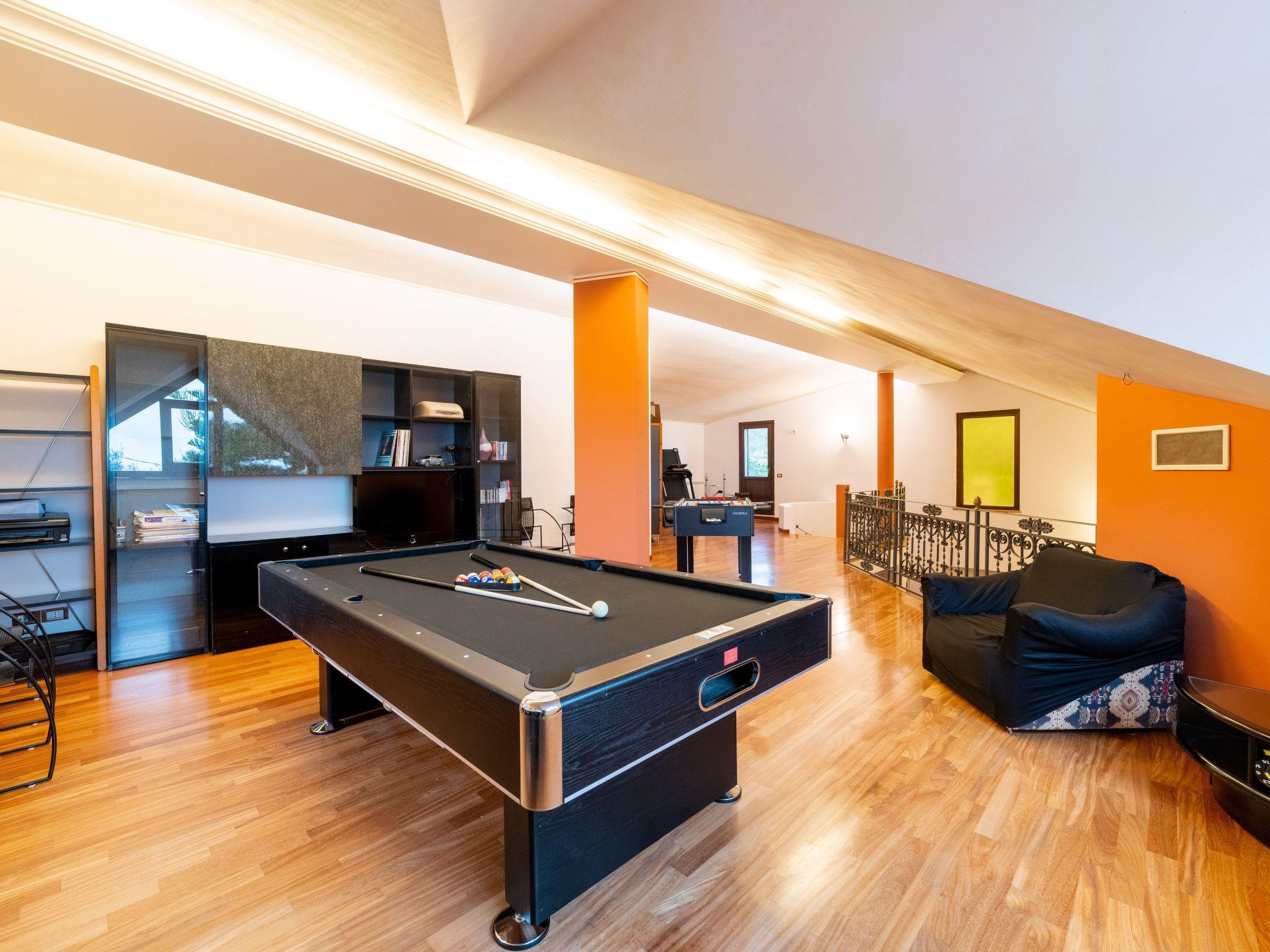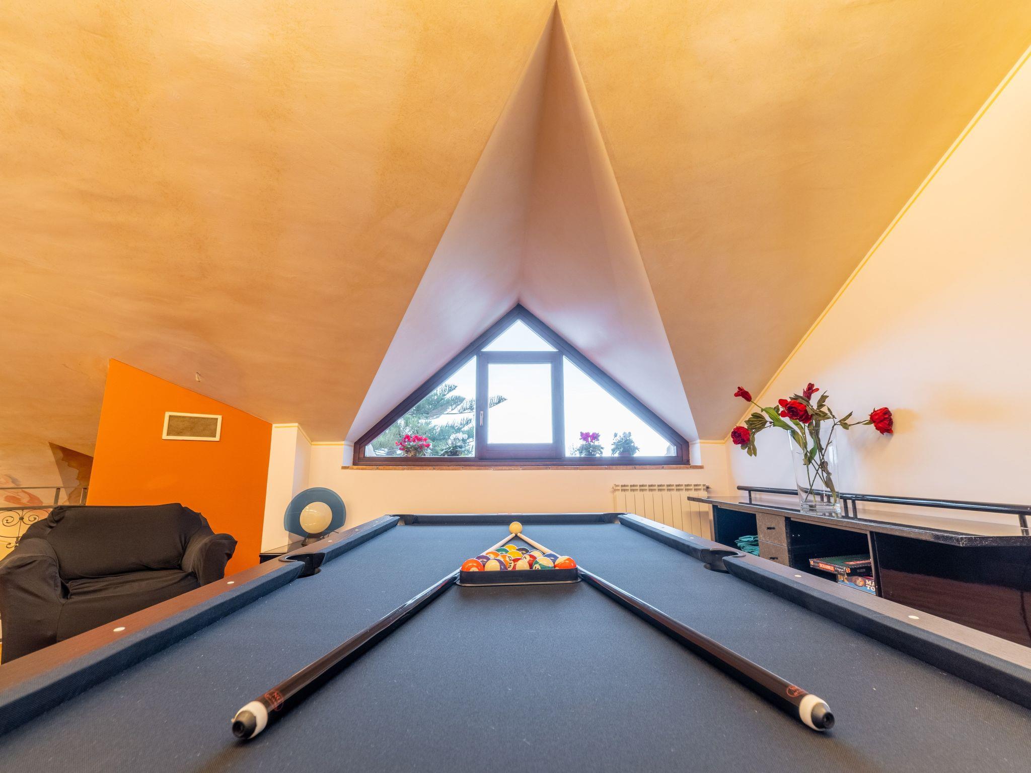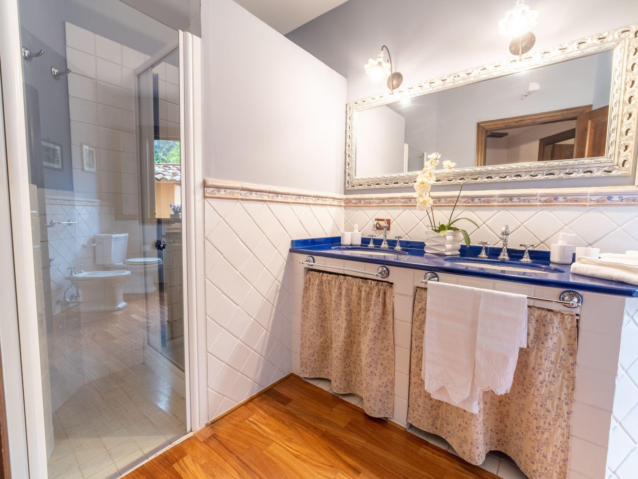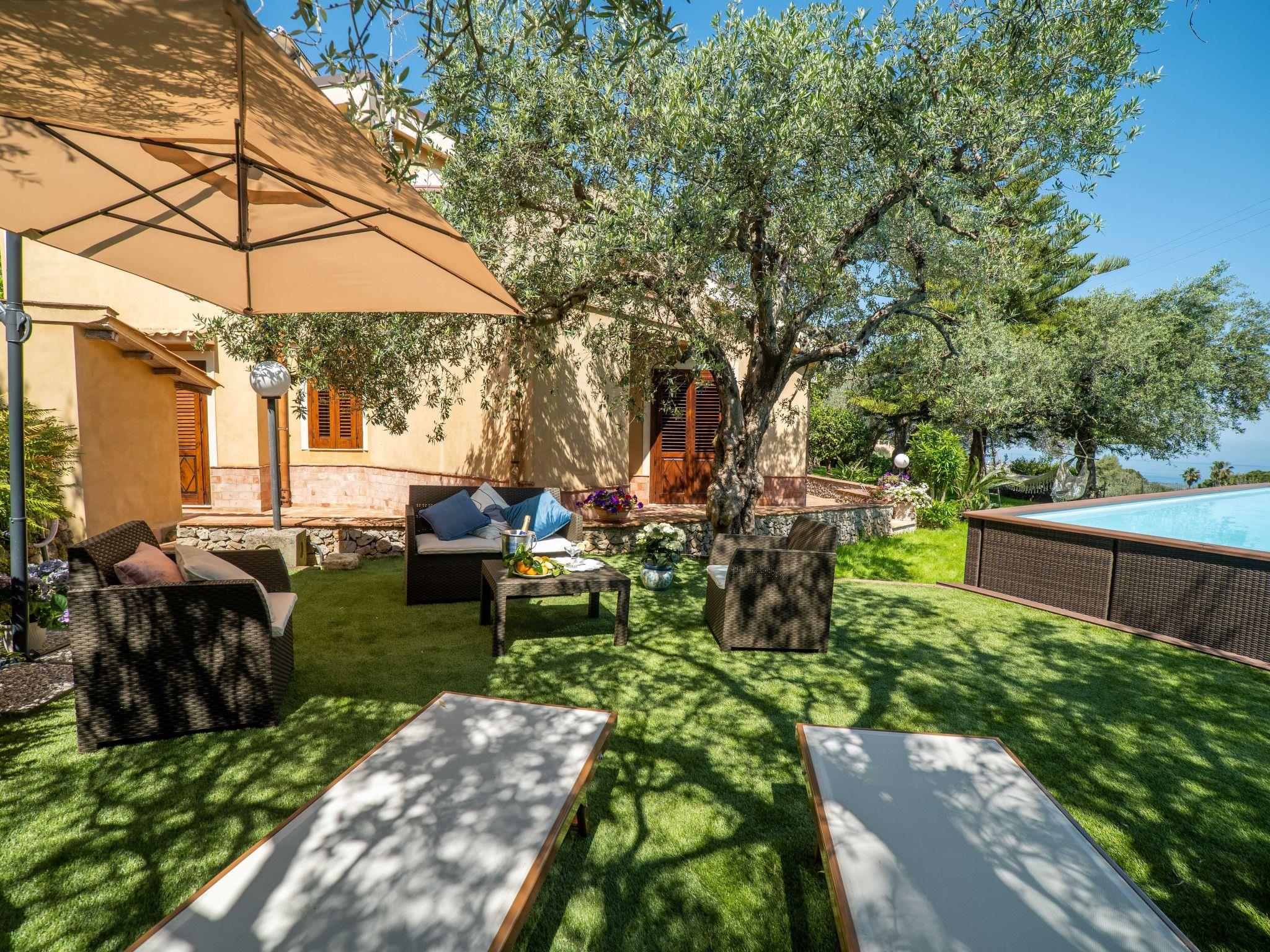 Mamma Maria is immersed in a typical Mediterranean orange grove and is spread over two levels. All the rooms are bright and spacious and carefully finished. On the ground floor there is a fully equipped kitchen with a dining room that overlooks the garden; the magnificent round living room, elegant, comfortable and with a wall of windows overlooking the pool area and with a splendid view of the sea; the master bedroom with en-suite bathroom; a double bedroom and a twin bedroom; two further bathrooms. A fashionable staircase leads to the first floor where there is a beautiful interior terrace overlooking the living room, with billiard table, treadmill, table football and home gym; a double bedroom and a bathroom. All bedrooms are equipped with air conditioning and television. Electricity is included up to 200 kWh per week. Any surplus will be charged.