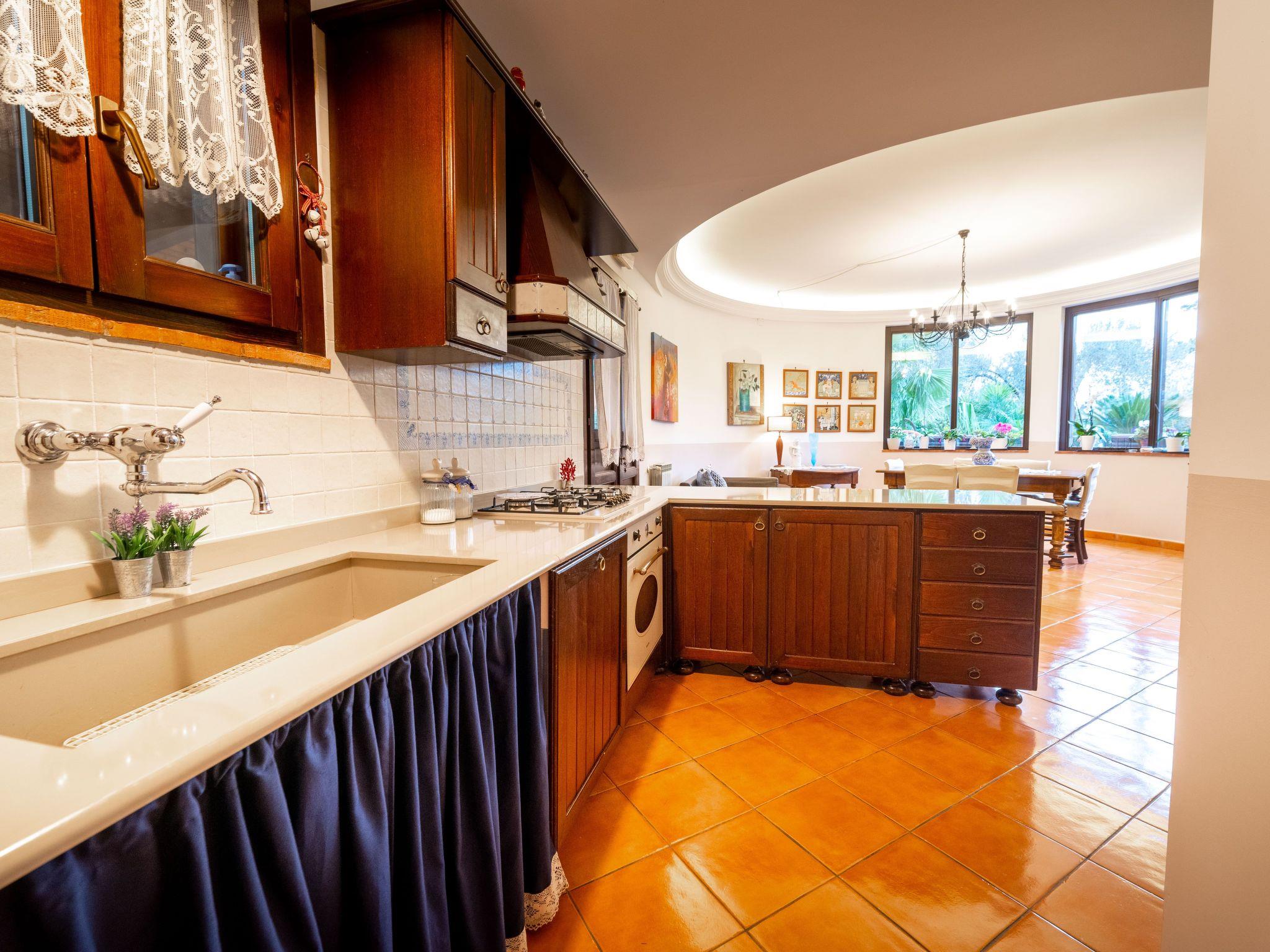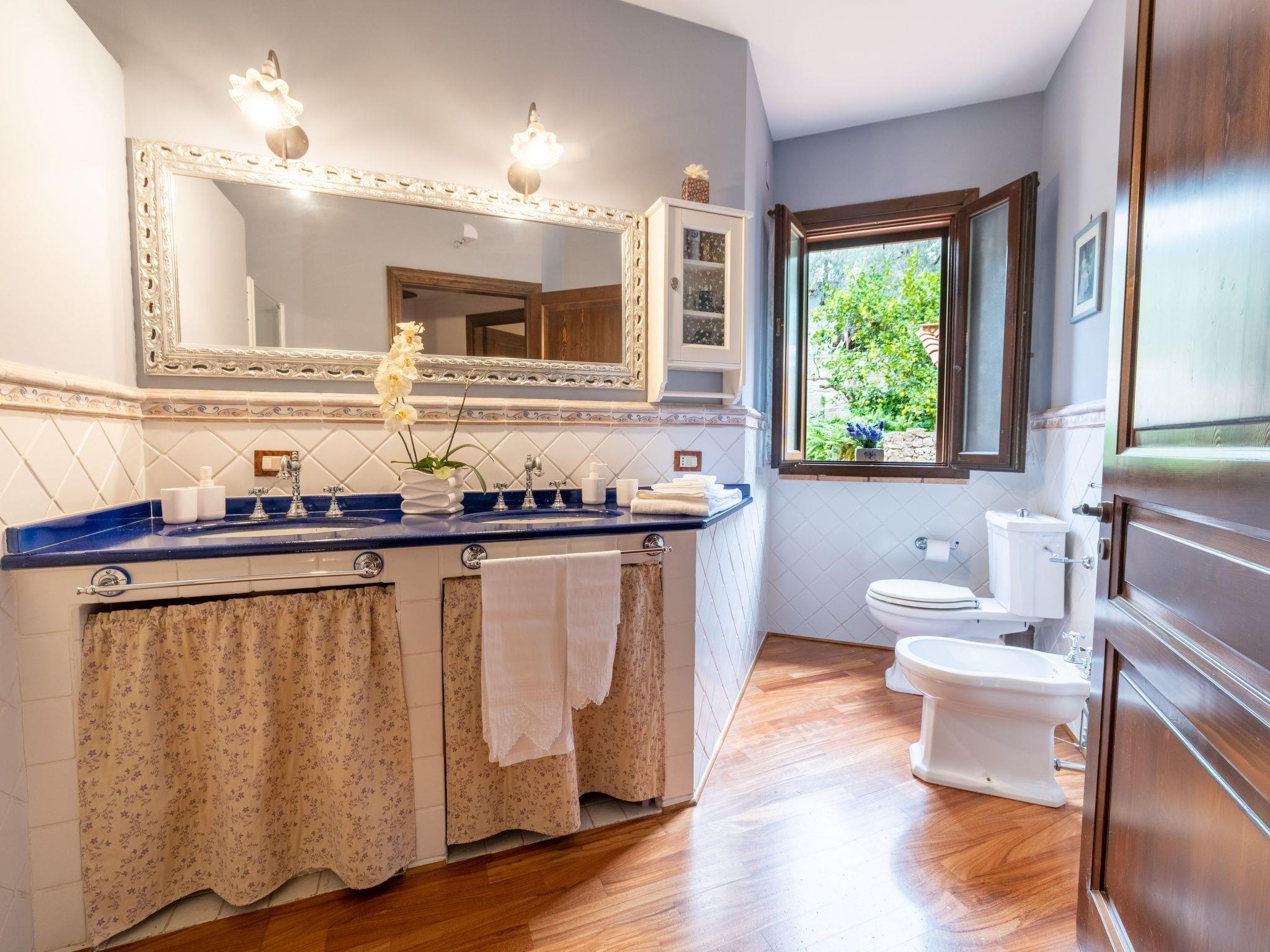 The exterior of the house is full of romantic corners, an outdoor kitchen with barbecue and a relaxing pool area with a super view of the Tyrrhenian Sea, the latter being 10 km away.
