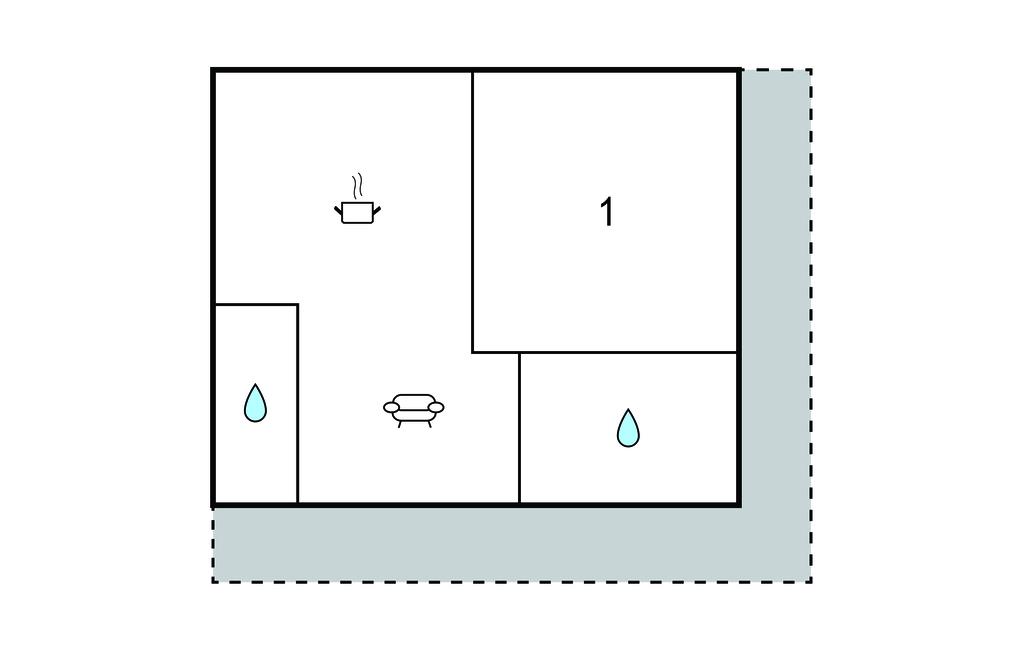 Opholdsstue/køkken 20m2 - 2 Sovepladser. (Sofa, madras eller lignende).